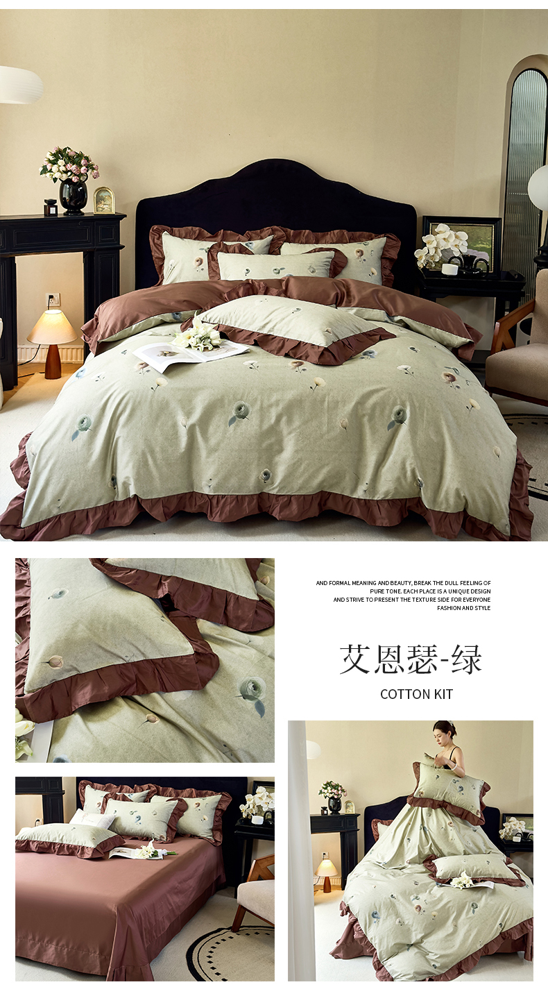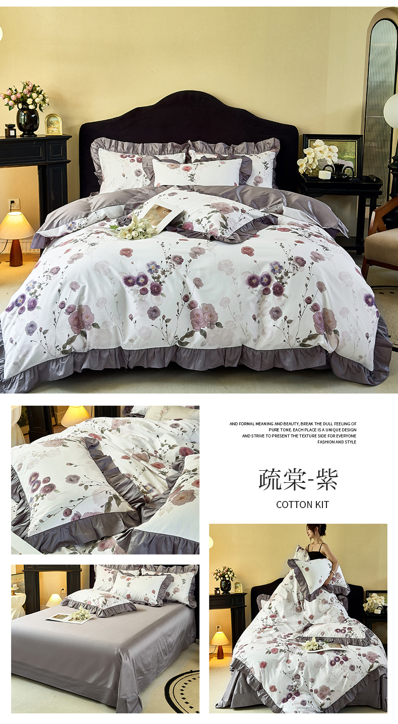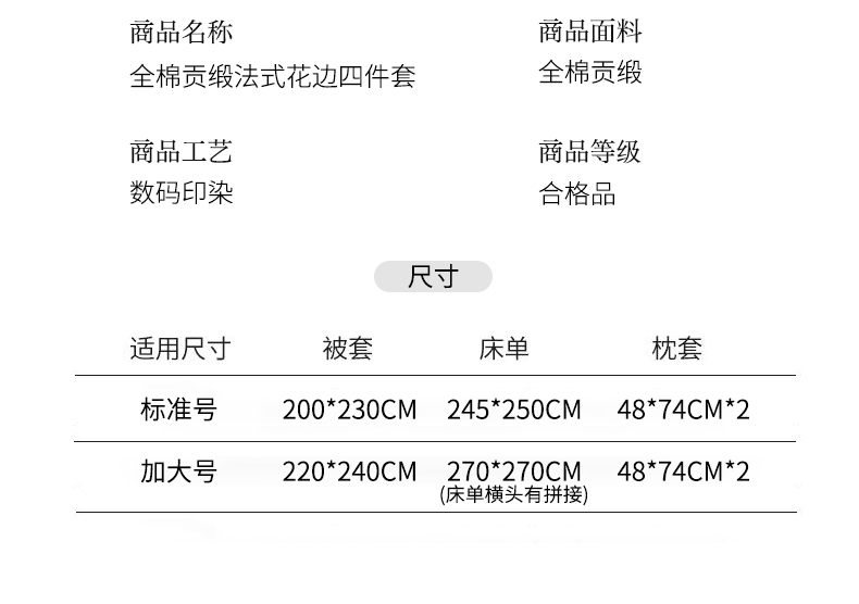 当前位置: 91家纺网 > 商品网购 > 床品套件 > 四件套 > 全棉普通四件套 > 未来家居 2025新款法式全棉贡缎花边款数码印花四件套 玛利戈德-米
