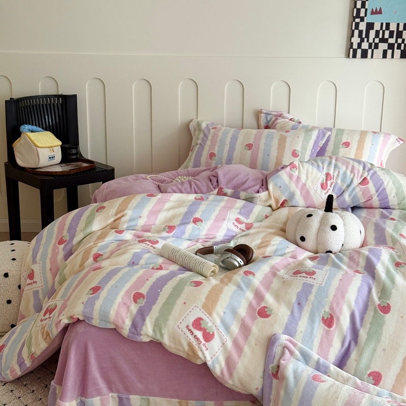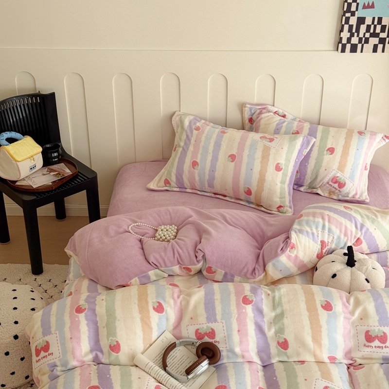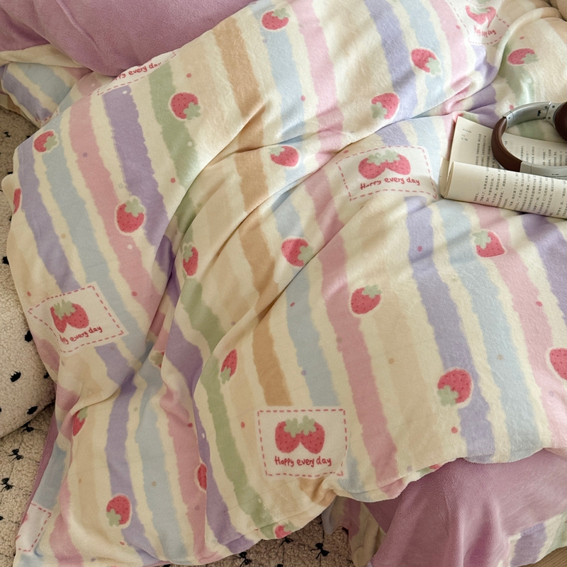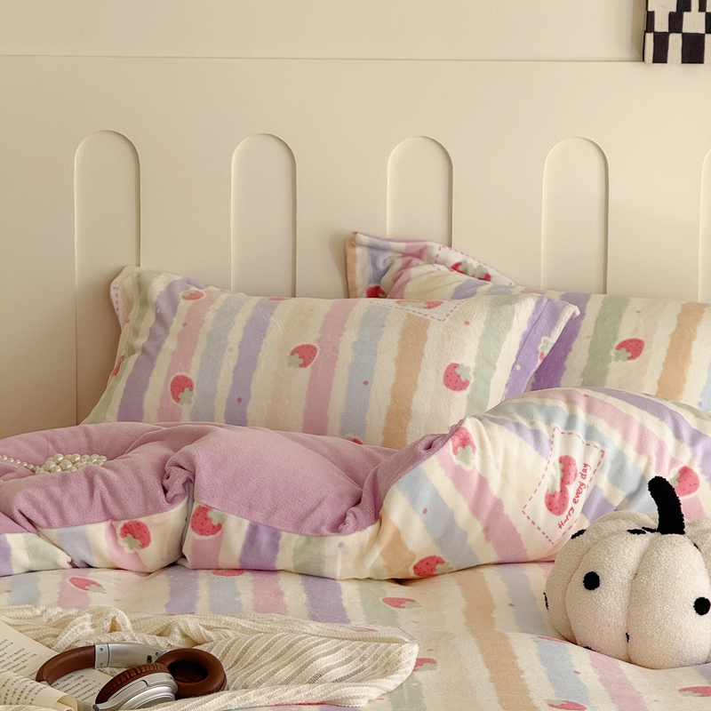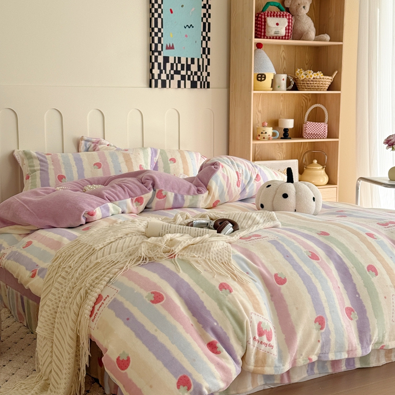 于果 2025新款牛奶绒印花四件套 炫彩草莓