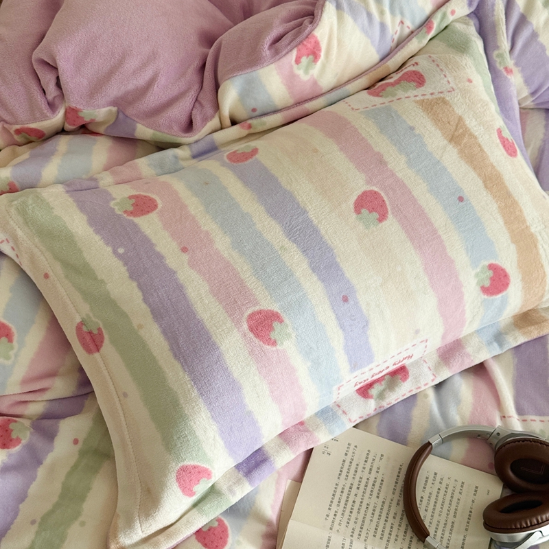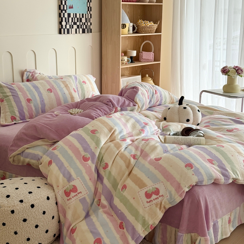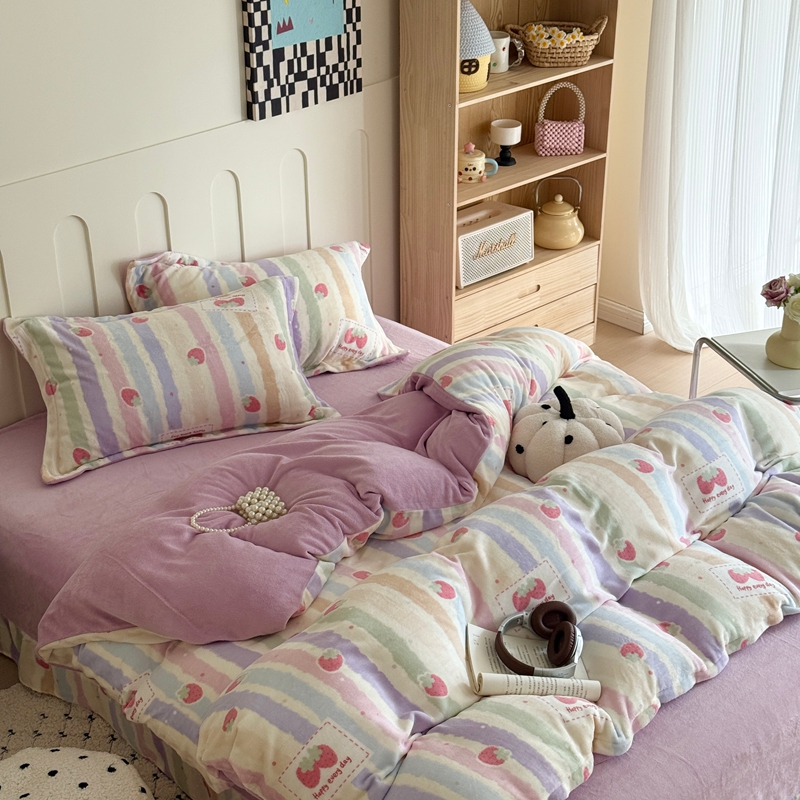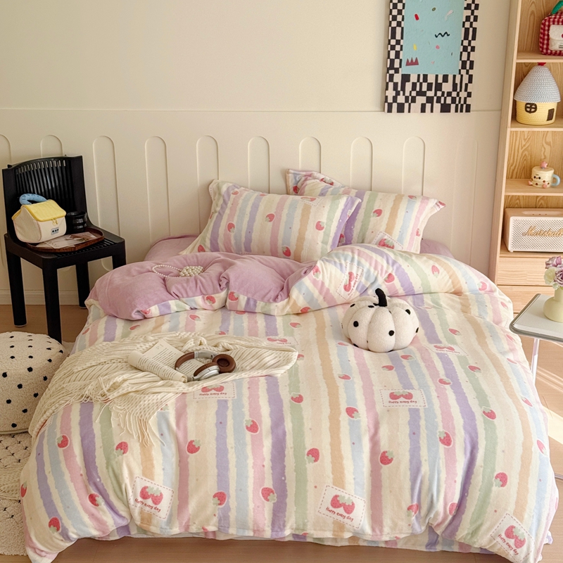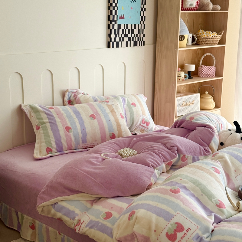 于果 2025新款牛奶绒印花四件套 炫彩草莓