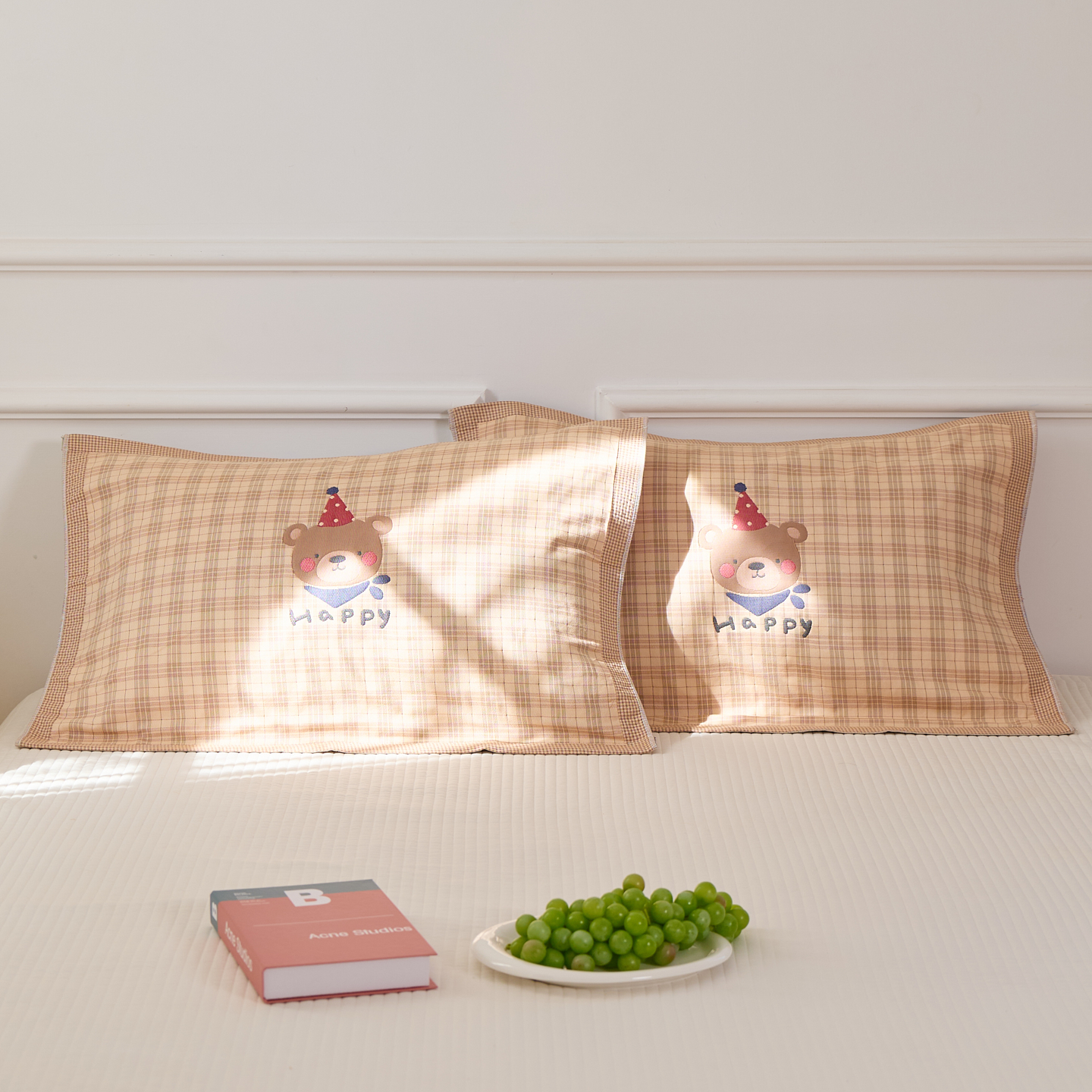 沐瑟家纺 2025新款卡通格子纯棉八层枕巾(含质检报告) 小鸭熊