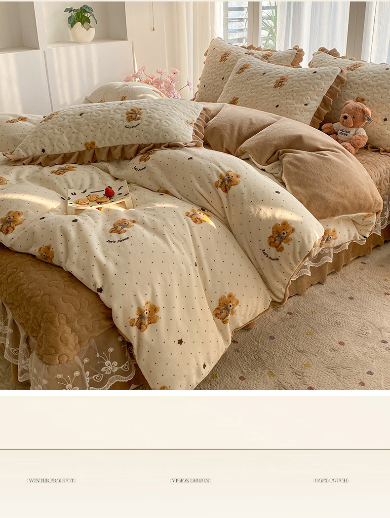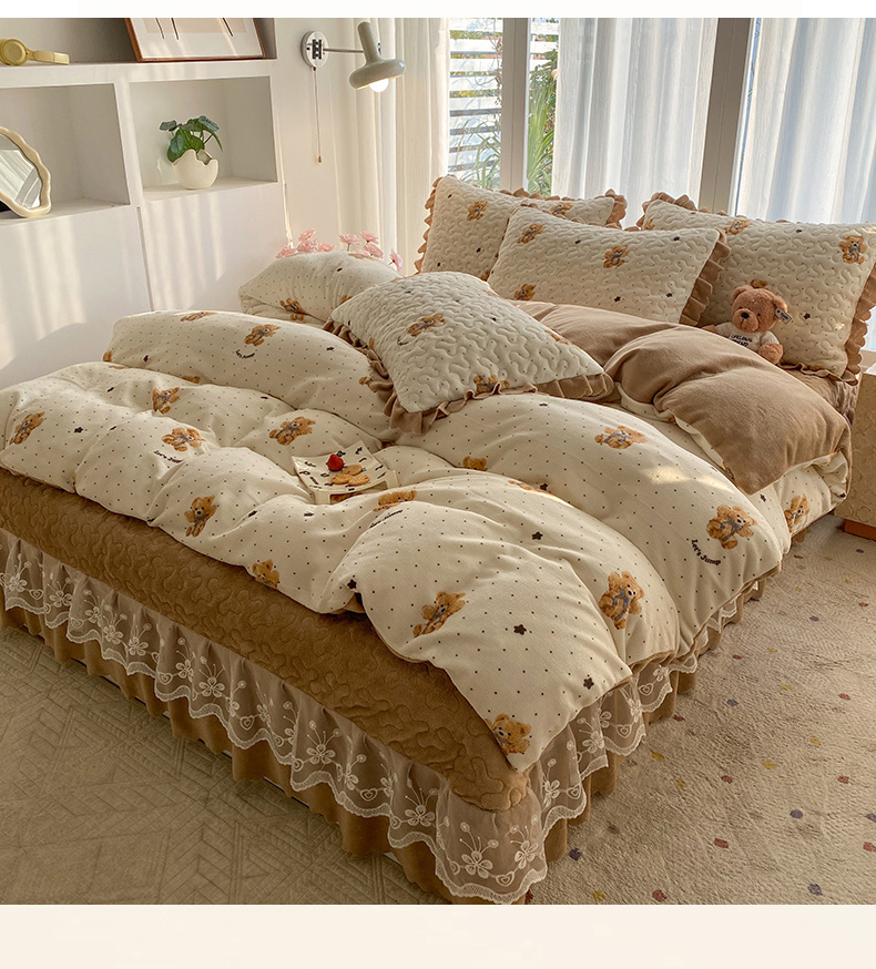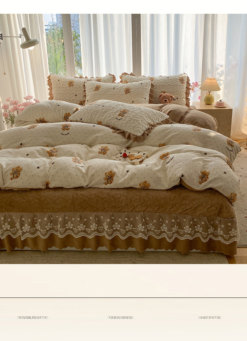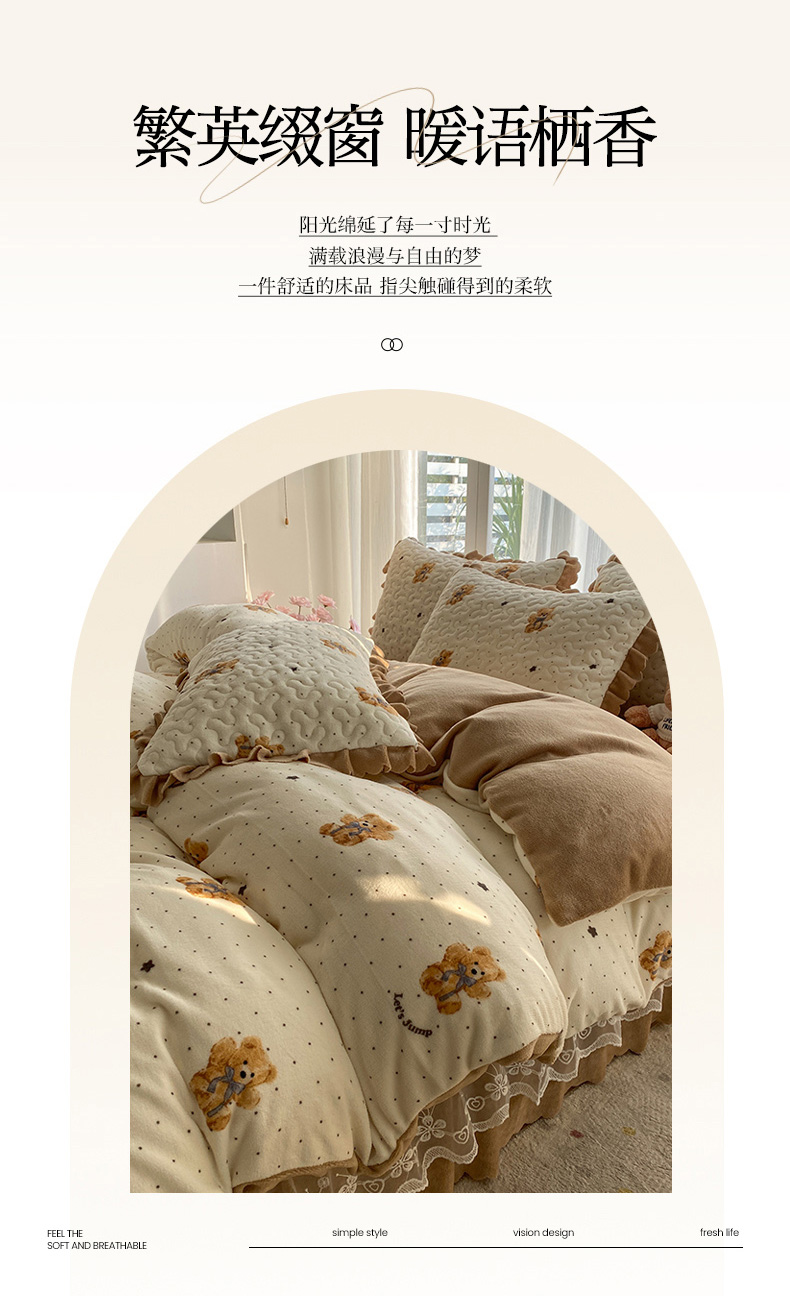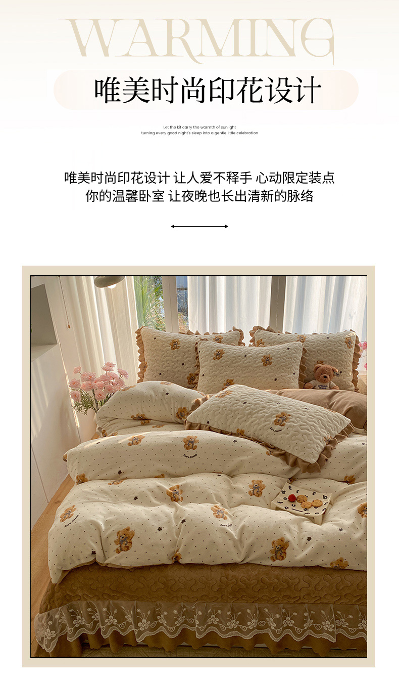 当前位置: 91家纺网 > 商品网购 > 床品套件 > 四件套 > 牛奶绒四件套 > 钰锦珀家纺 2025新款高克重牛奶绒蕾丝双层花边床盖四件套床盖三件套 星空熊仔