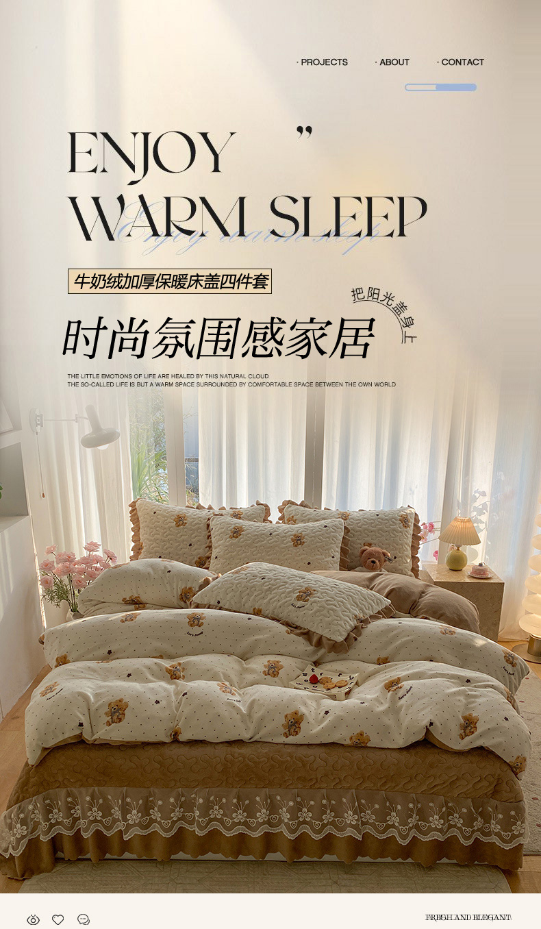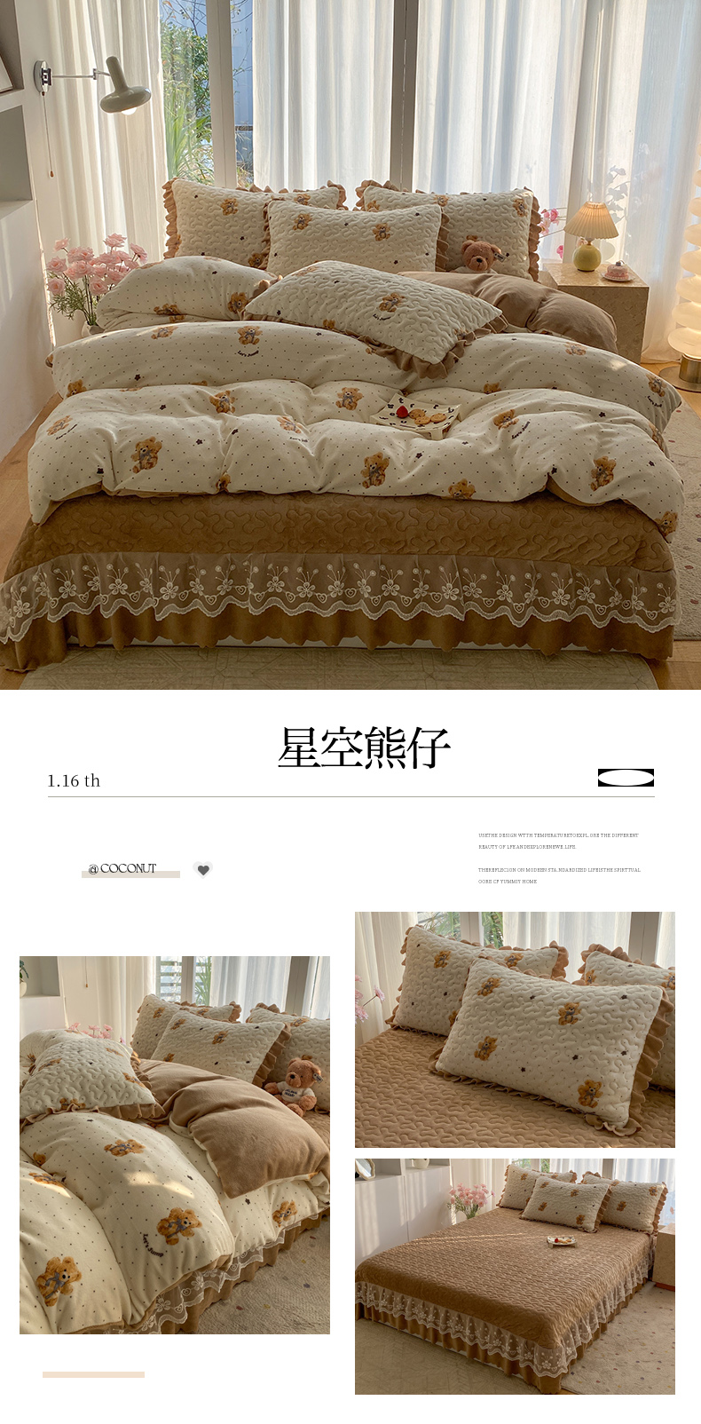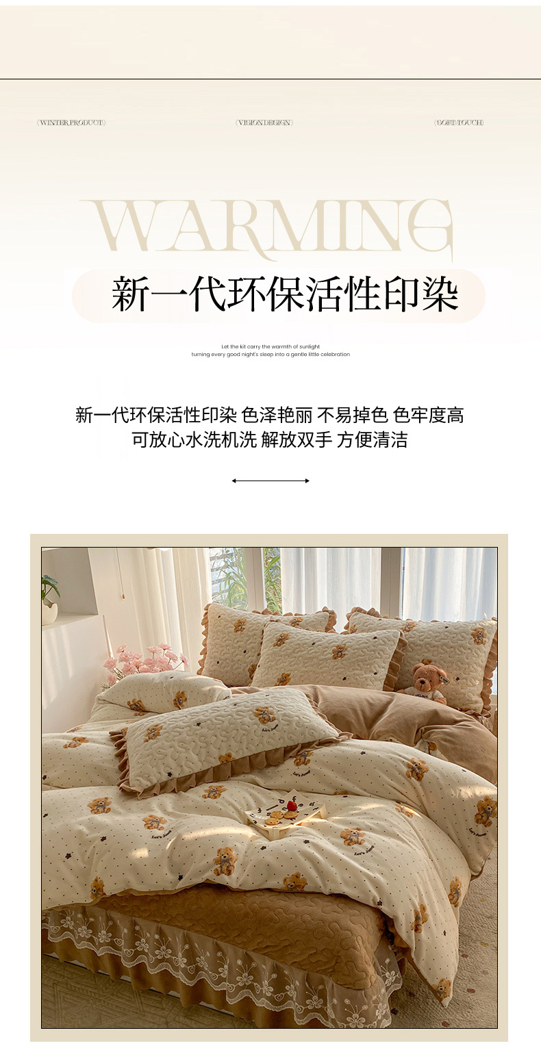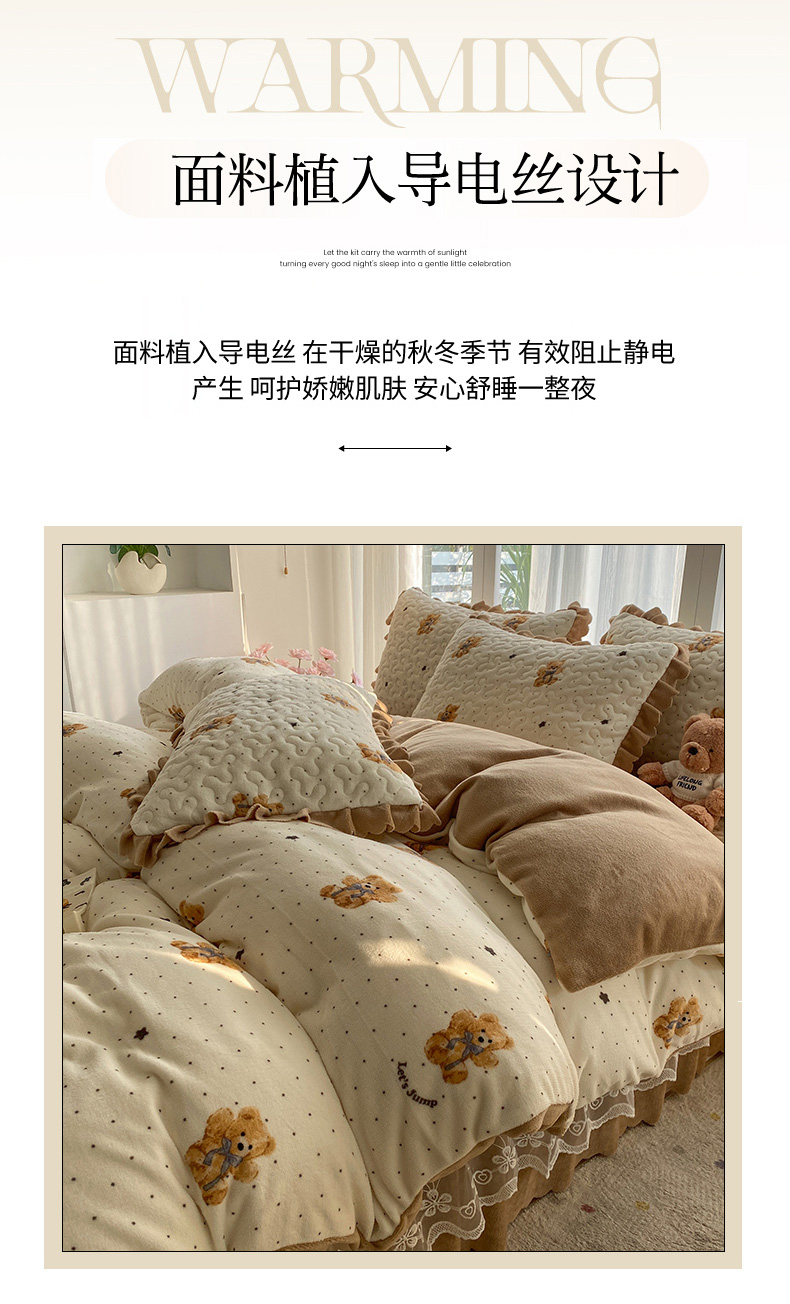 当前位置: 91家纺网 > 商品网购 > 床品套件 > 四件套 > 牛奶绒四件套 > 钰锦珀家纺 2025新款高克重牛奶绒蕾丝双层花边床盖四件套床盖三件套 星空熊仔
