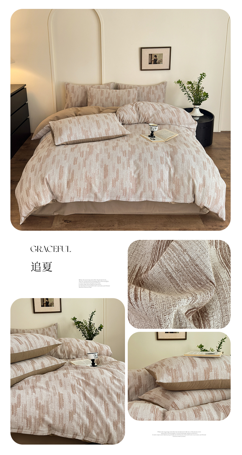 当前位置: 91家纺网 > 商品网购 > 床品套件 > 四件套 > 双层纱四件套 > 小叮当家纺仓储工厂店 (买家秀 爆款花型 不断货)2025新款A类全棉纯棉加厚磨毛双层纱色织提花四件套 格心桔咖