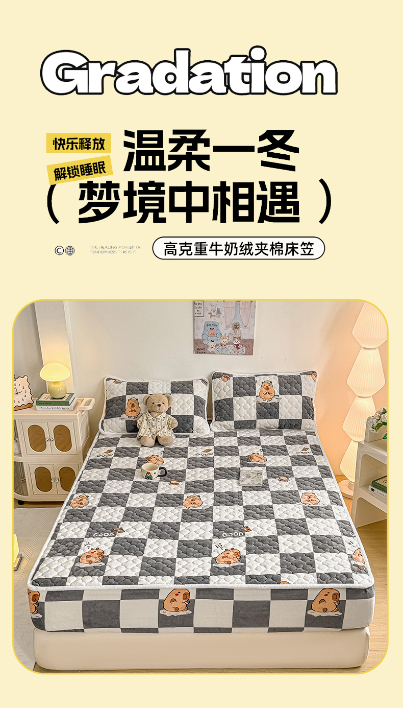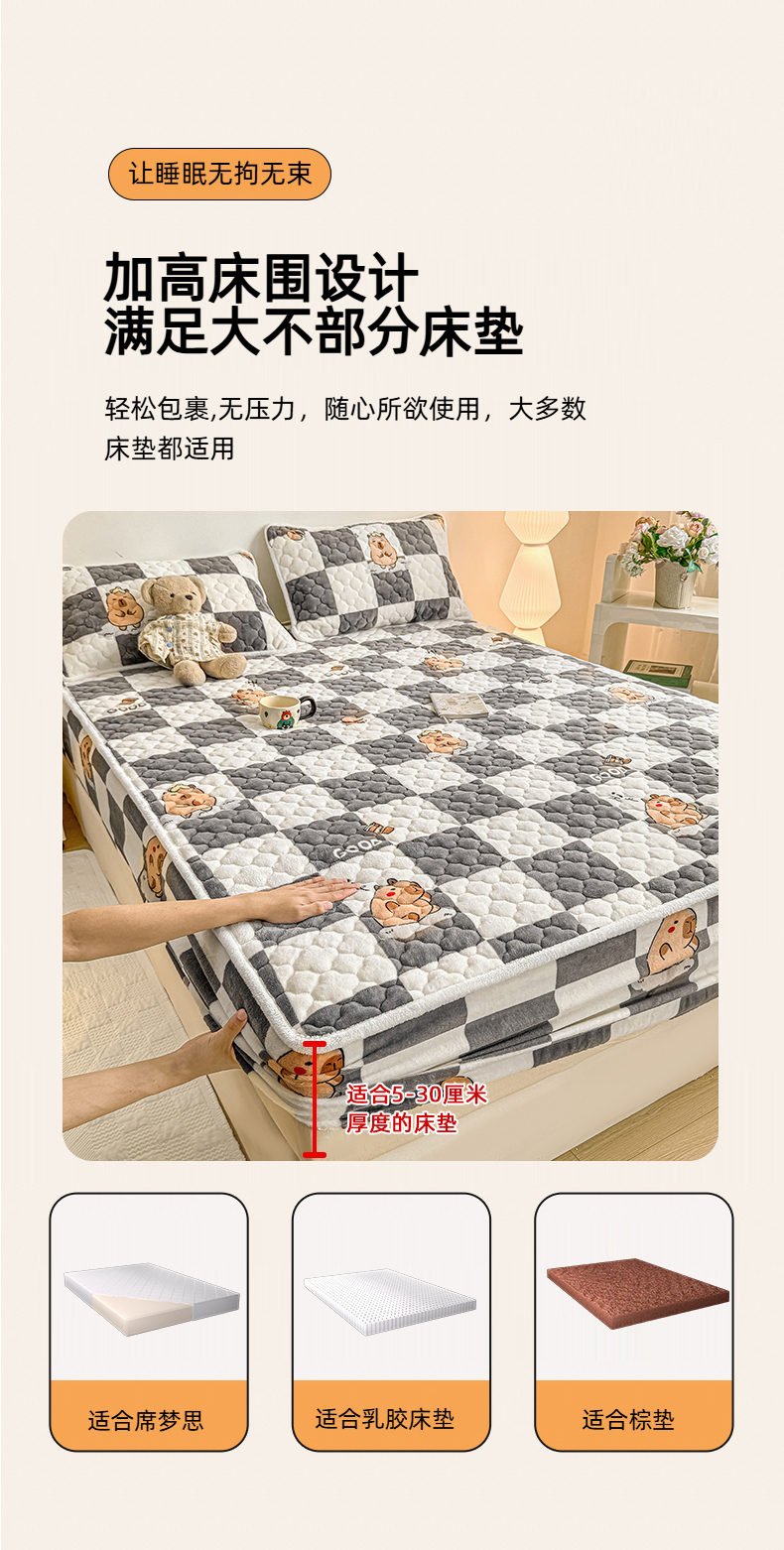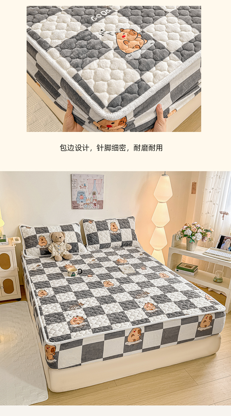 小叮当家纺仓储工厂店 2025新款A类200g高克重牛奶绒印花夹棉床笠单品床笠床笠单件(提供买家秀) 顽皮巴拉