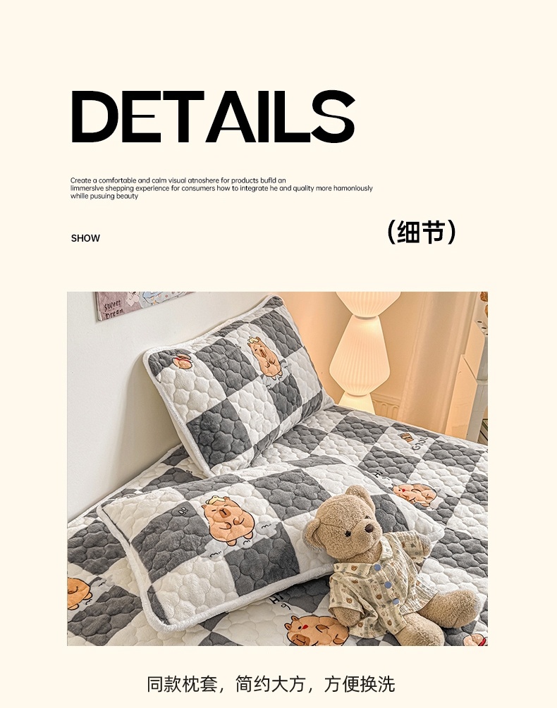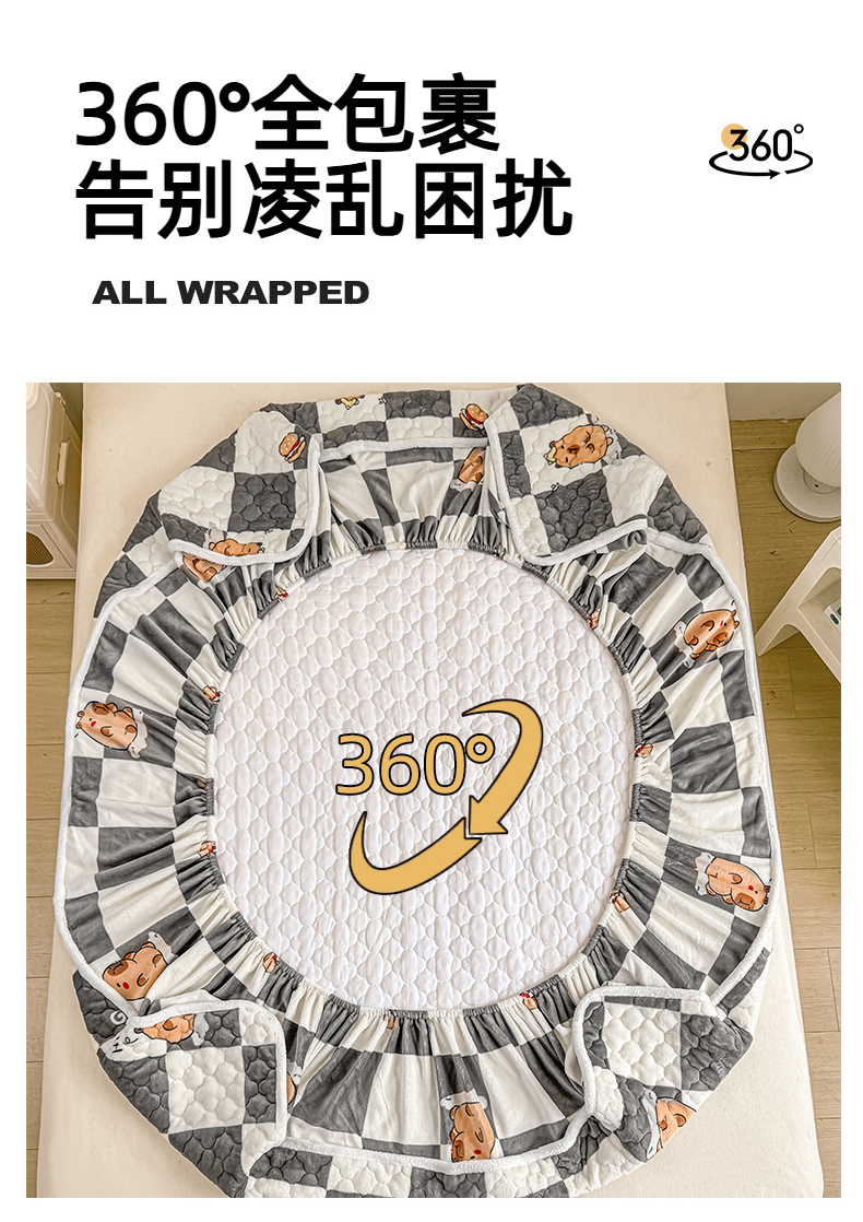 商品名称:小叮当家纺仓储工厂店 2025新款A类200g高克重牛奶绒印花夹棉床笠单品床笠床笠单件(提供买家秀) 顽皮巴拉