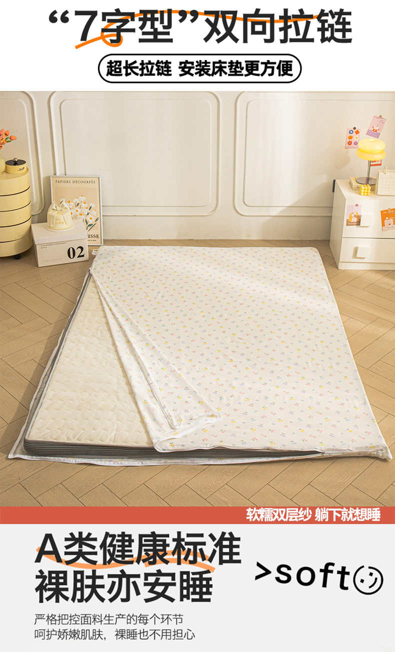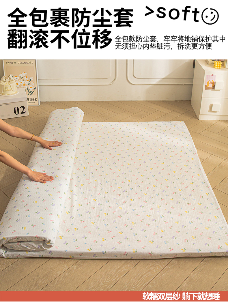 当前位置: 91家纺网 > 商品网购 > 床上用品 > 床垫套 > 小叮当家纺仓储工厂店 【长期供货】2025新款双层纱地铺防尘套【支持小批量定制】 S小花