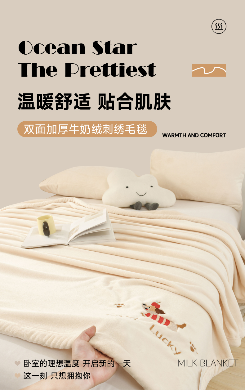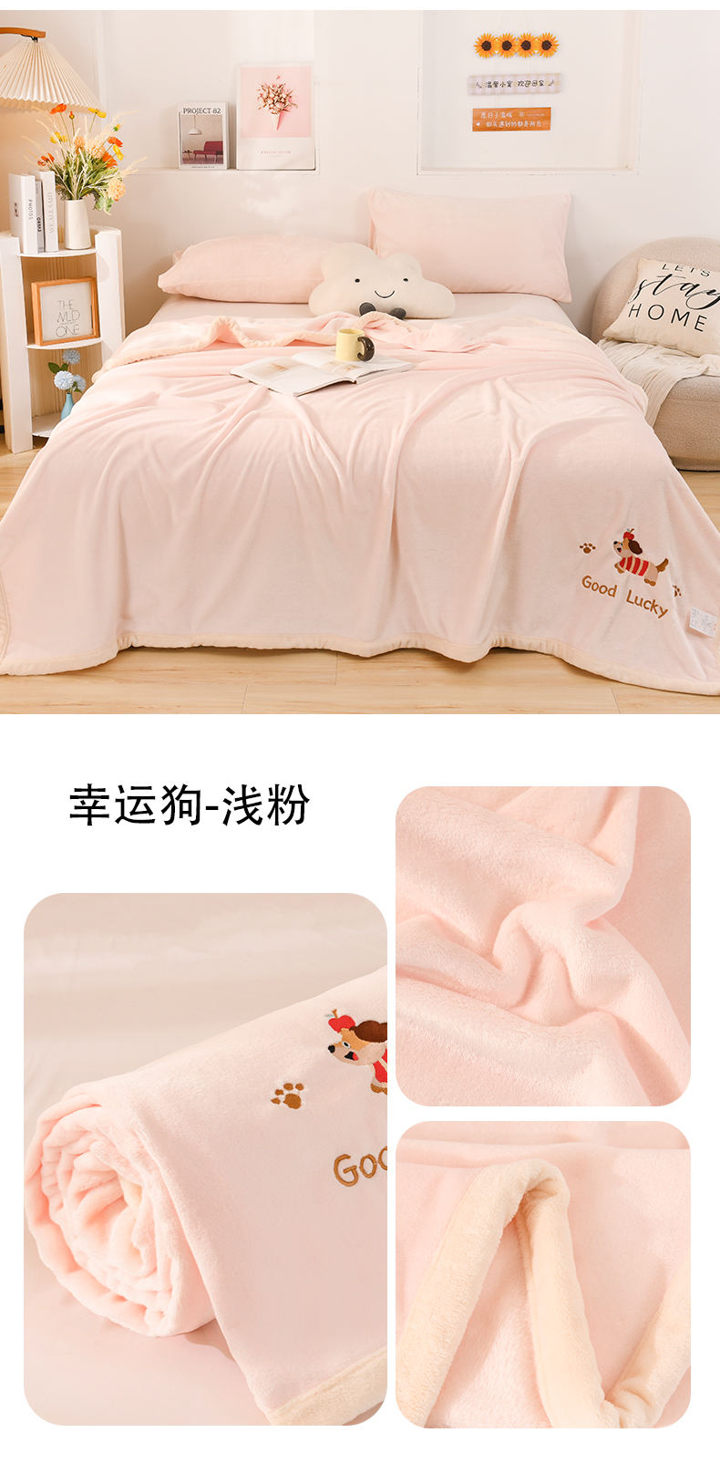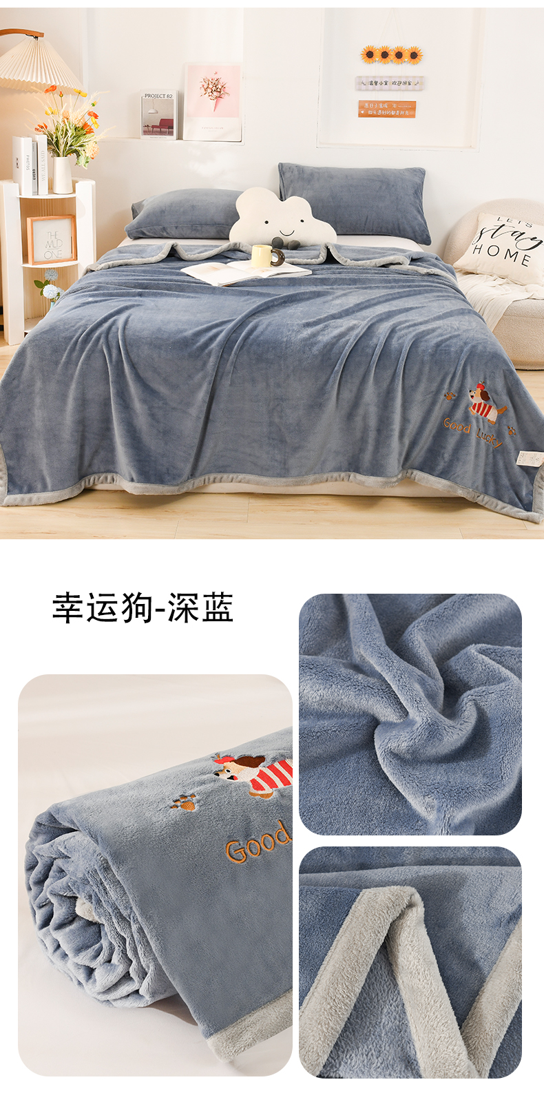 (总)恋绒家纺 2025新款刺绣款双面绒毛毯毯子盖毯,幸运狗-湖蓝,幸运狗-米白,幸运狗-浅粉,幸运狗-深灰,幸运狗-深蓝
