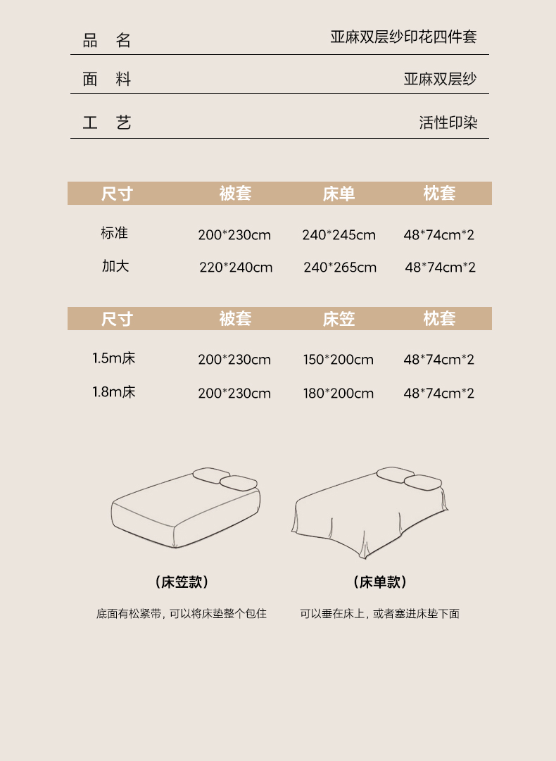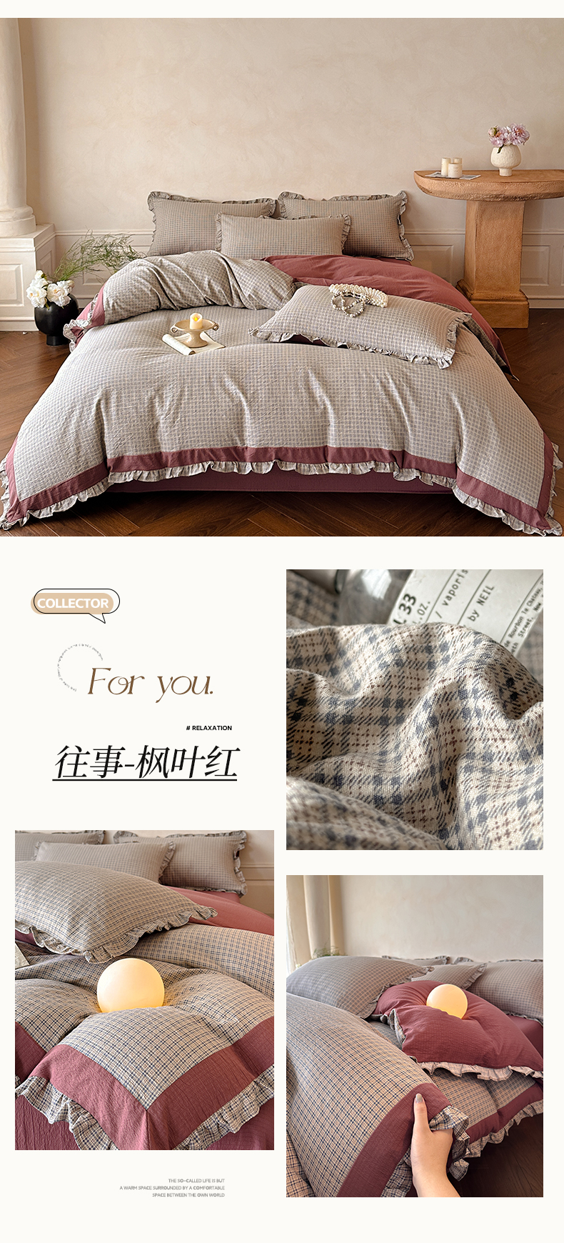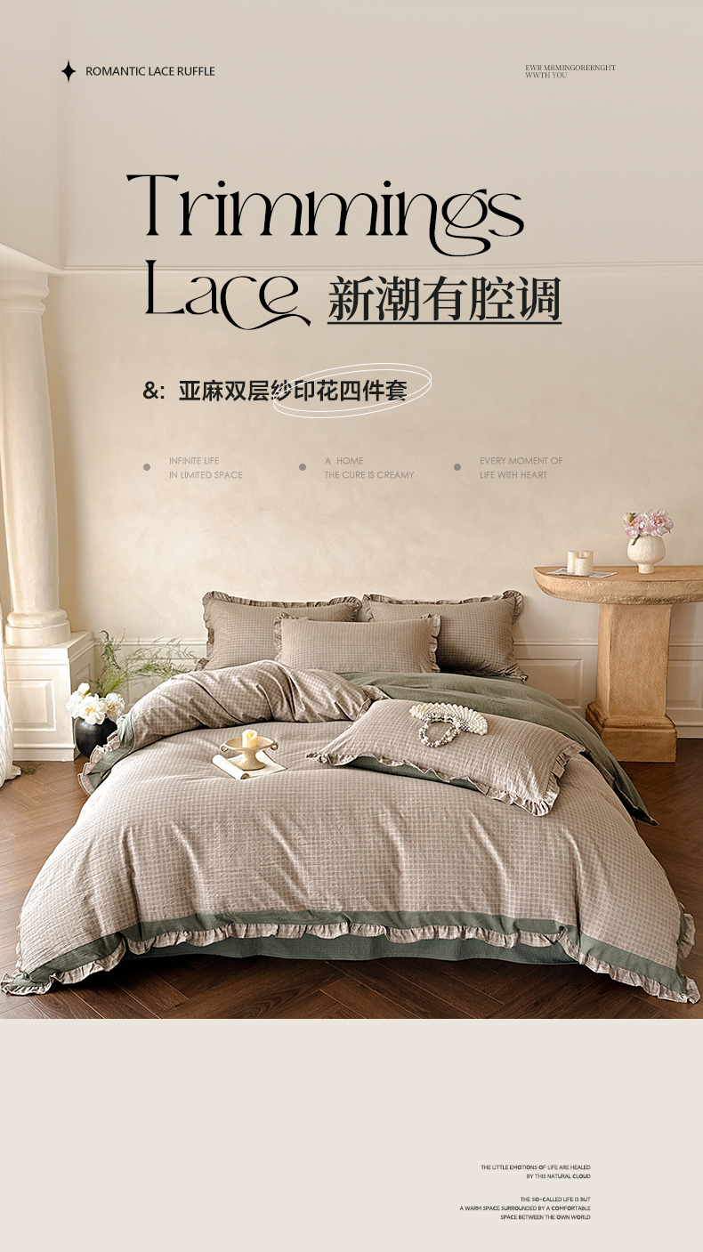 (总)遇见家居生活馆 2025新款亚麻双层纱印花四件套-往事,往事-枫叶红,往事-复古咖,往事-奶油黄,往事-浅灰色,往事-深灰色