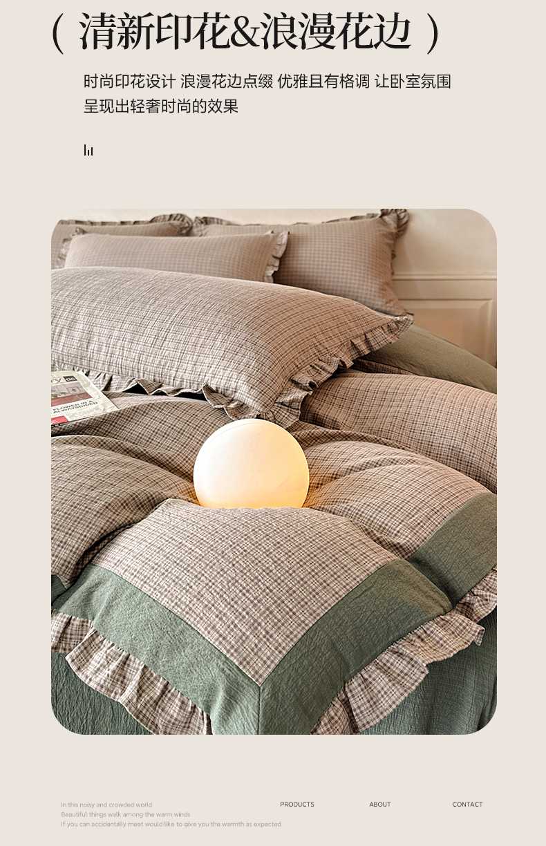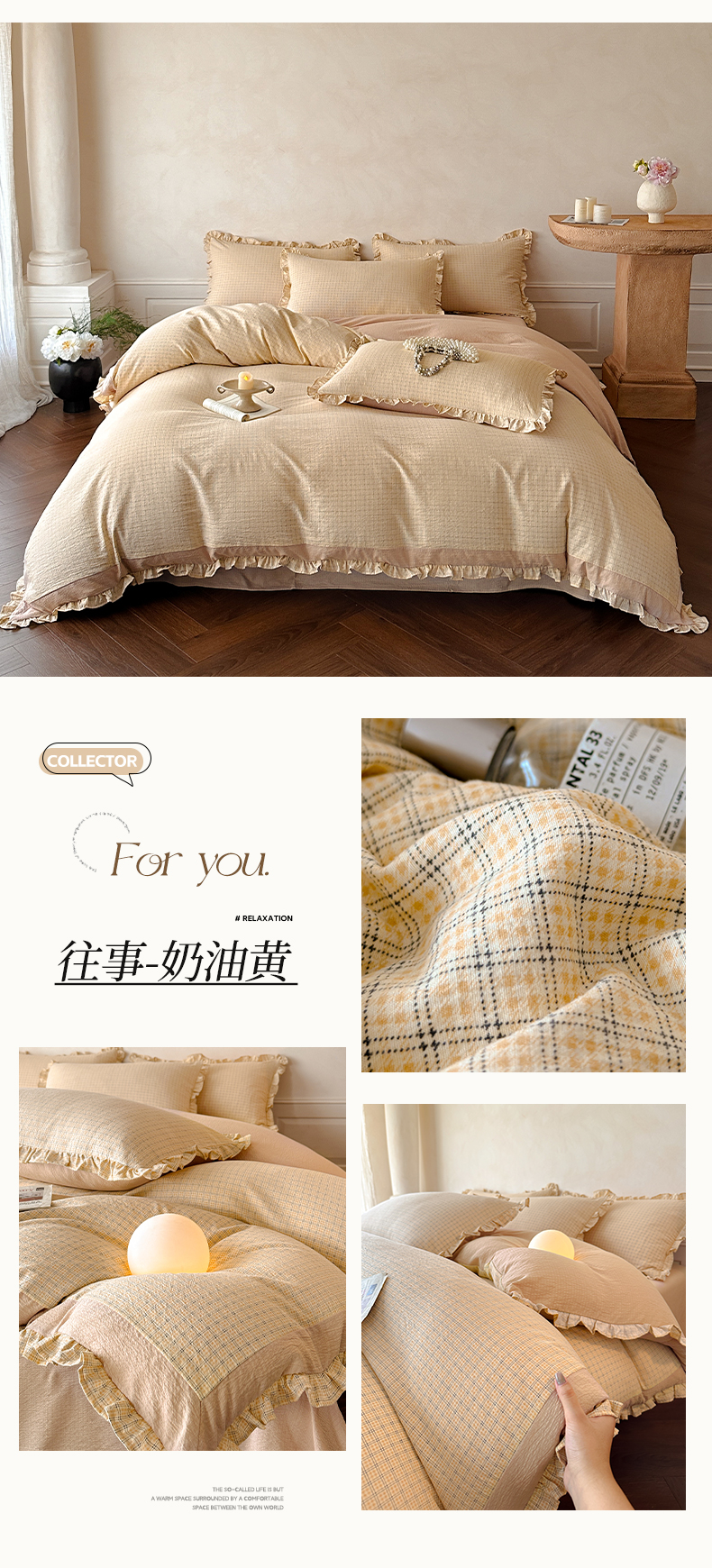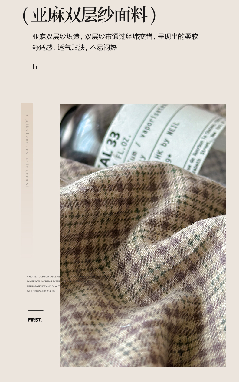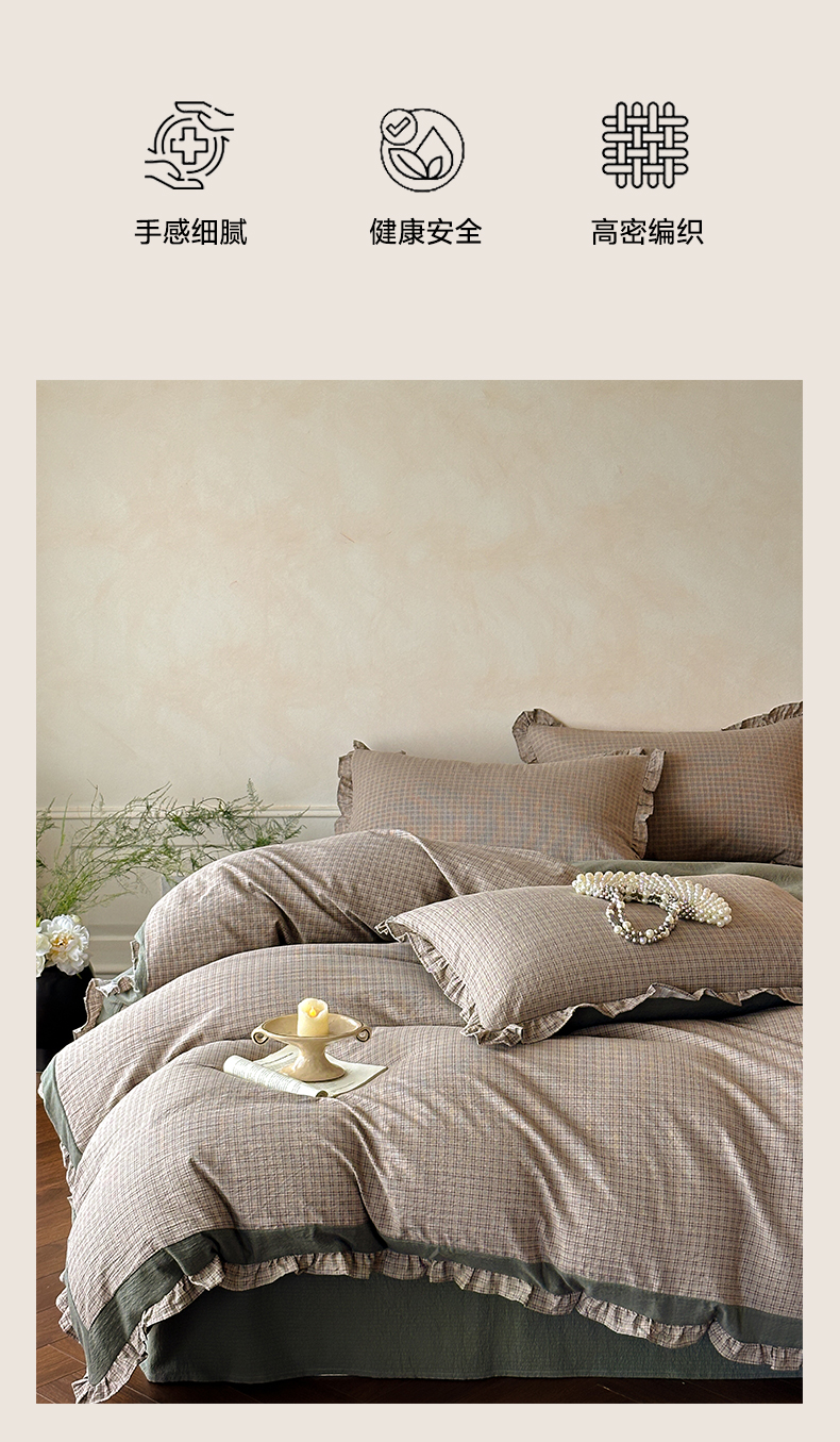 (总)遇见家居生活馆 2025新款亚麻双层纱印花四件套-往事,往事-枫叶红,往事-复古咖,往事-奶油黄,往事-浅灰色,往事-深灰色