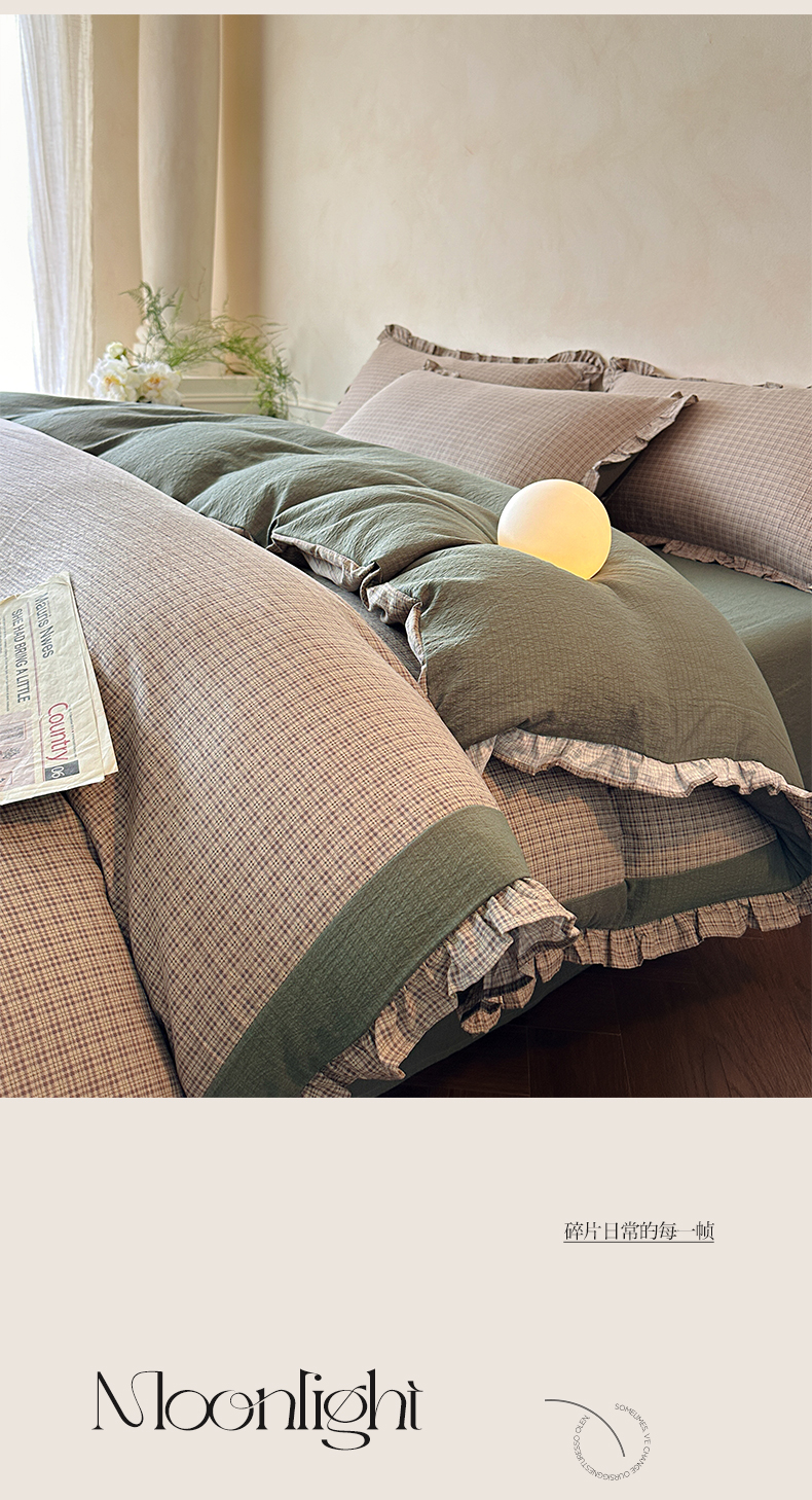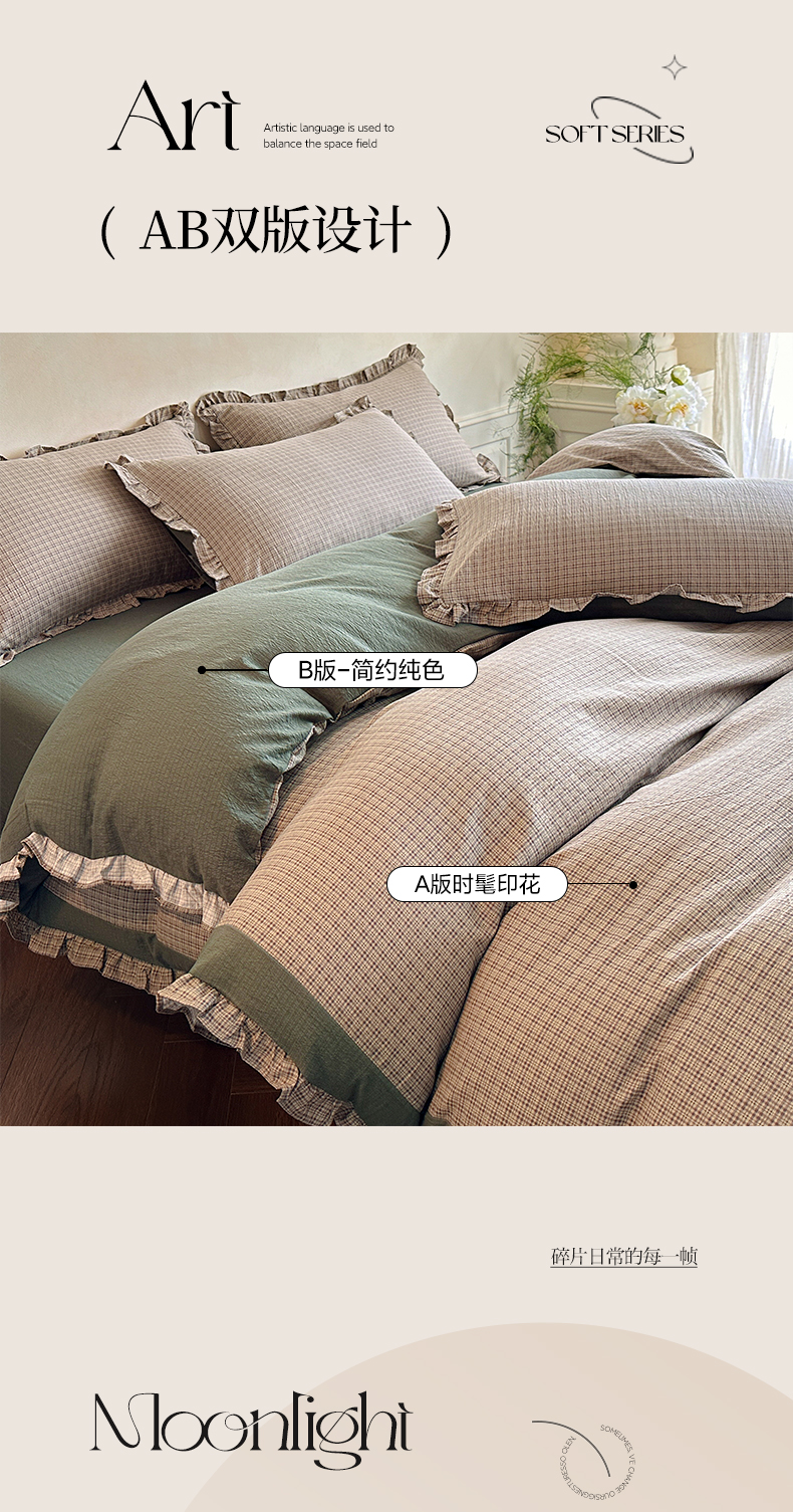 (总)2025新款小清新全棉纯棉四件套-若溪,麦田绿,茉莉奶白,霞光紫,杏花粉,雪山粉