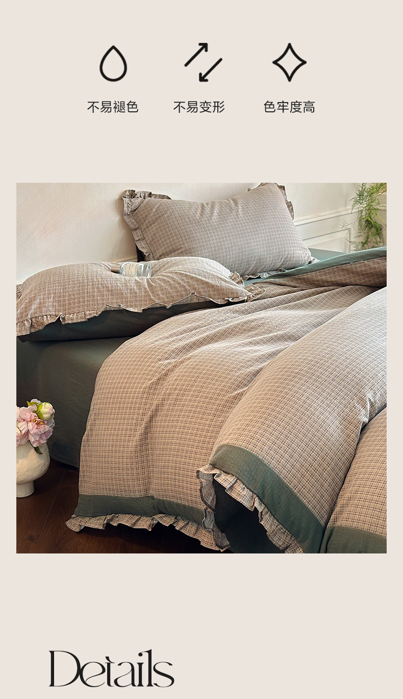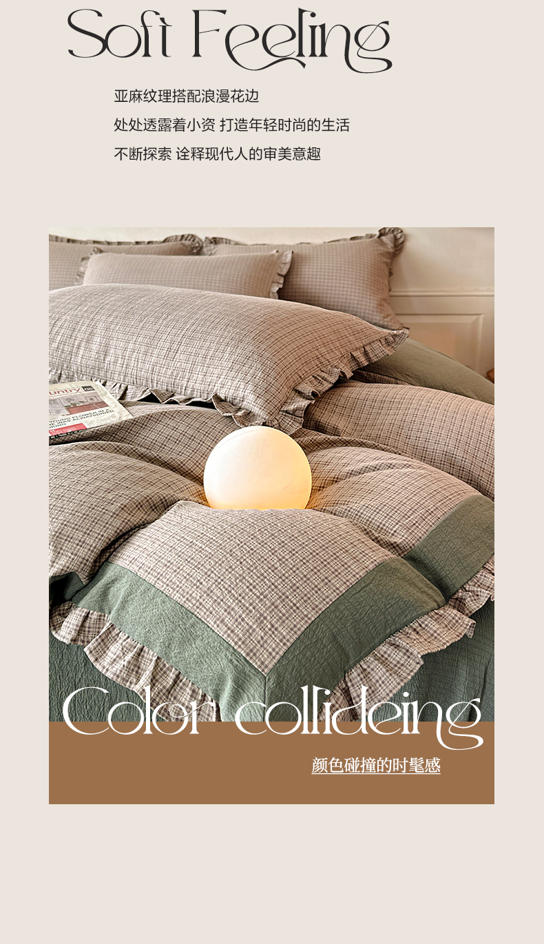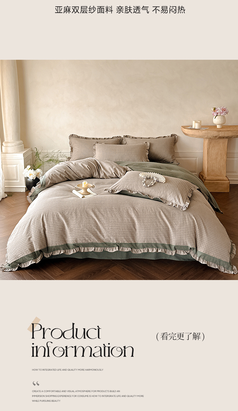 (总)遇见家居生活馆 2025新款亚麻双层纱四件套-叶知秋(小号108 标准128,加大138),叶知秋-粉,叶知秋-黄色,叶知秋-灰紫,叶知秋-卡其,叶知秋-蓝色,叶知秋-绿,叶知秋-紫色