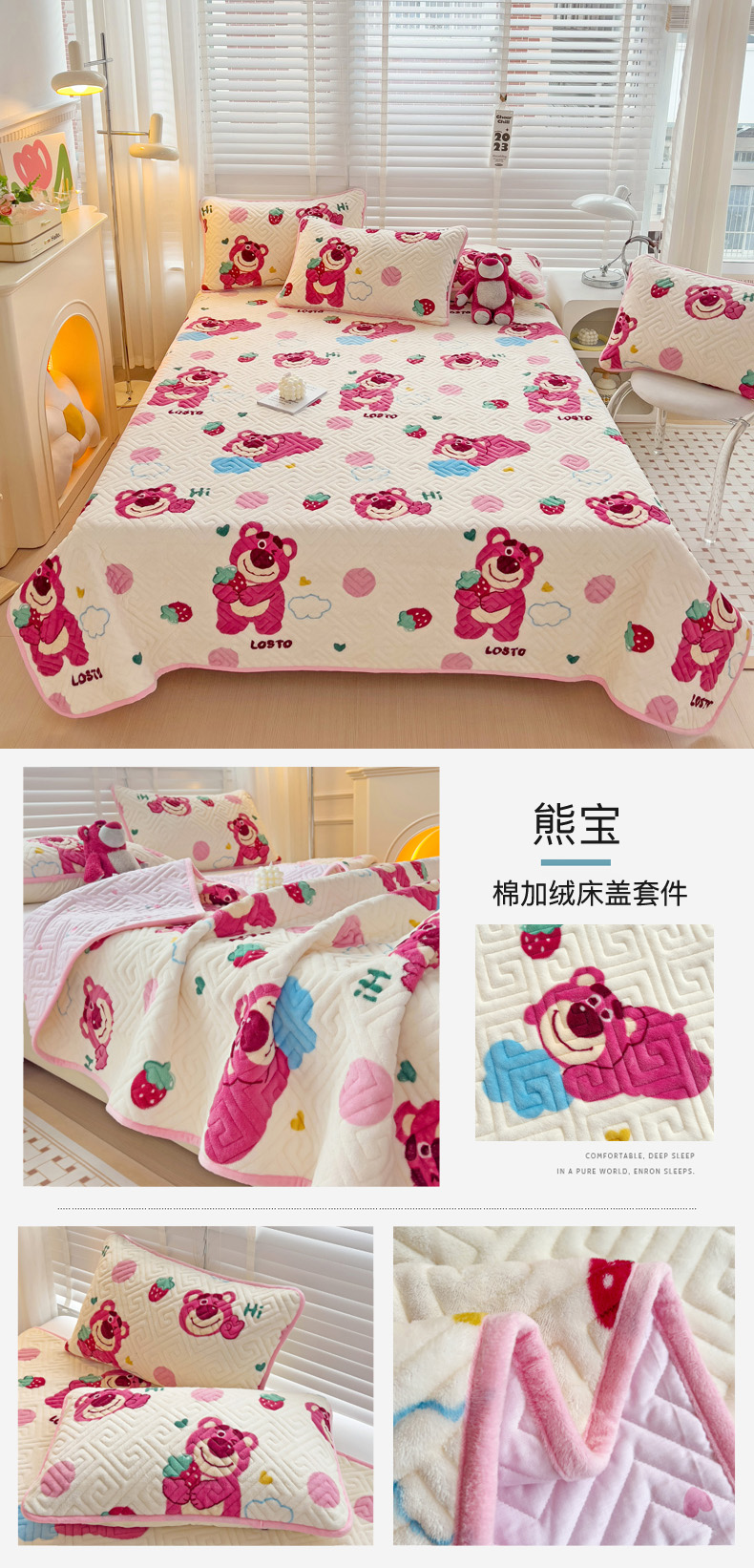 羽爱 2025新款棉加绒床盖套件 熊宝