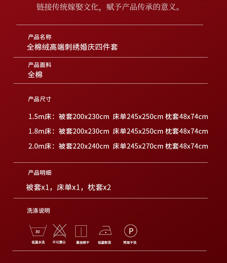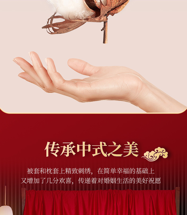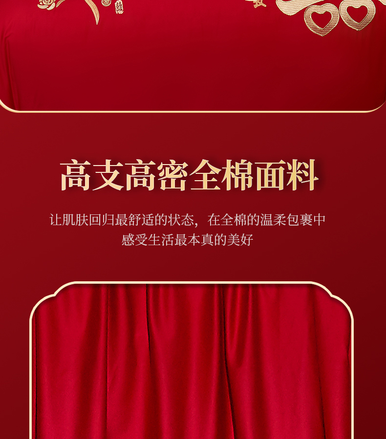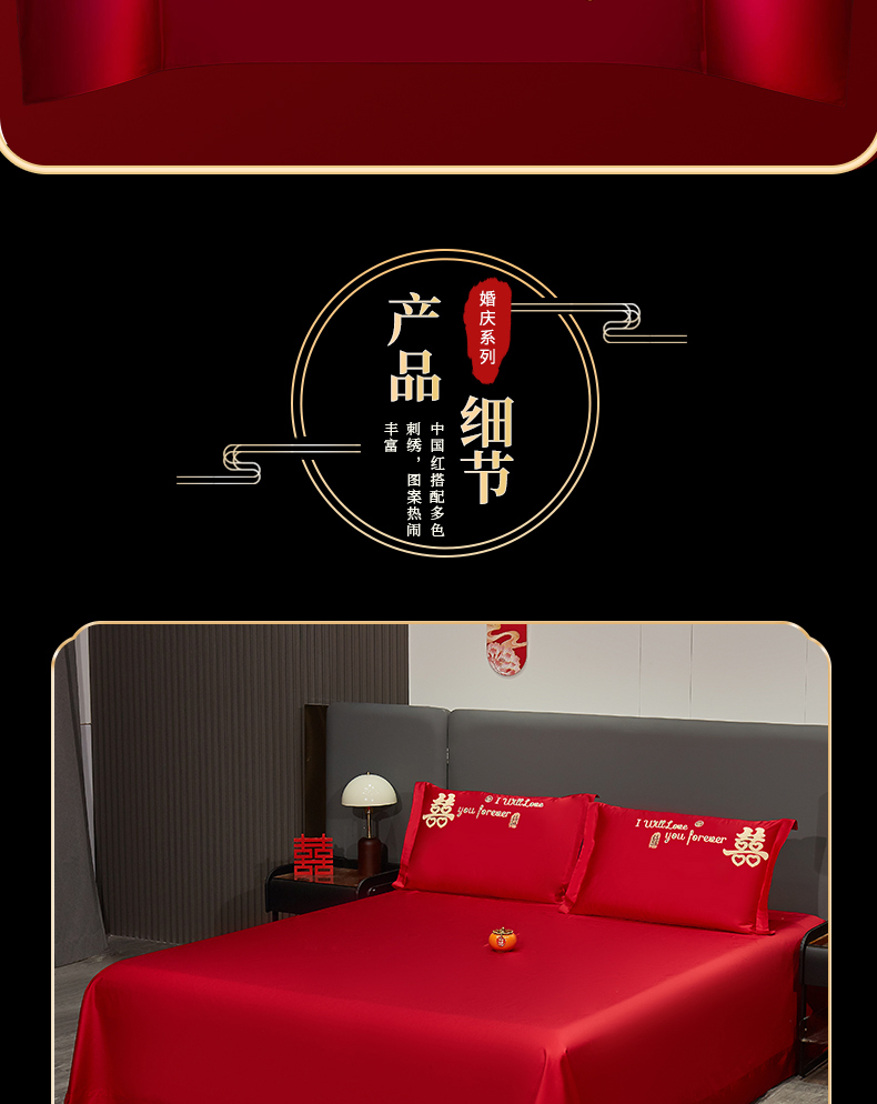商品名称:浩情国际婚庆供货中心 2026新款100%全棉纯棉新中式刺绣大红结婚婚庆四件套多件套 HQ-幸福美满