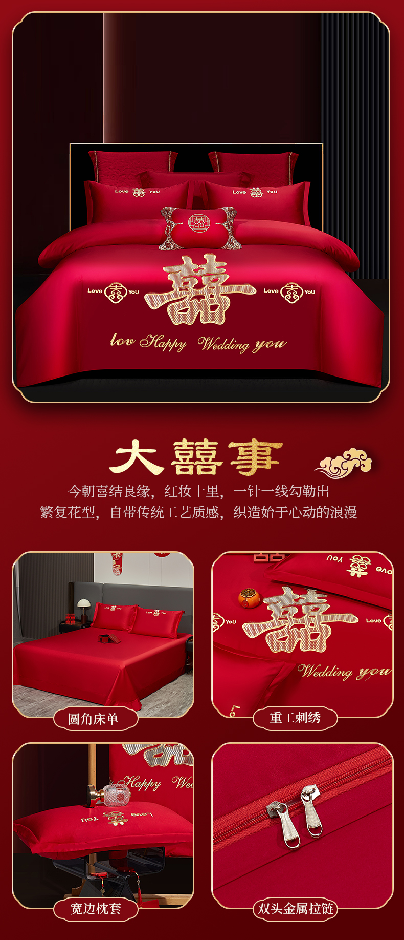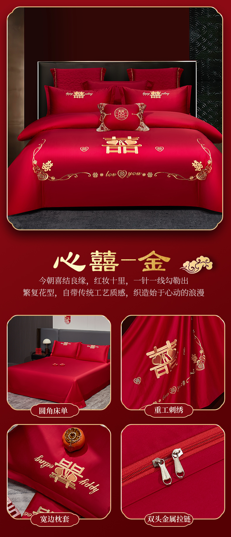 (总)浩情国际婚庆供货中心 2026新款100%全棉纯棉新中式刺绣大红结婚婚庆四件套多件套,HQ-百年好合,HQ-情投意合,HQ-幸福美满,HQ-心囍(金),HQ-囍结良缘,HQ-大囍事