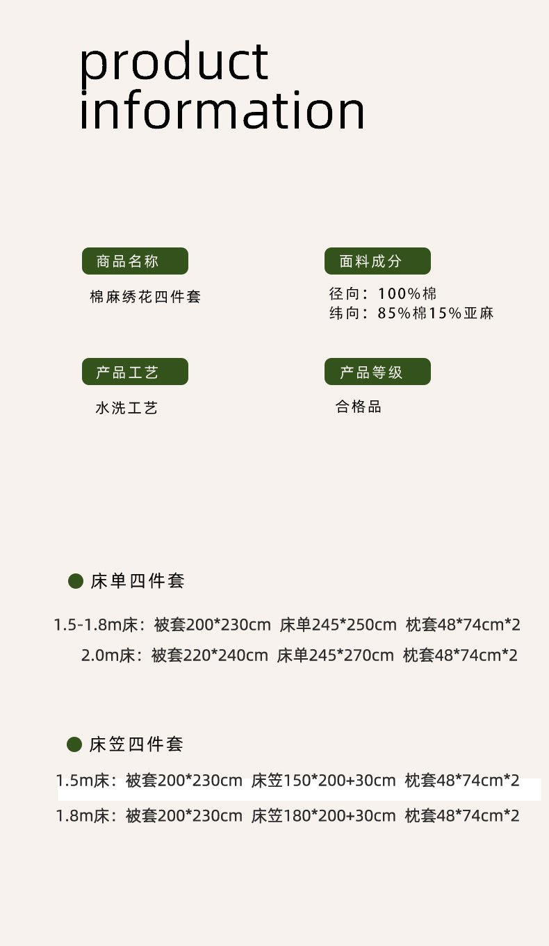 商品名称:(总)Mr.pig猪先生水洗棉 2025新款中古风复古棉麻法式A类棉麻绣花四件套(展示价格为控价,实际价格联系客服)