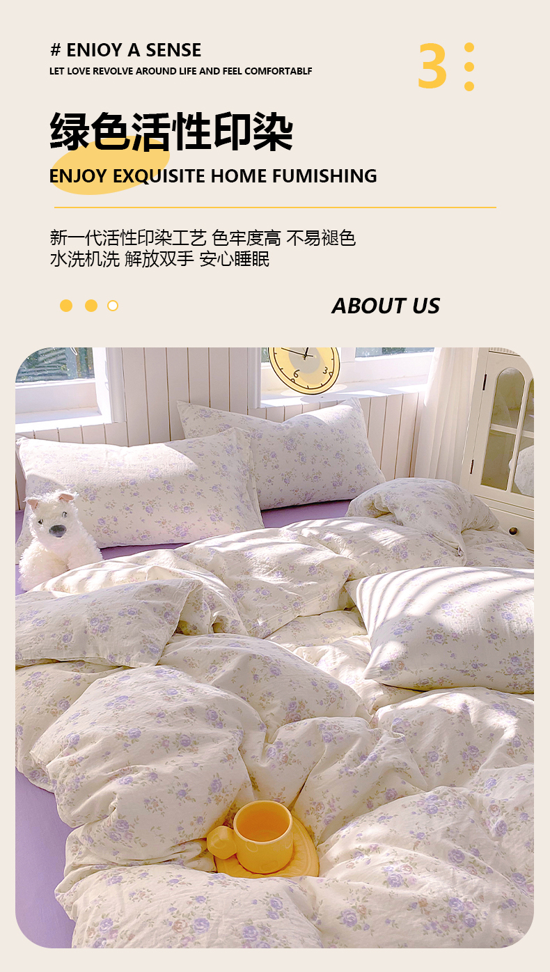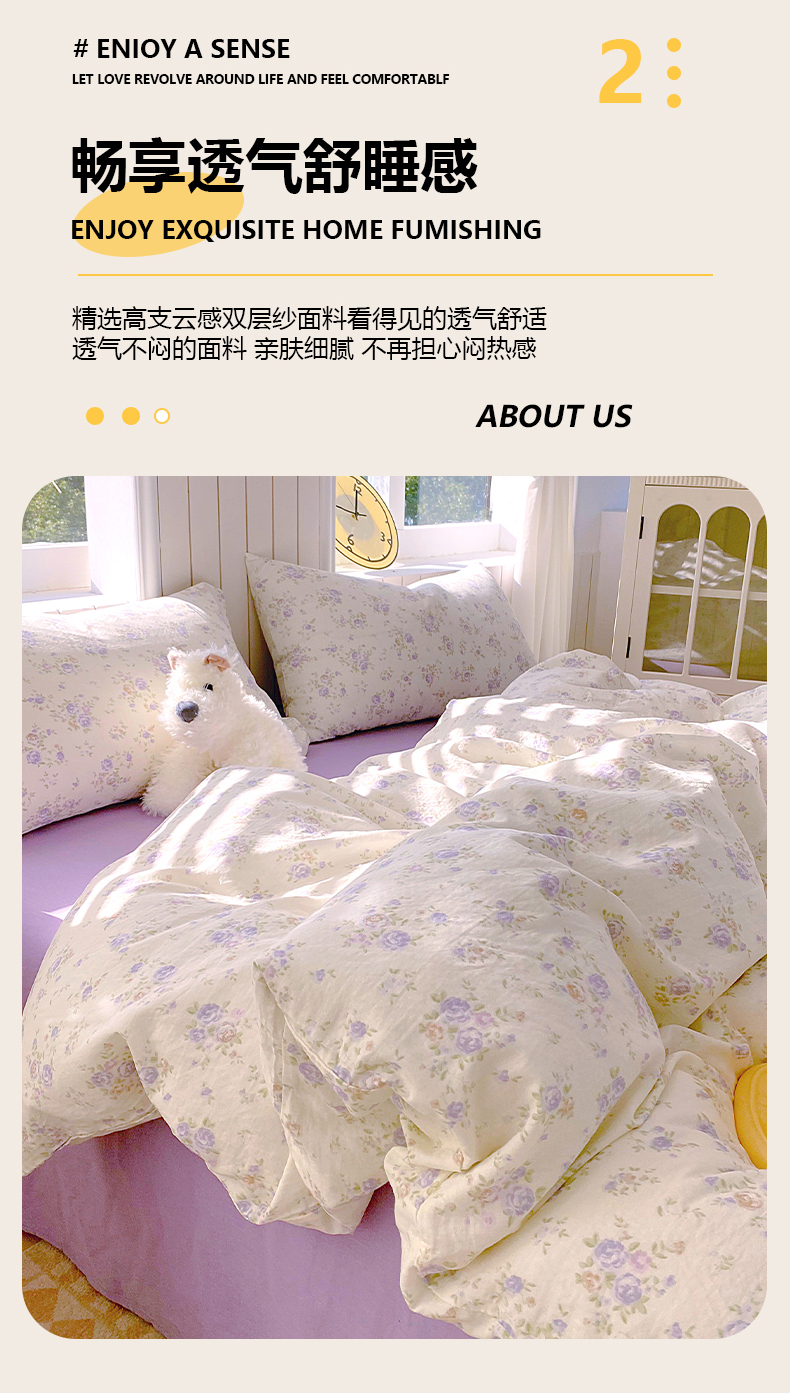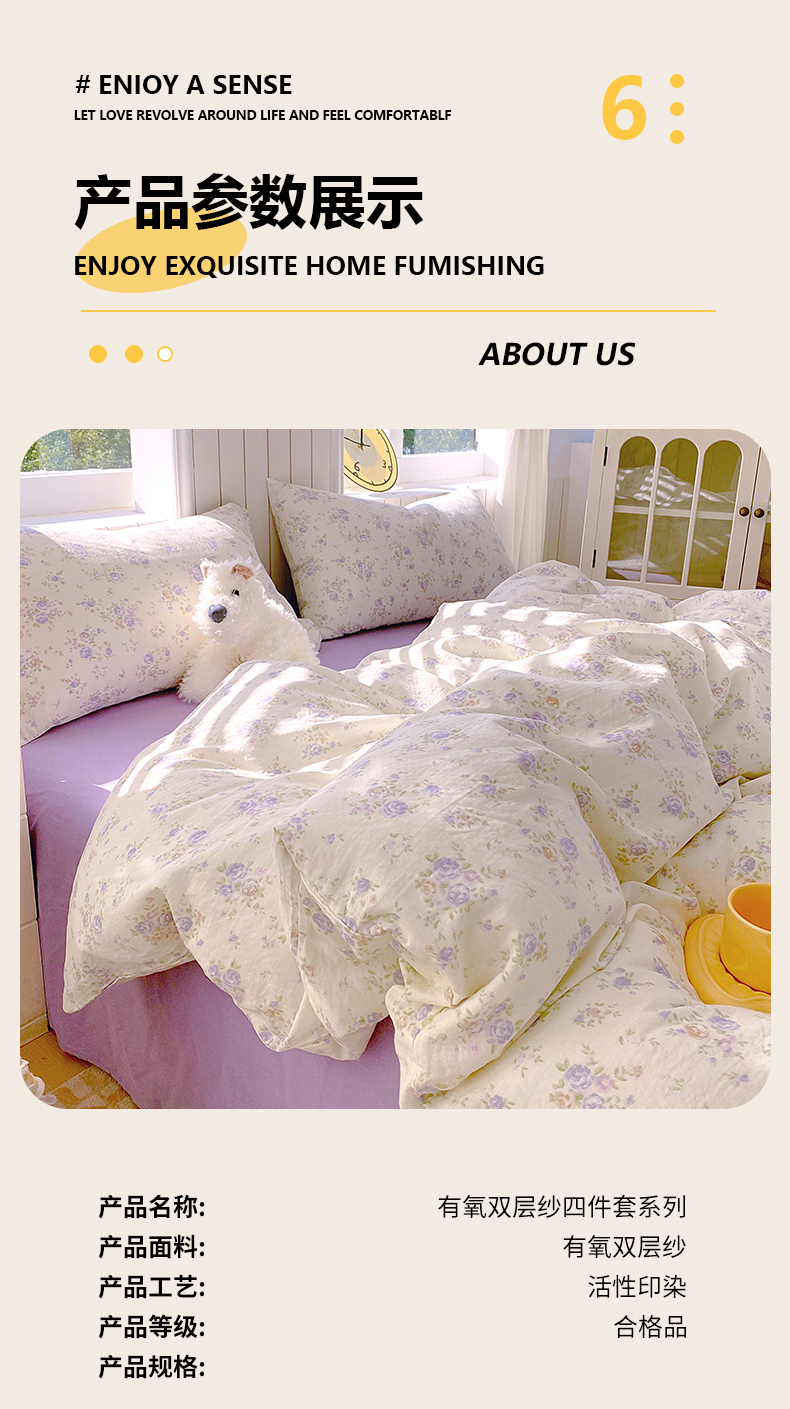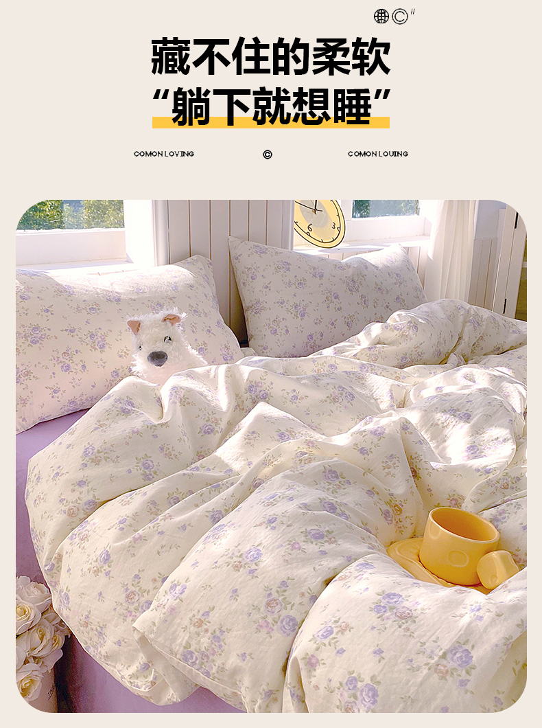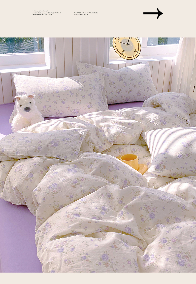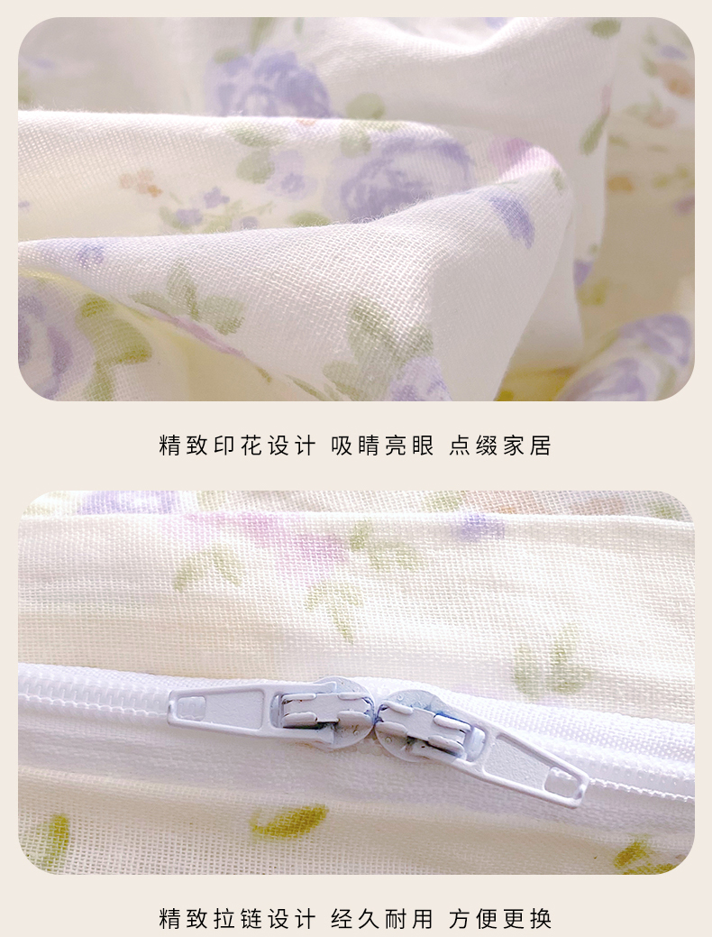 当前位置: 91家纺网 > 商品网购 > 床品套件 > 四件套 > 全棉普通四件套 > 春皖家纺 2026新款A类全棉有氧双层纱印花四件套单品系列-四件套 雾染玫瑰