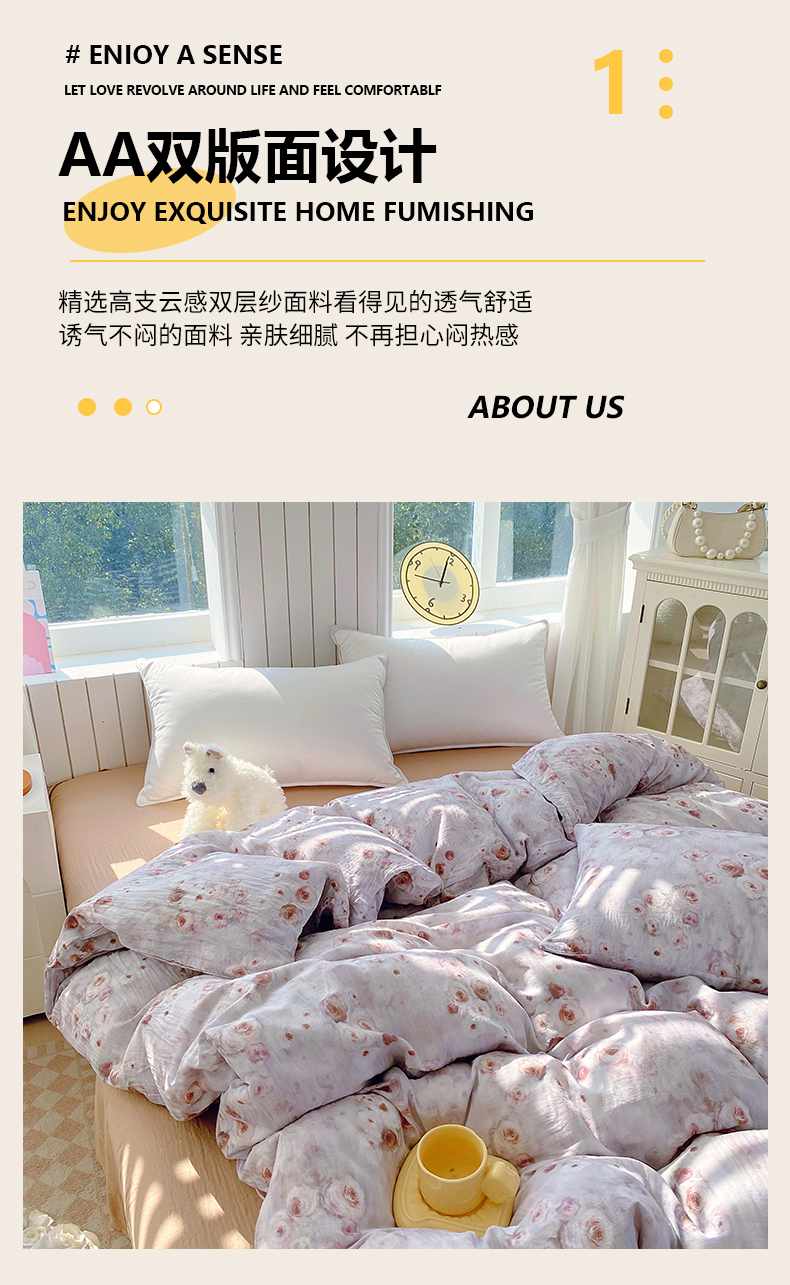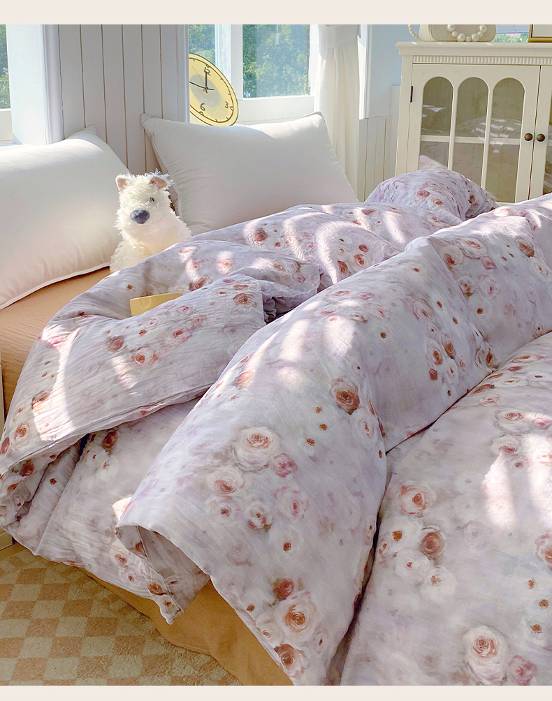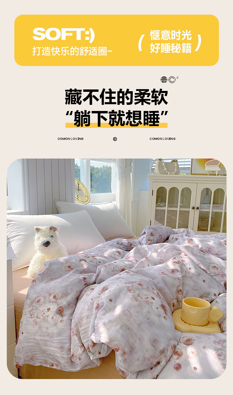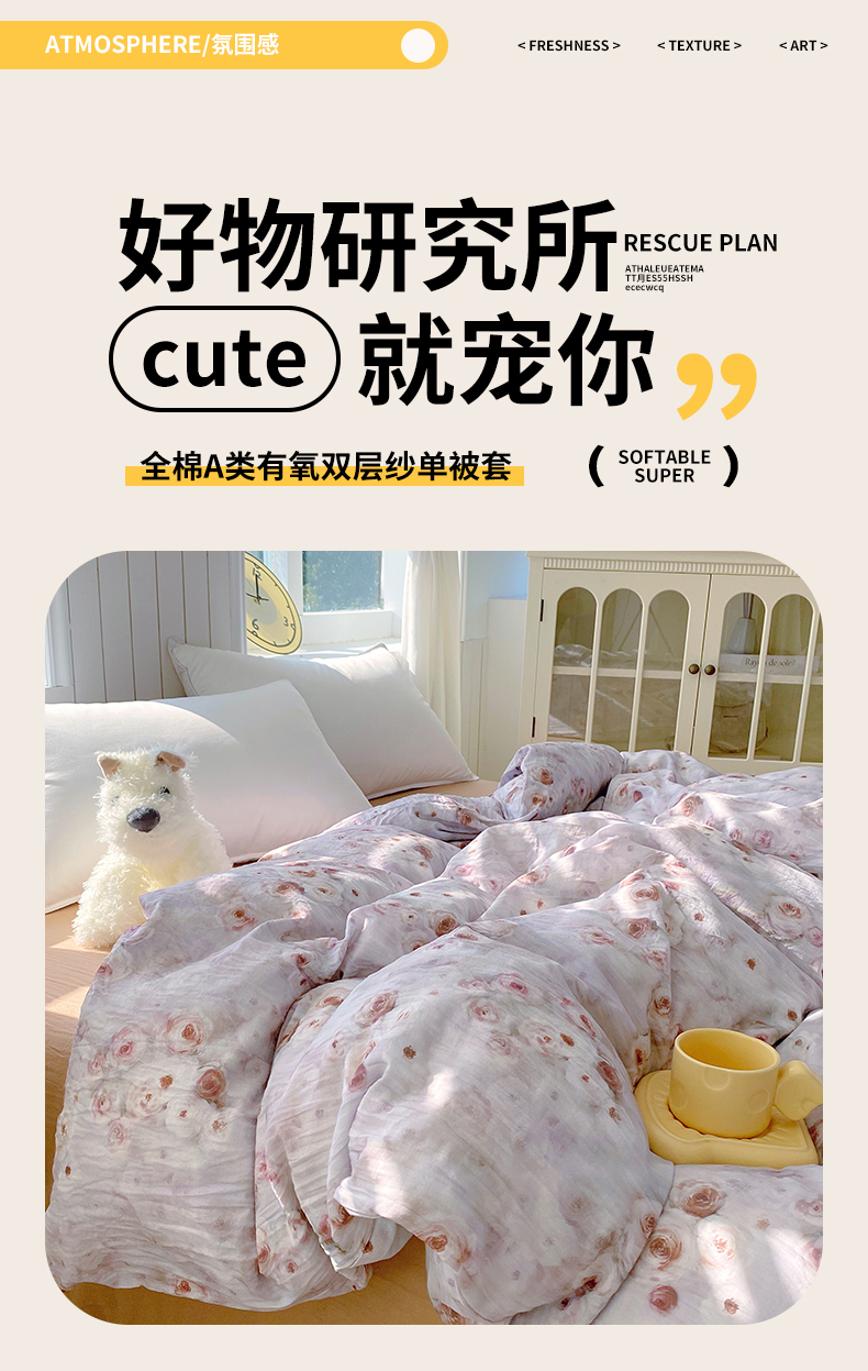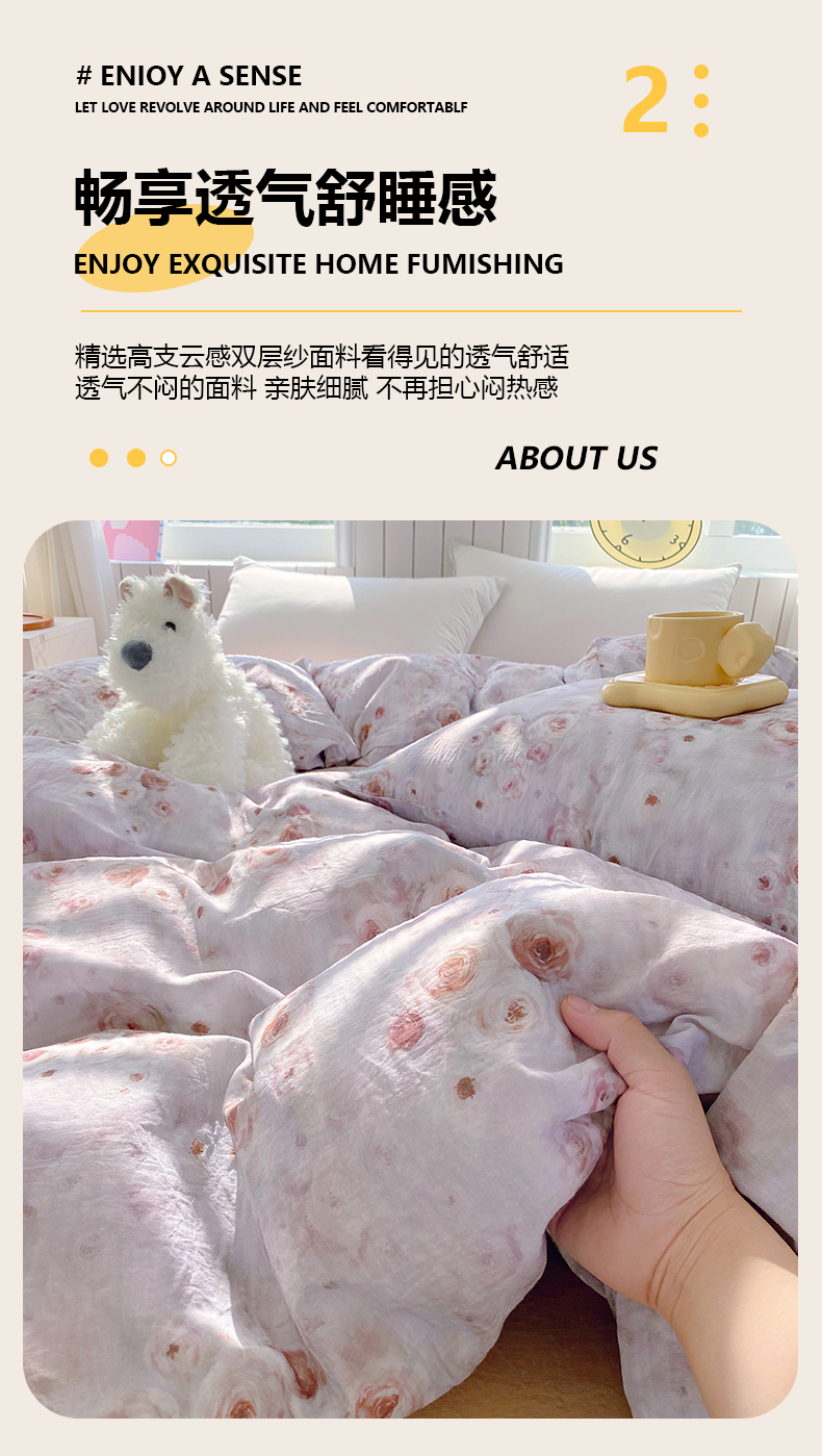 (总)春皖家纺 2026新款A类全棉有氧双层纱印花四件套单品系列-四件套,桂语兰庭,花织,雾染玫瑰,晴丝一缕,暮春,旧梦朝花,青茵,花町,雾色里德,雾棕
