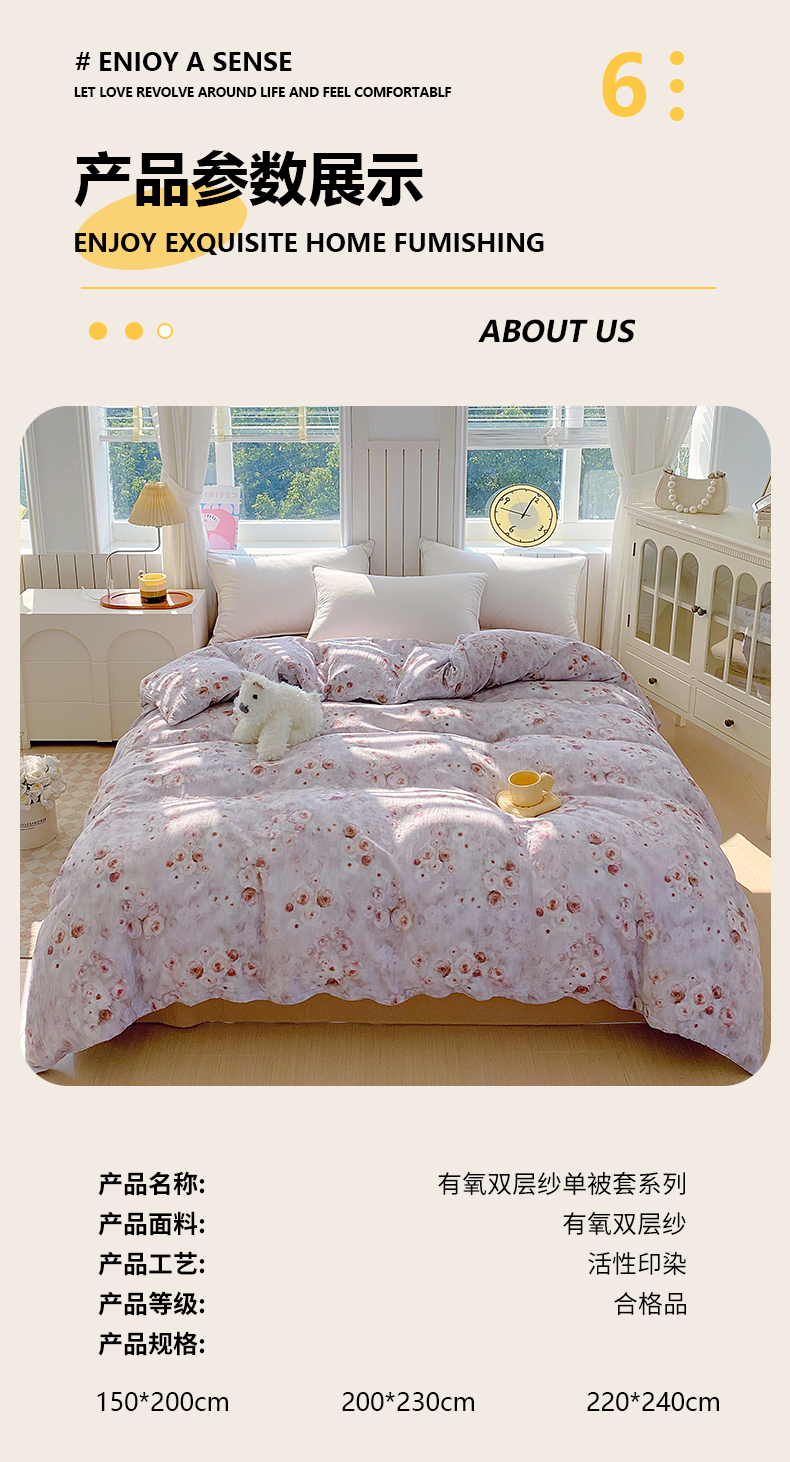 (总)春皖家纺 2026新款A类全棉有氧双层纱印花四件套单品系列-单被套,桂语兰庭,旧梦朝花,雾染玫瑰,晴丝一缕,暮春,青茵,花织,花町,雾色里德,雾棕