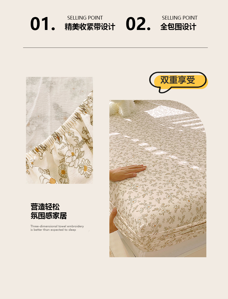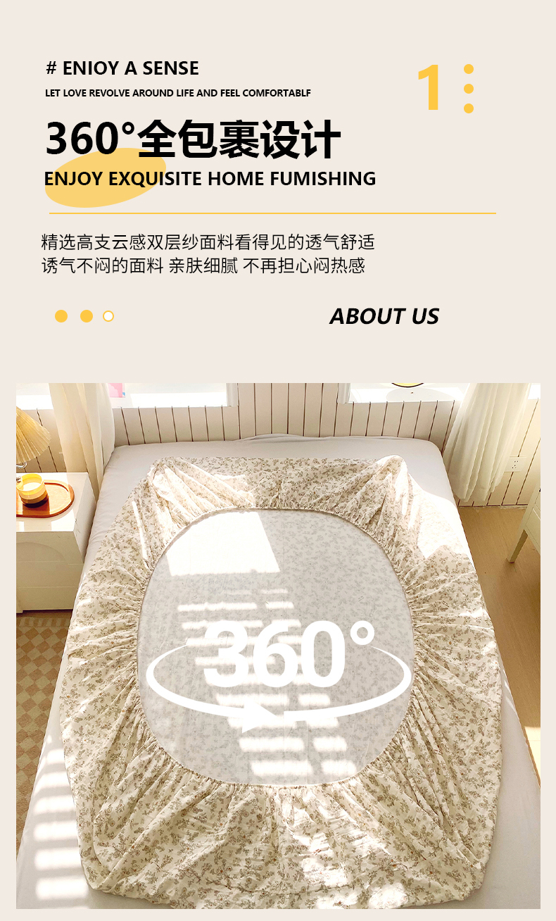 春皖家纺 2026新款A类全棉有氧双层纱印花四件套单品系列-单床笠 花织
