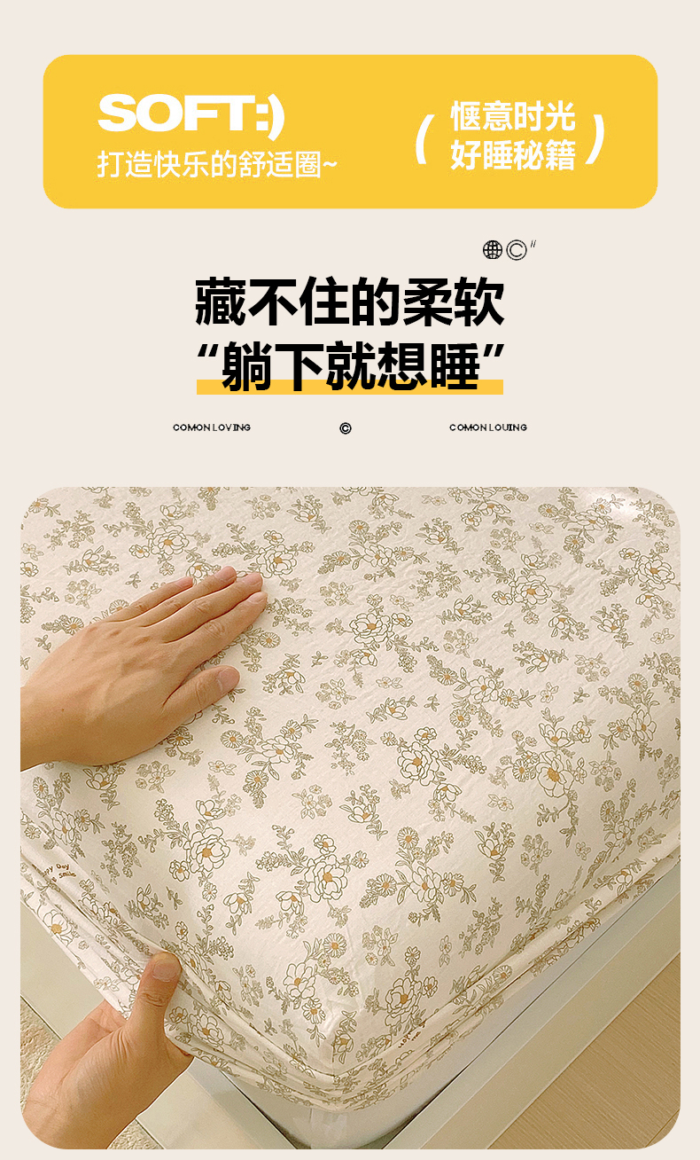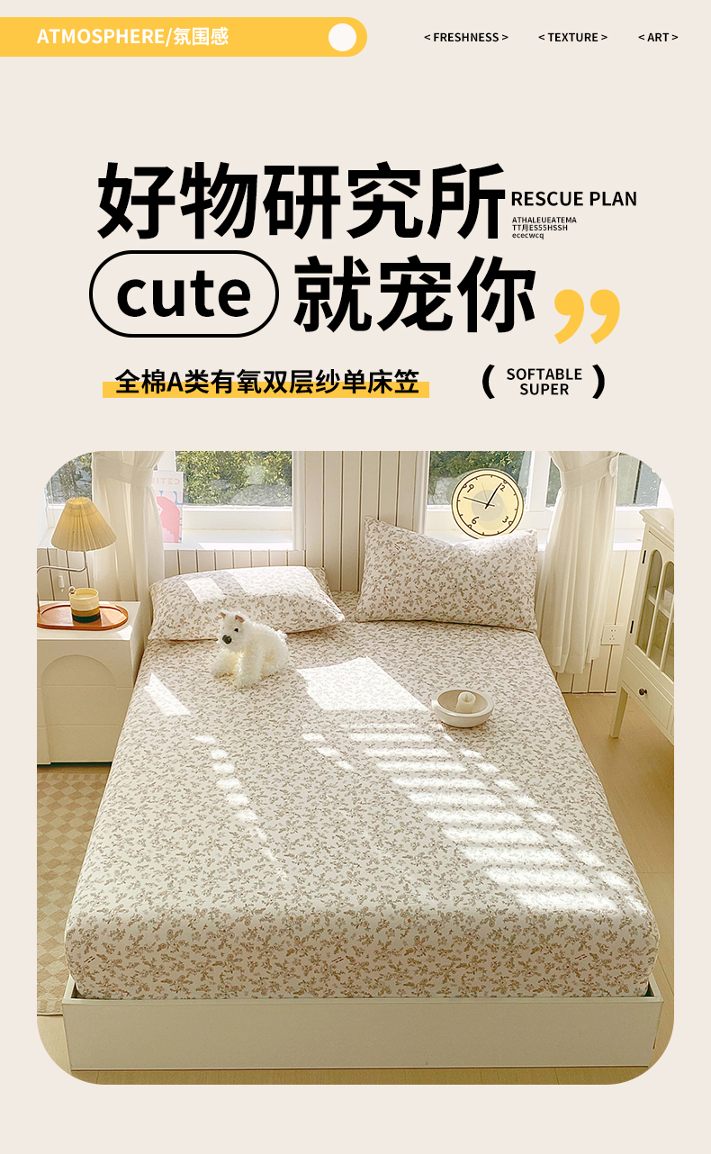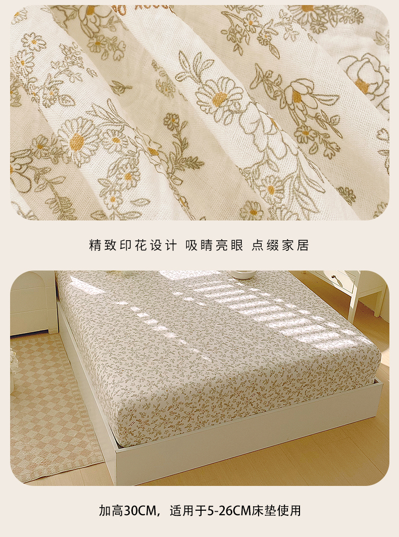 商品名称:春皖家纺 2026新款A类全棉有氧双层纱印花四件套单品系列-单床笠 花织
