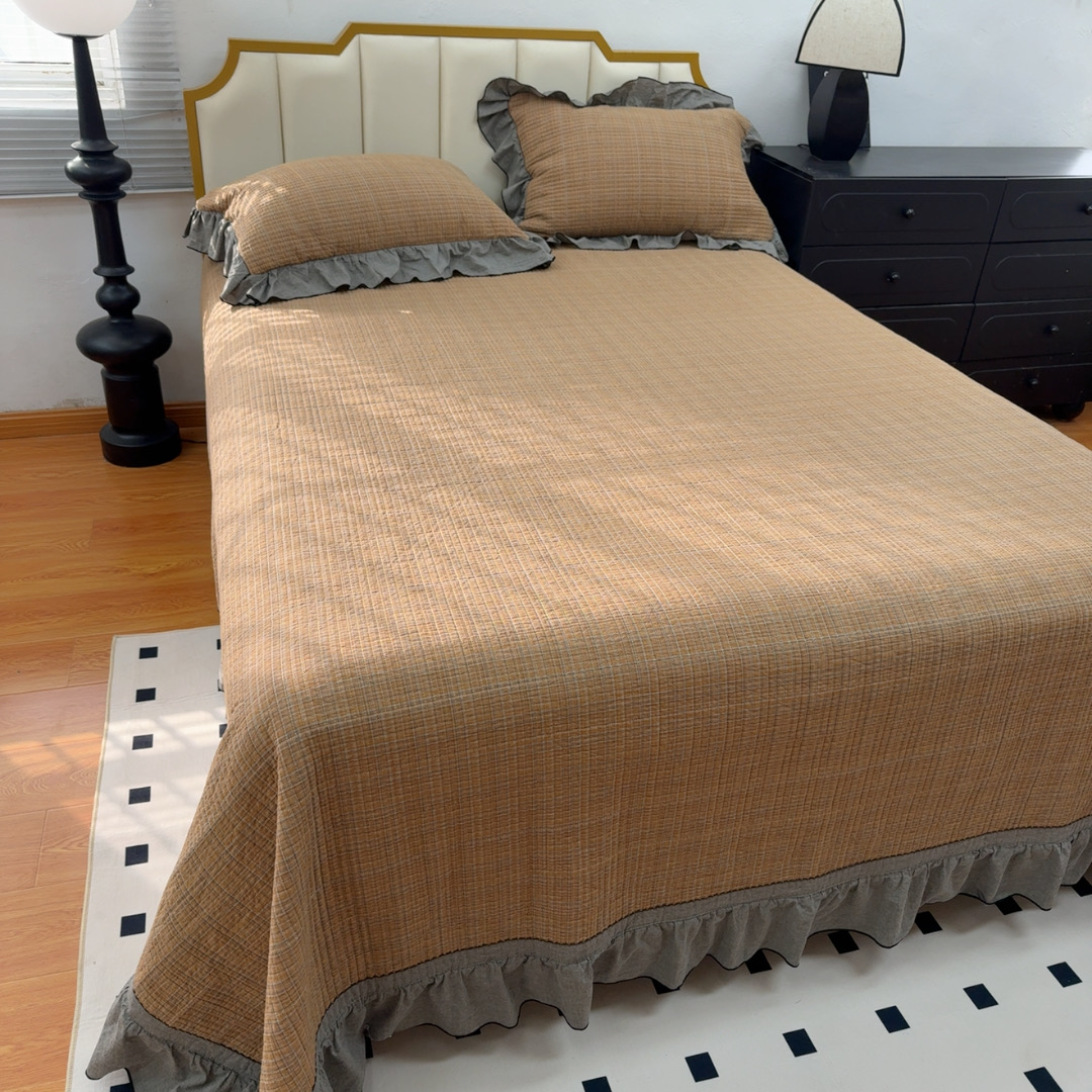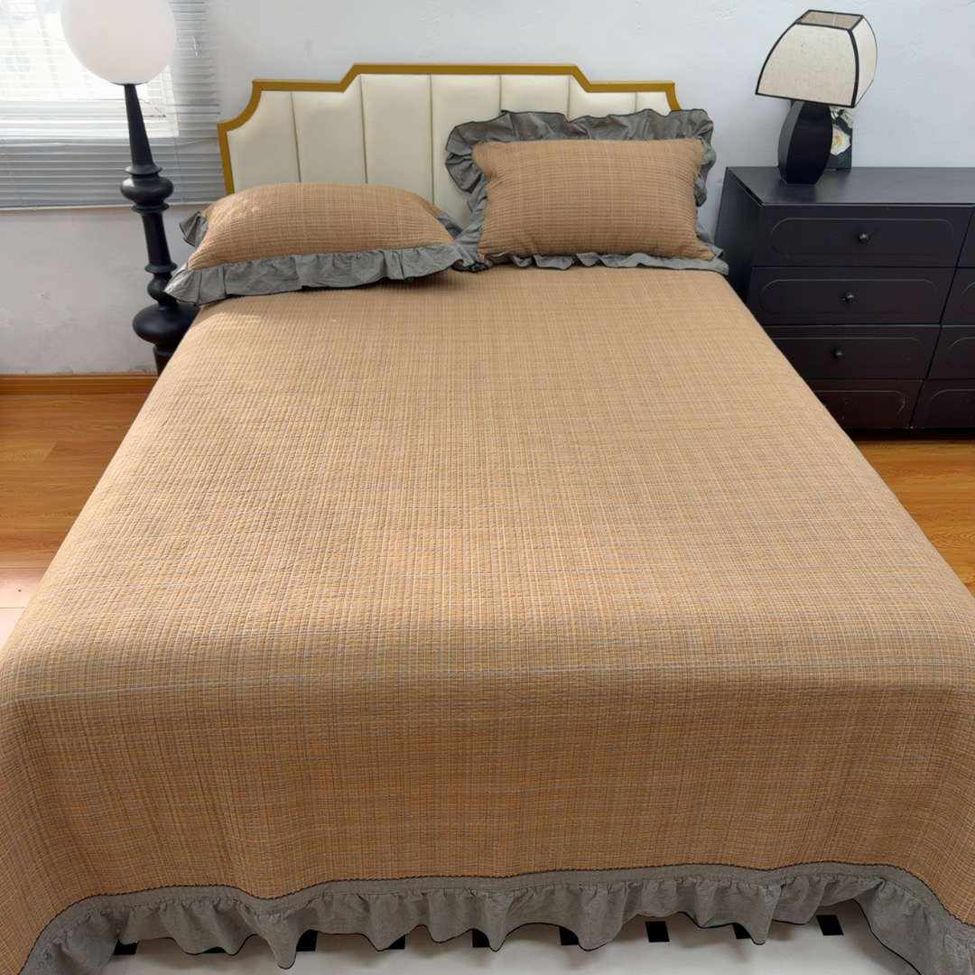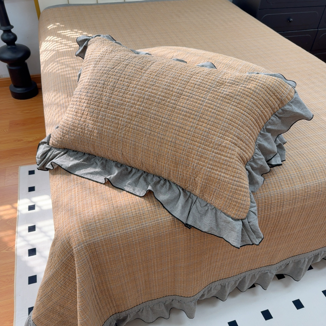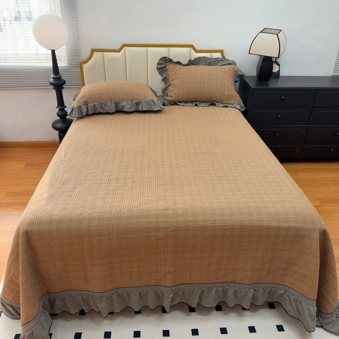暖居 2026年新款全棉色织水洗棉高温砂洗床盖三件套四件套橘黄