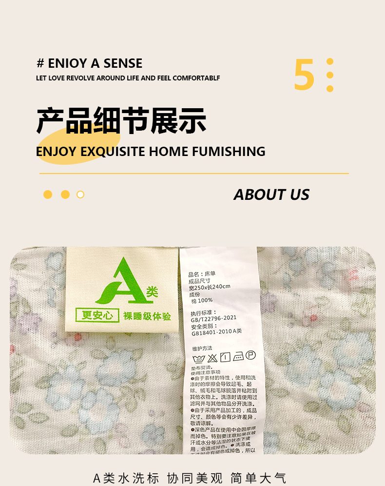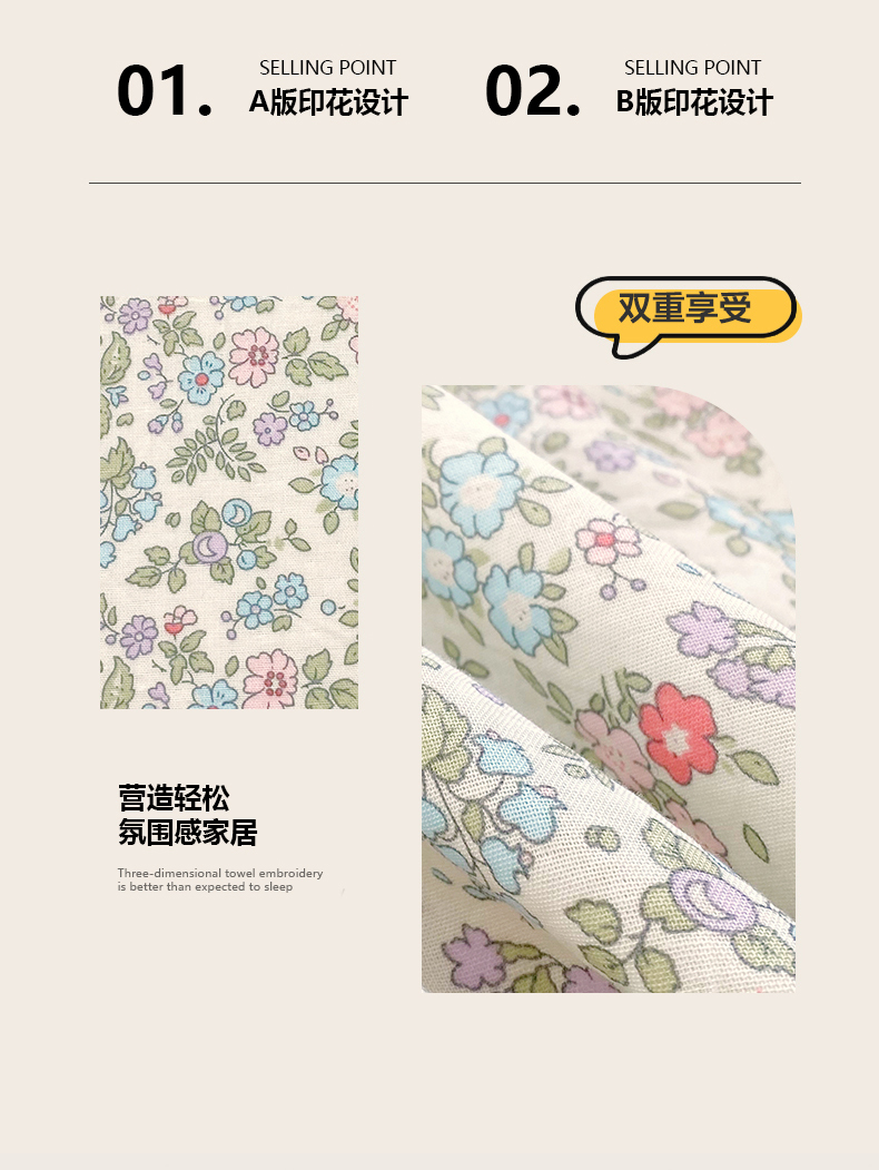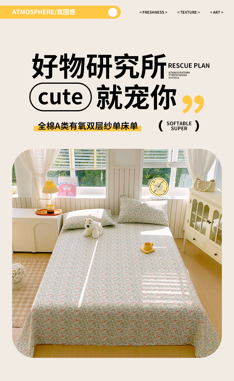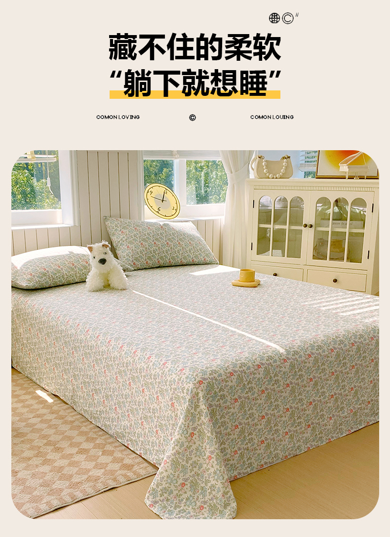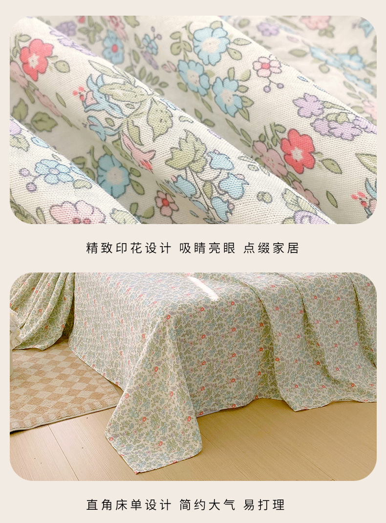 商品名称:春皖家纺 2026新款A类全棉有氧双层纱印花四件套单品系列-单床单 花町