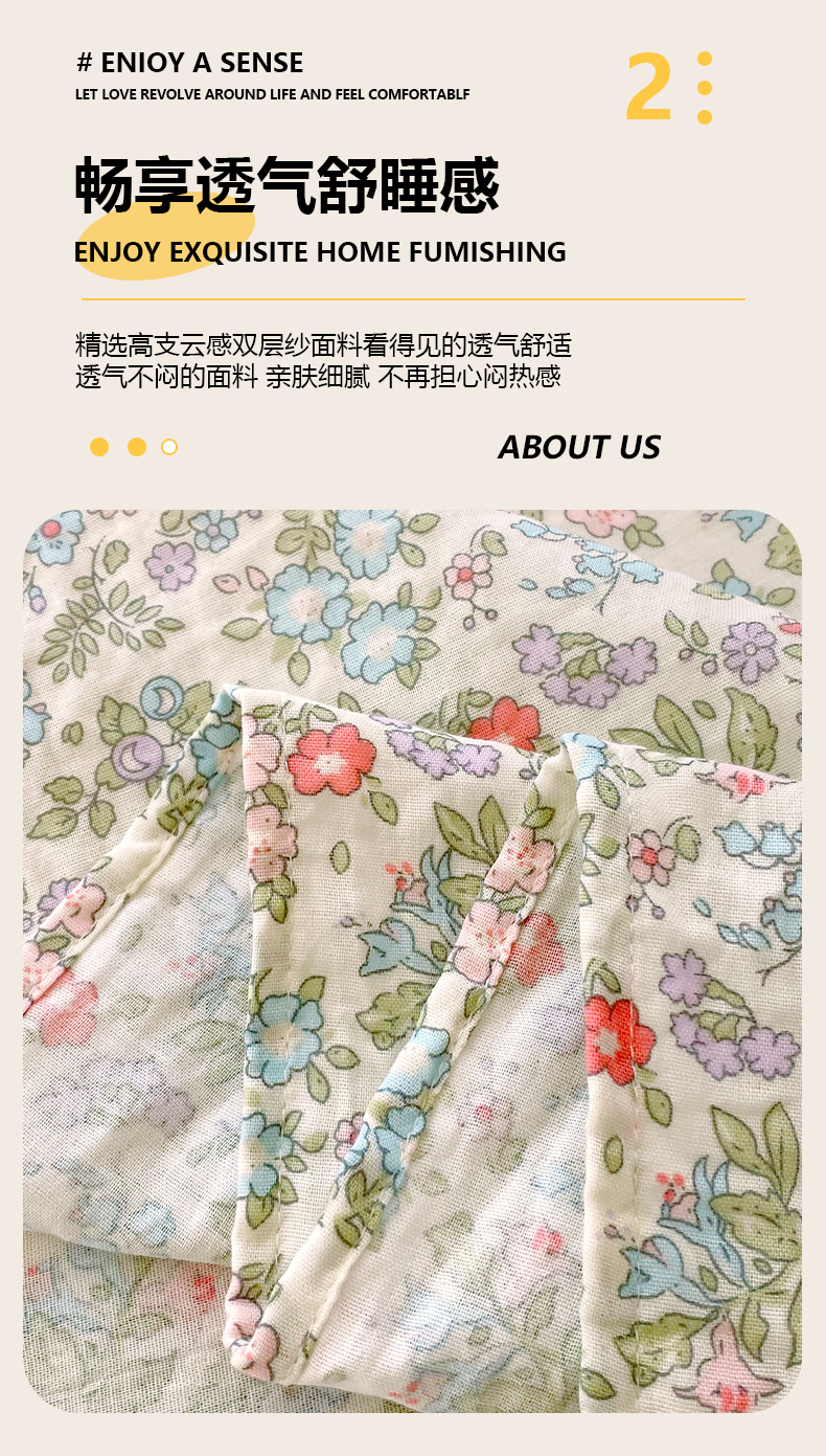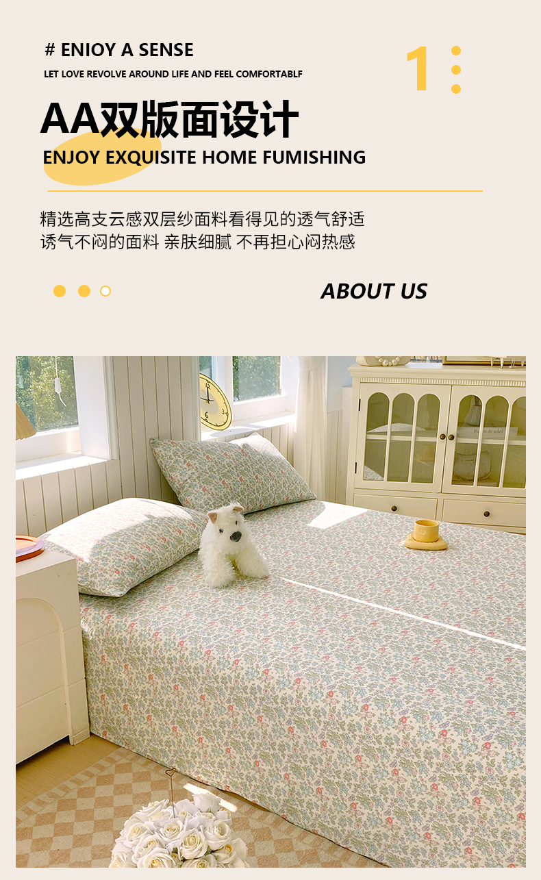 春皖家纺 2026新款A类全棉有氧双层纱印花四件套单品系列-单床单 花町