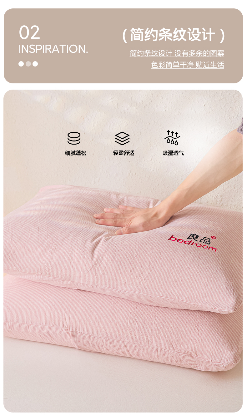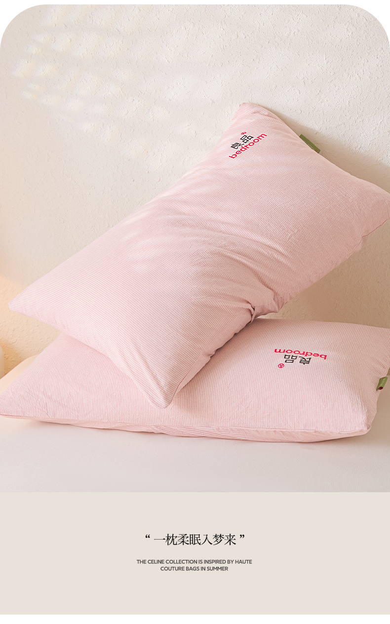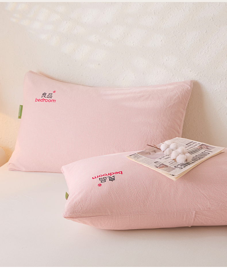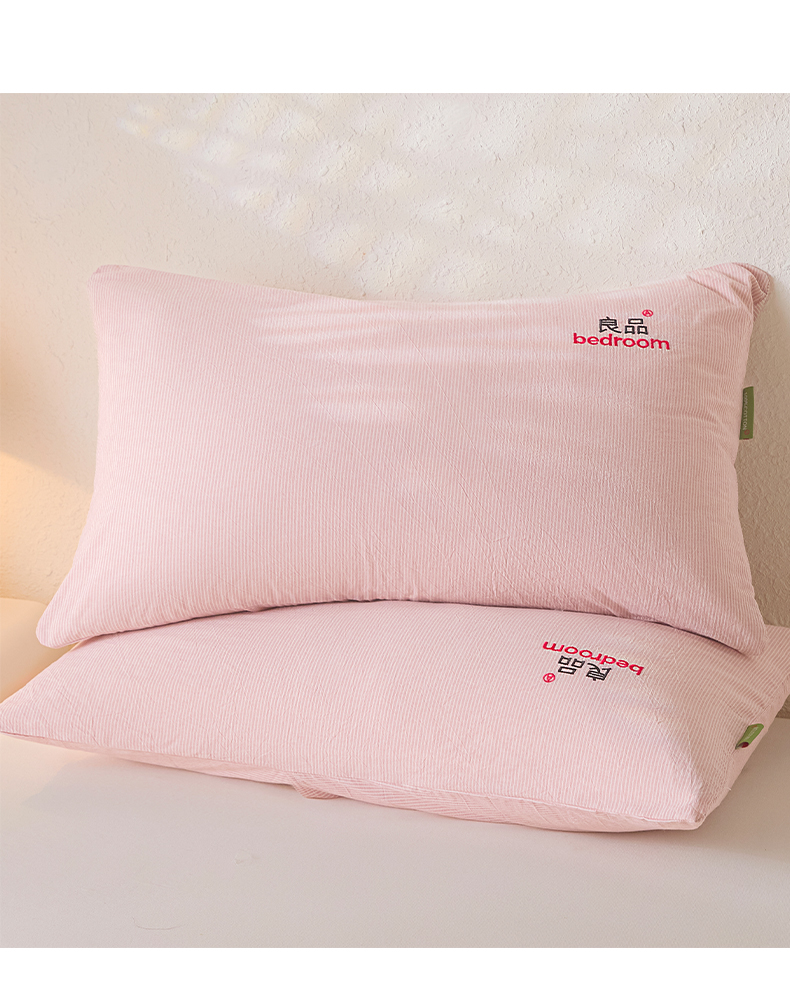 芬晴家纺 2026新款条纹纯色良品刺绣枕套 条纹-豆沙
