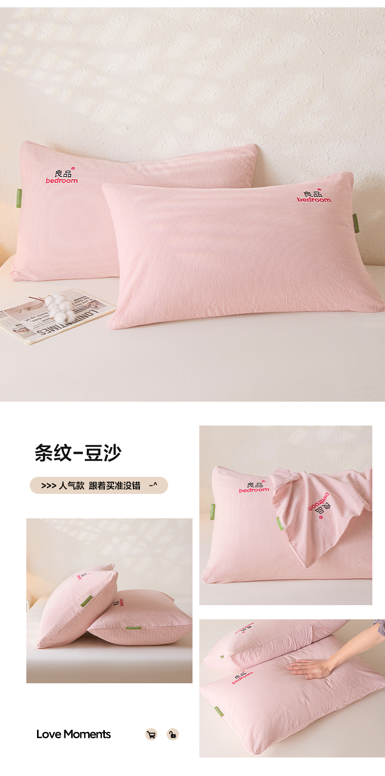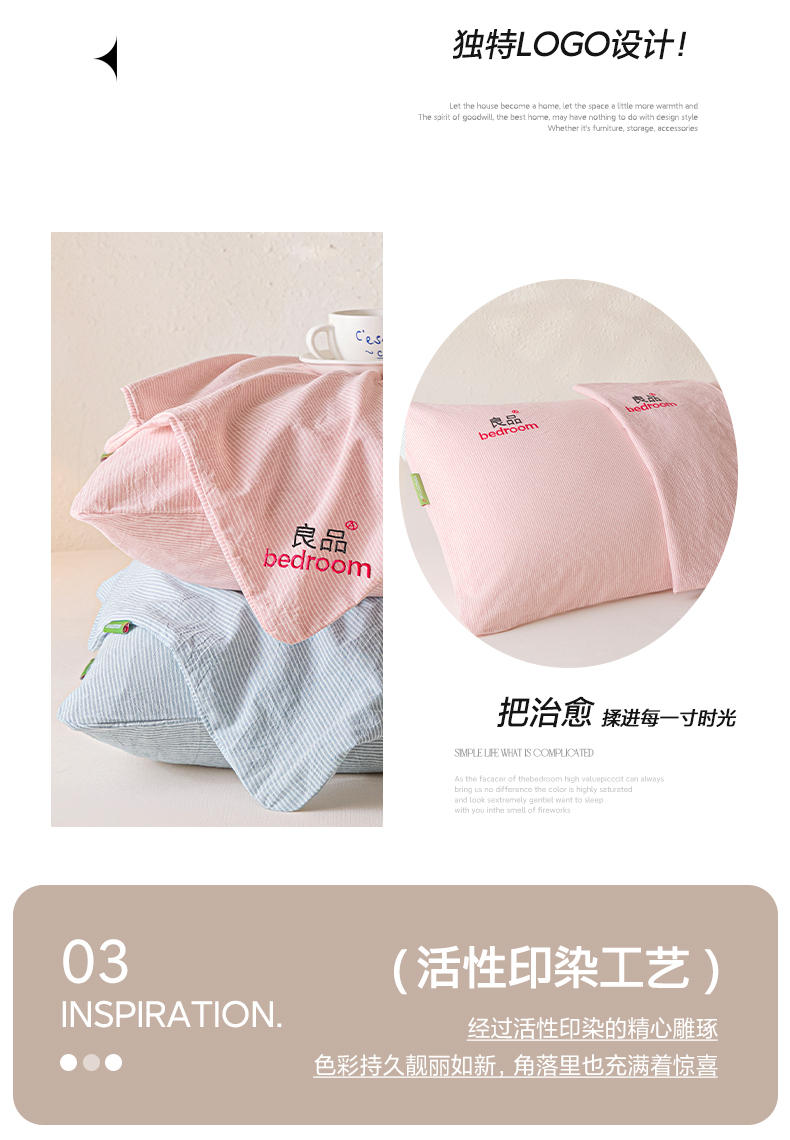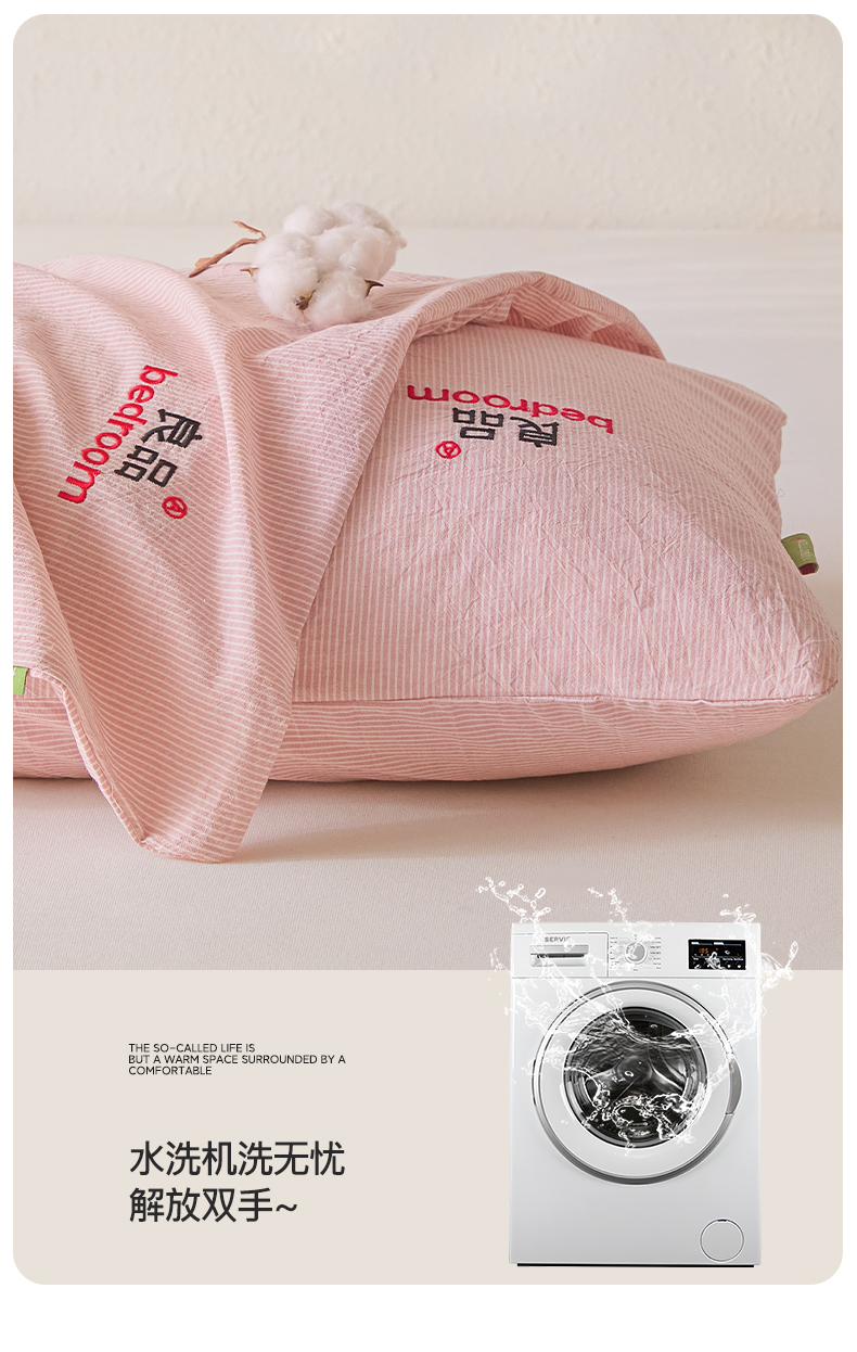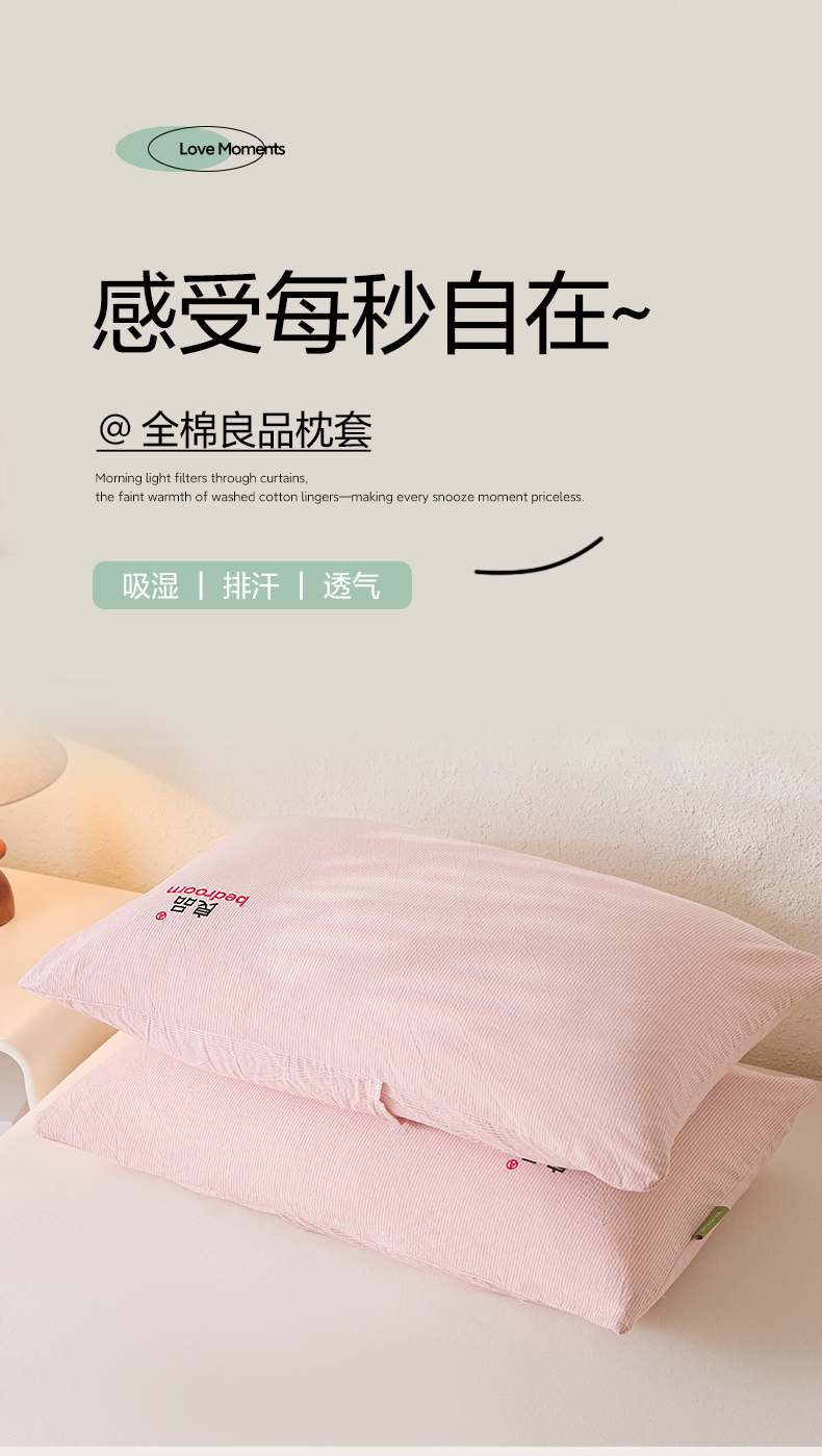 芬晴家纺 2026新款条纹纯色良品刺绣枕套 条纹-豆沙