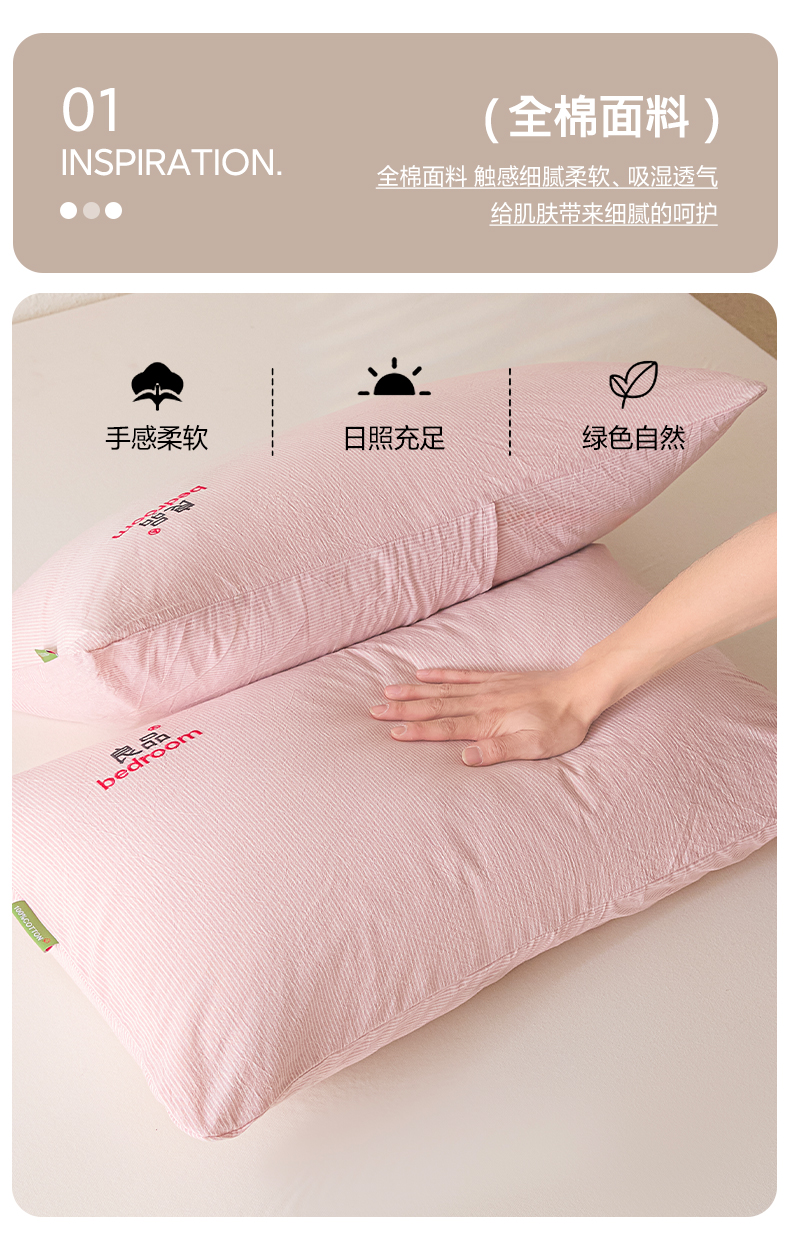 商品名称:芬晴家纺 2026新款条纹纯色良品刺绣枕套 条纹-豆沙