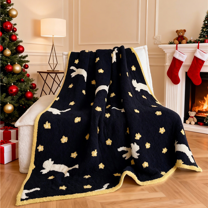 (总)琪格格纺织 2026新款原创加厚半边绒毛毯系列,金蕊 白猫,条纹猫探,小狗日记-红,雪花-白,雪花-红