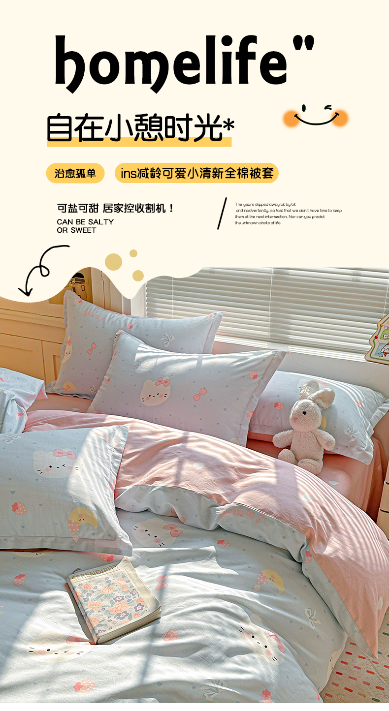 当前位置: 91家纺网 > 商品网购 > 床上用品 > 被套 > 春雨家居 2026新款全棉印花ins减龄可爱小清新单被套 奶油凯蒂-兰