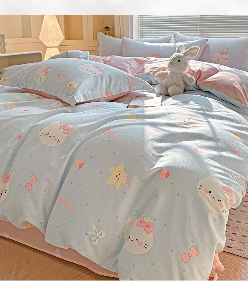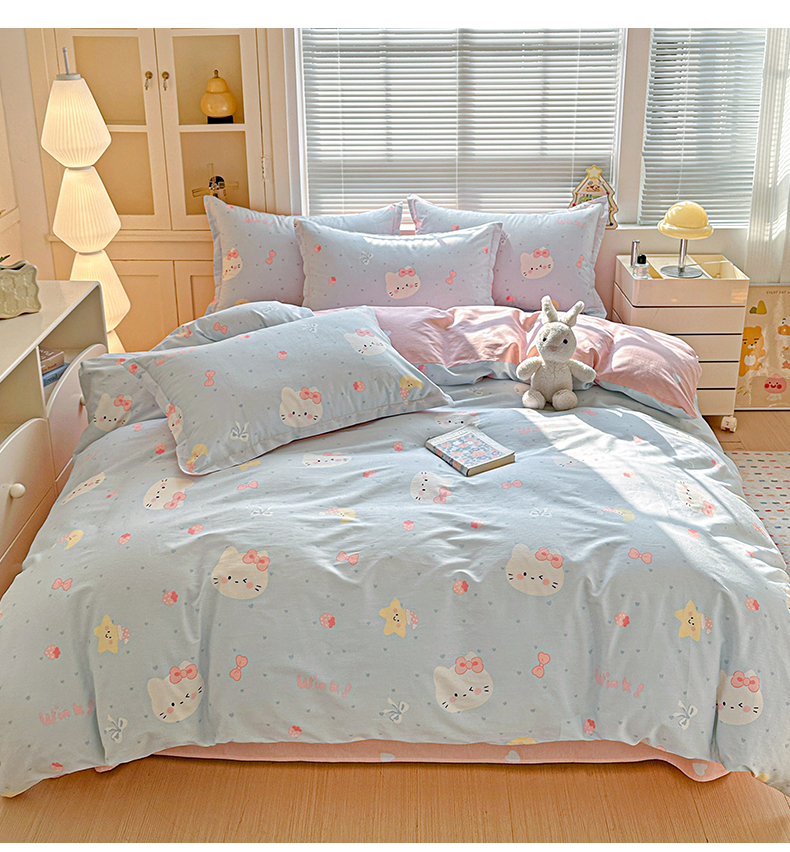 • 91家纺网 家纺一手货源 找家纺 春雨家居 2026新款全棉印花ins减龄可爱小清新单被套 奶油凯蒂-兰