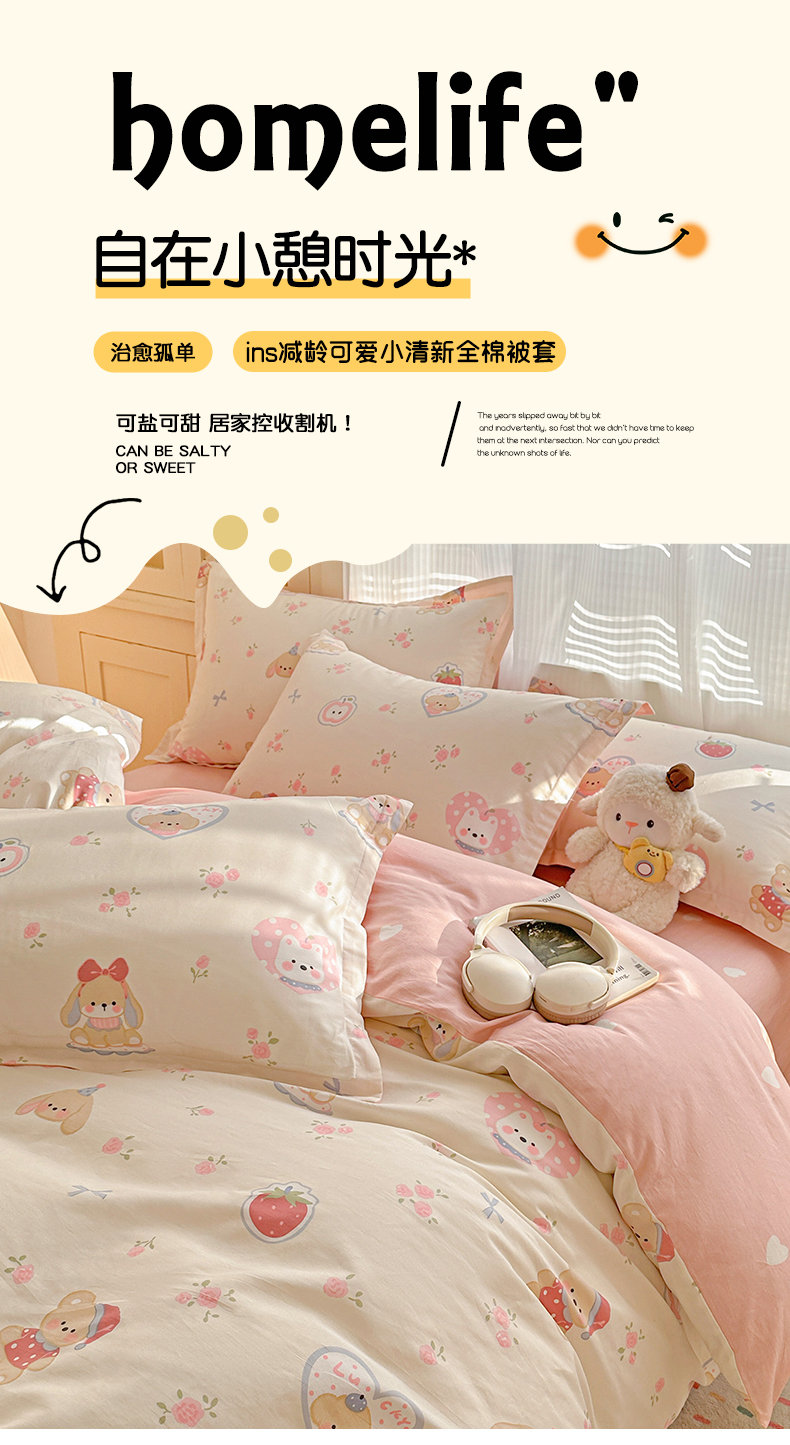 当前位置: 91家纺网 > 商品网购 > 床上用品 > 被套 > 春雨家居 2026新款全棉印花ins减龄可爱小清新单被套 心动庄园