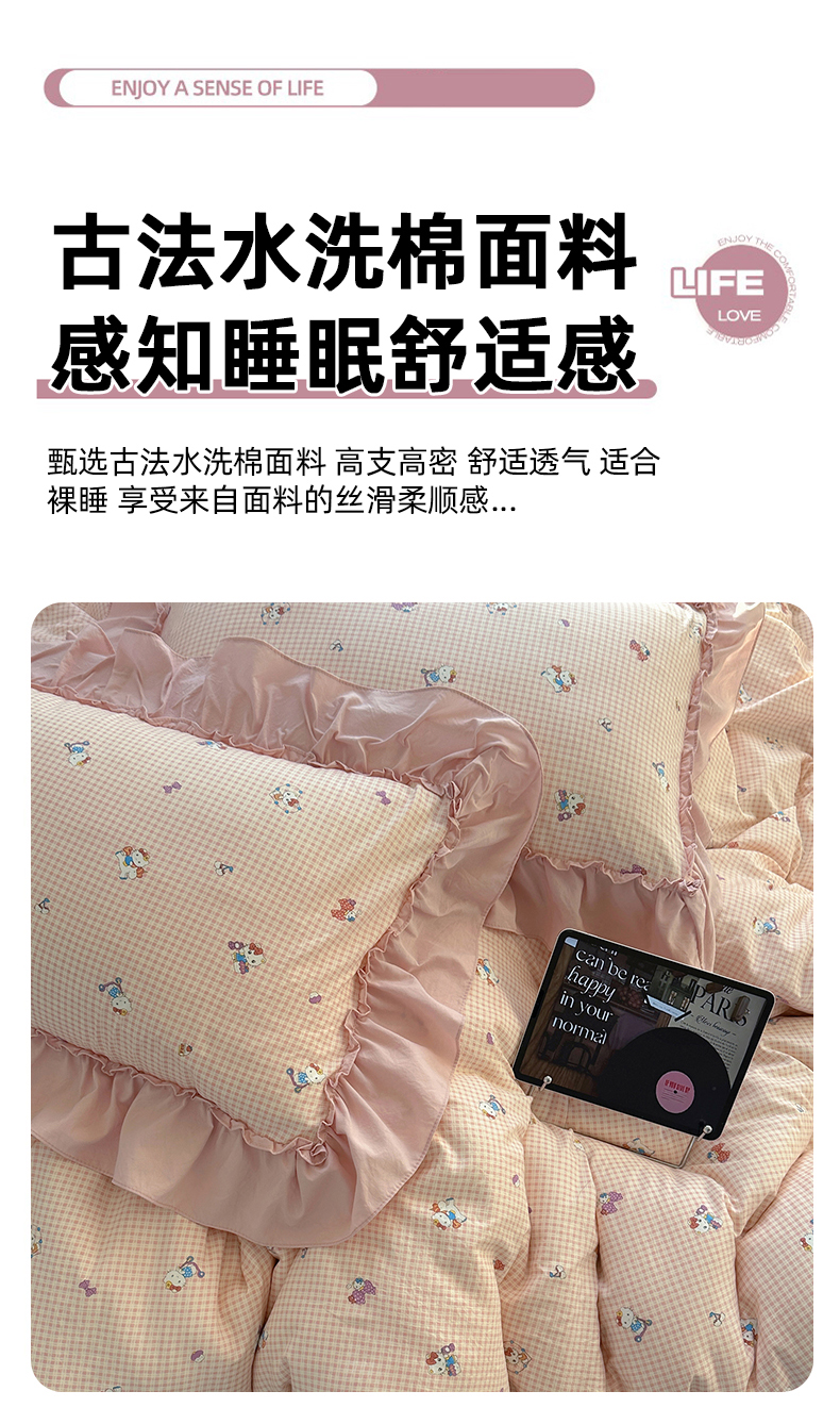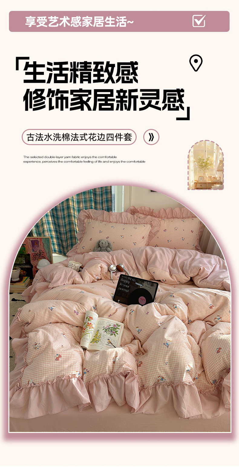 当前位置: 91家纺网 > 商品网购 > 床品套件 > 四件套 > 水洗棉四件套 > 凯洛奇 2026新款A类仿棉四件套古法水洗棉法式工艺花边套件(提供买家秀) 萌萌小猫