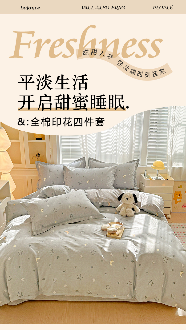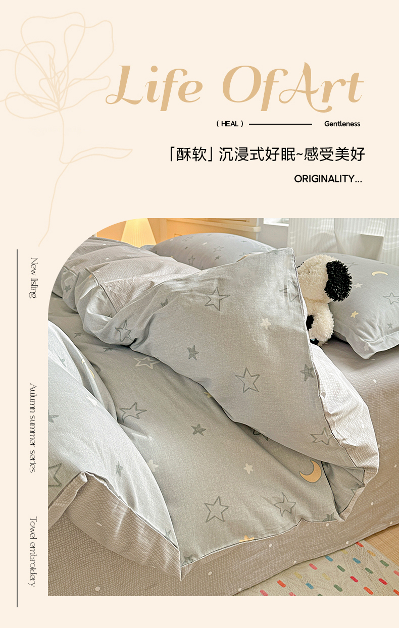当前位置: 91家纺网 > 商品网购 > 床品套件 > 四件套 > 全棉普通四件套 > 春雨家居 2026新款全棉纯棉花ins减龄可爱小清新四件套 暮洛星