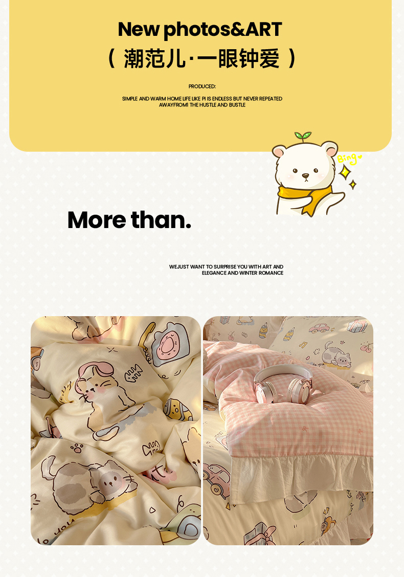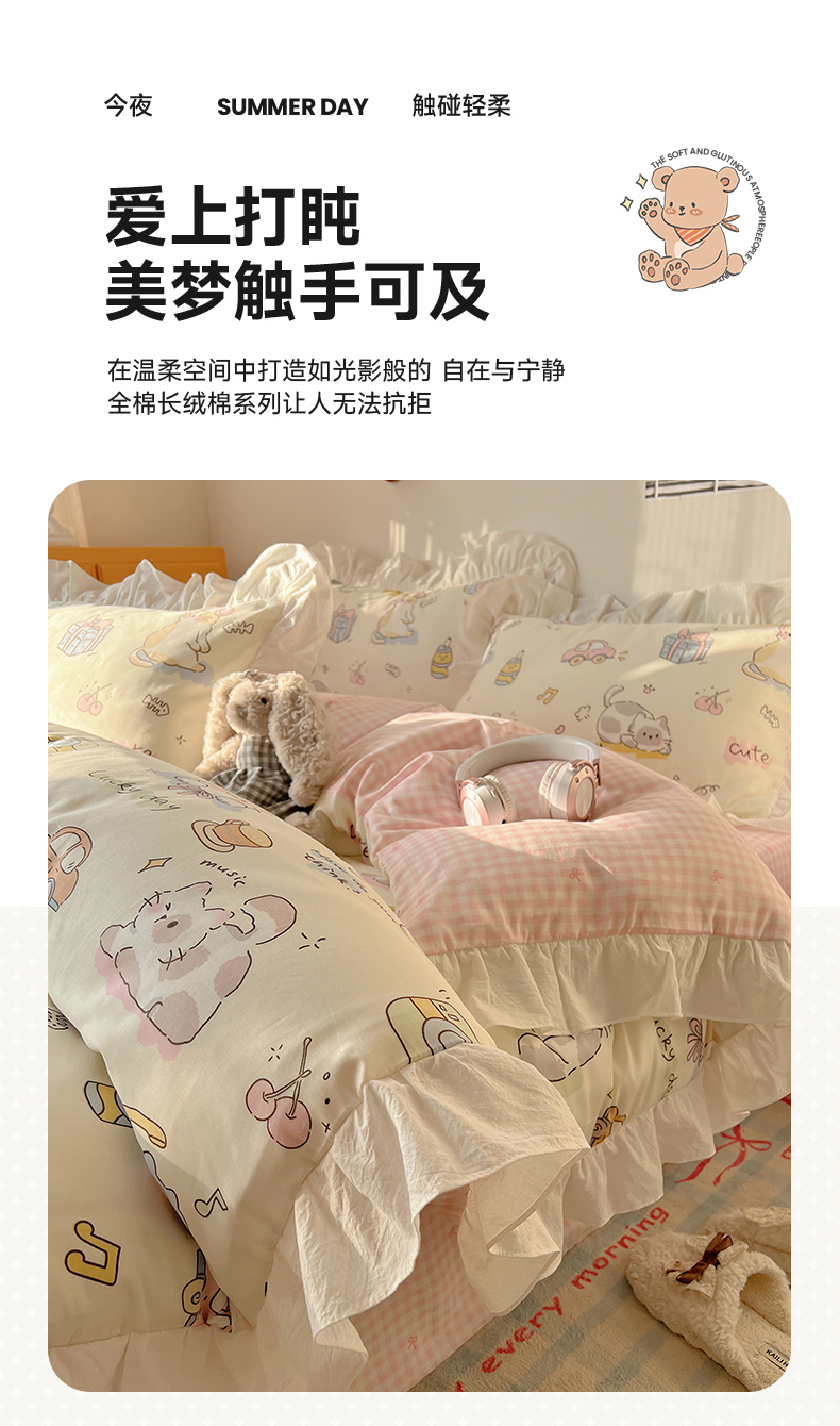 (总)六巷胡同 2025新款INS卡通童趣混搭风全棉四件套第二系,混搭-蛋糕围兜熊,混搭-奶油酣睡熊,混搭-奈斯羞羞狗,混搭-小蓝格甜点,混搭-雪糕哈皮熊,混搭-月亮睡睡熊