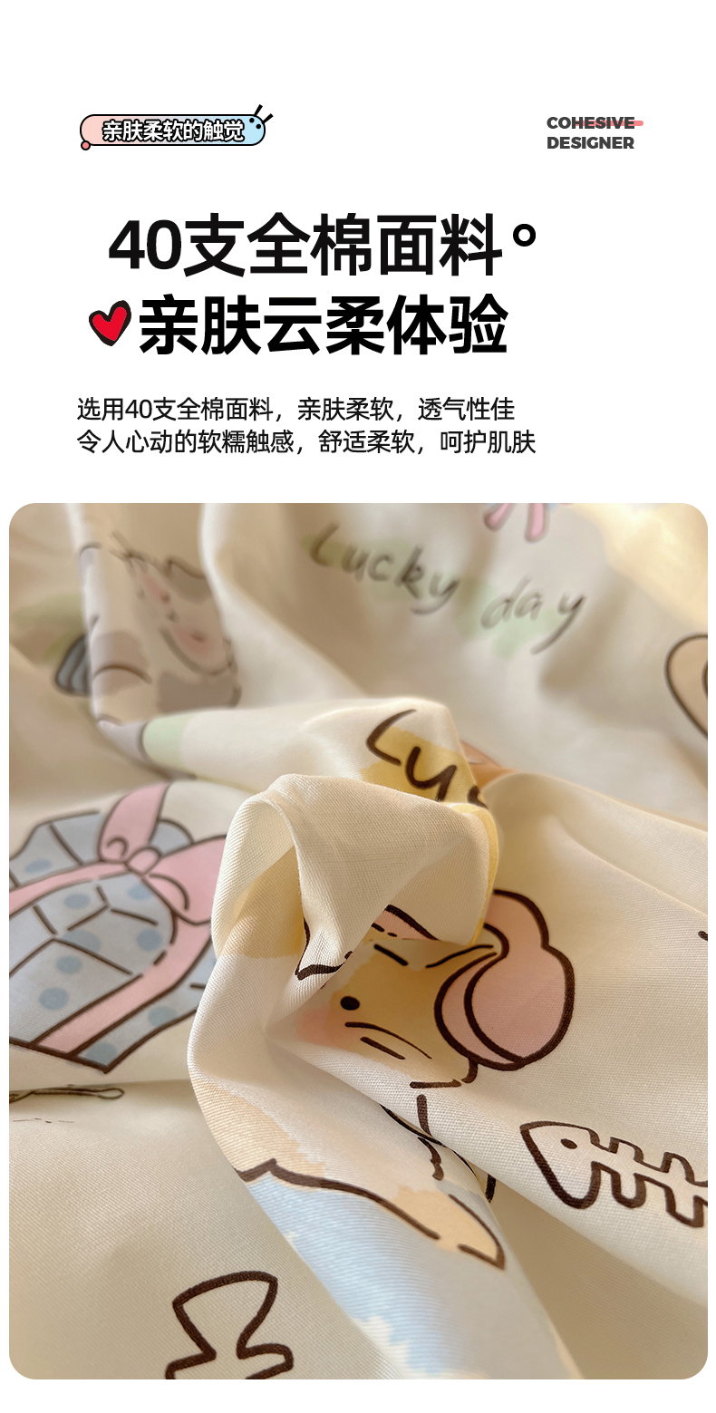 (总)六巷胡同 2025新款INS童趣可爱风卡通全棉四件套-第四系,彩虹甜筒猫,草莓害羞喵,粉格元气猫,咖格樱桃狗,蓝格嗨皮狗,圣诞麋鹿狗,仙人掌粉象,熊熊猫咪崽