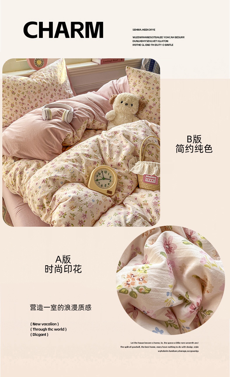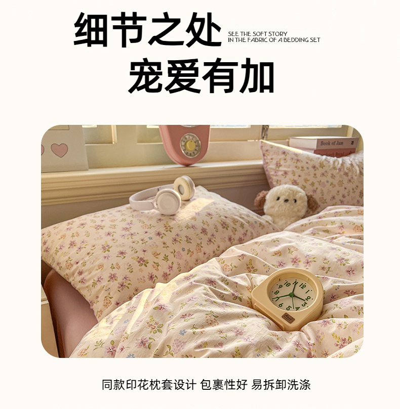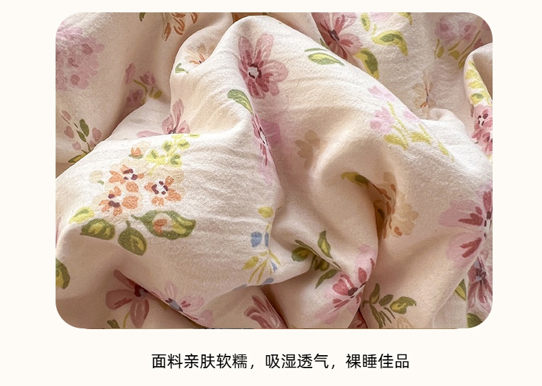 当前位置: 91家纺网 > 商品网购 > 床品套件 > 四件套 > 水洗棉四件套 > 思诺羽床笠 2026新款古法水洗仿棉云感棉三件套四件套 花意飘香