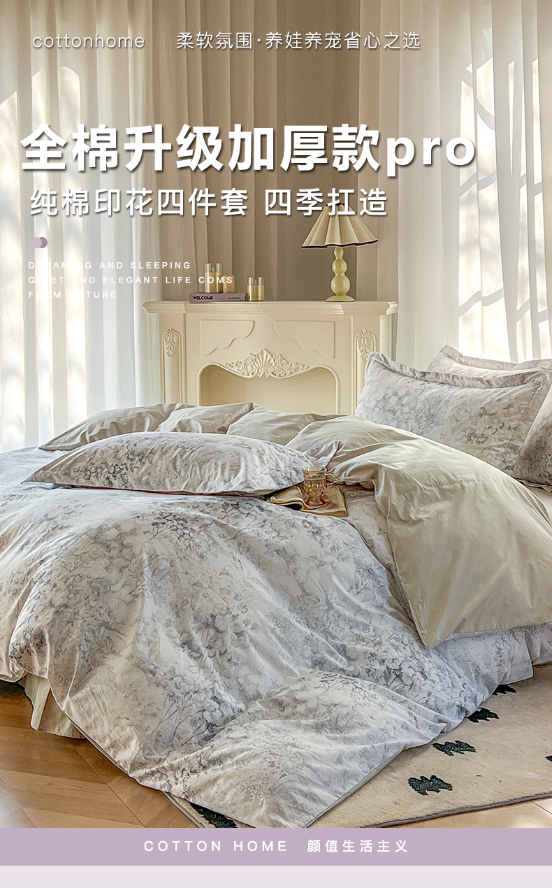 (总)卧趣家纺 2026新款纯棉花卉系列全棉印花四件套,风铃-紫,花悦容,佳昕-黄,嘉卉-紫,沐霖-桔,清珞-灰,清悠-粉,宛春-兰,晚柠-绿,晚柠-紫,秀颜-兰