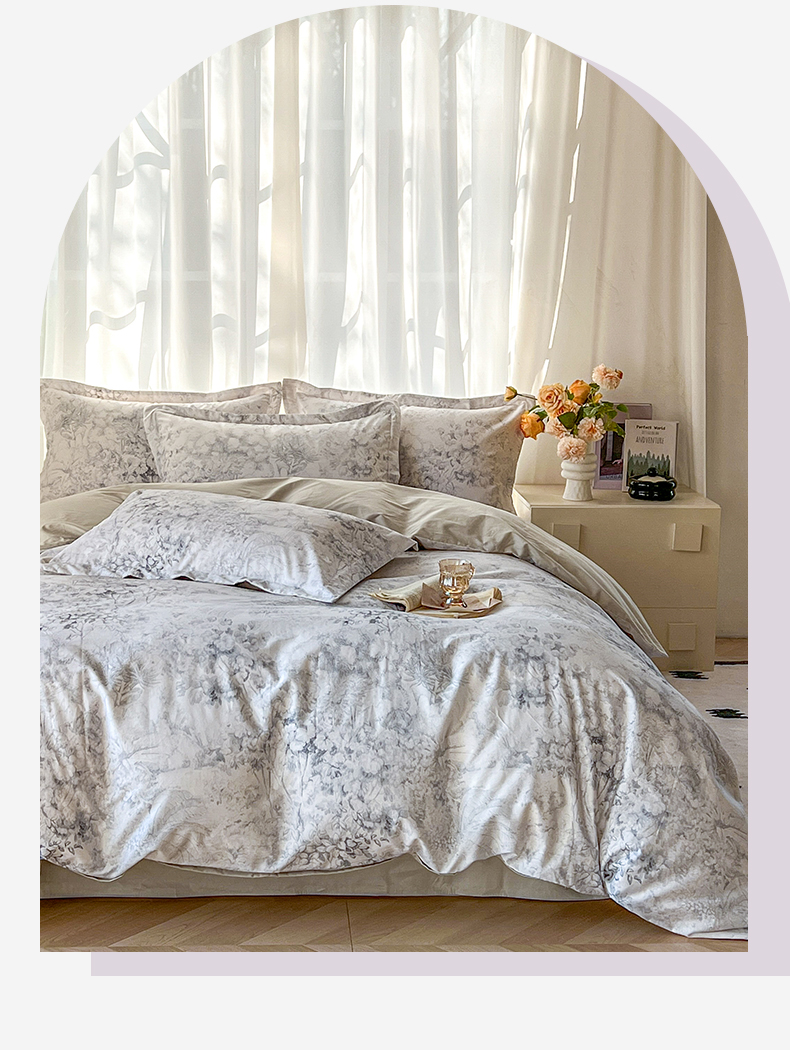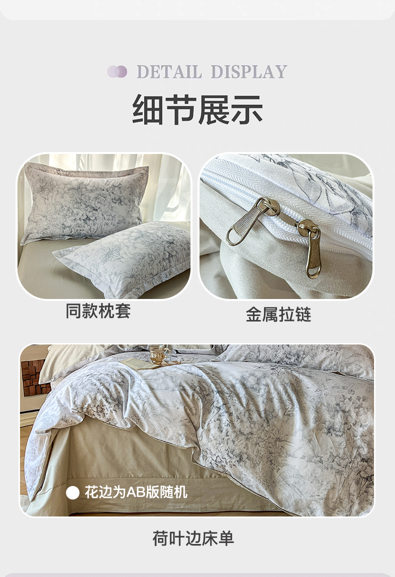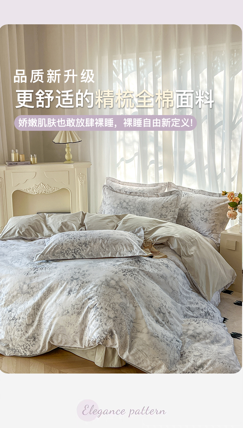 卧趣家纺 2026新款纯棉花卉系列全棉印花四件套 清珞-灰