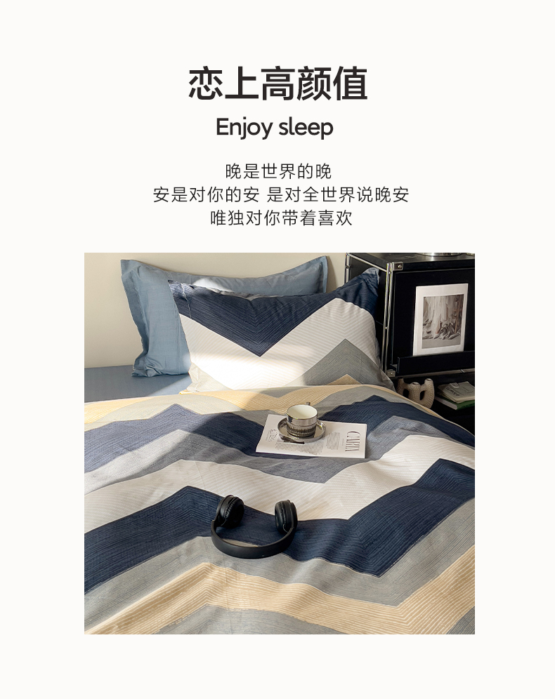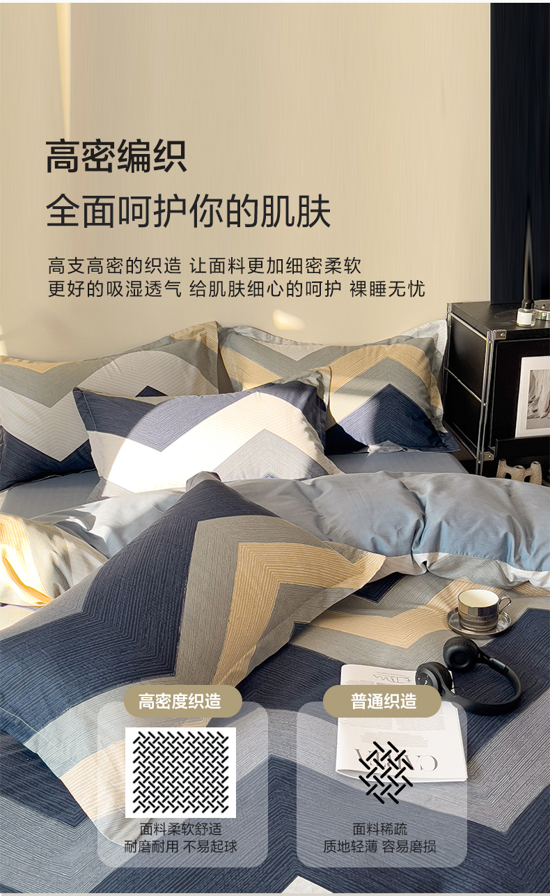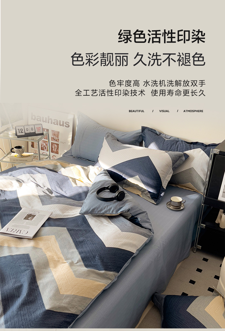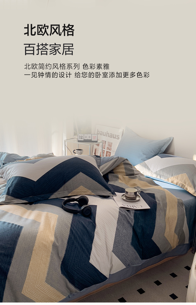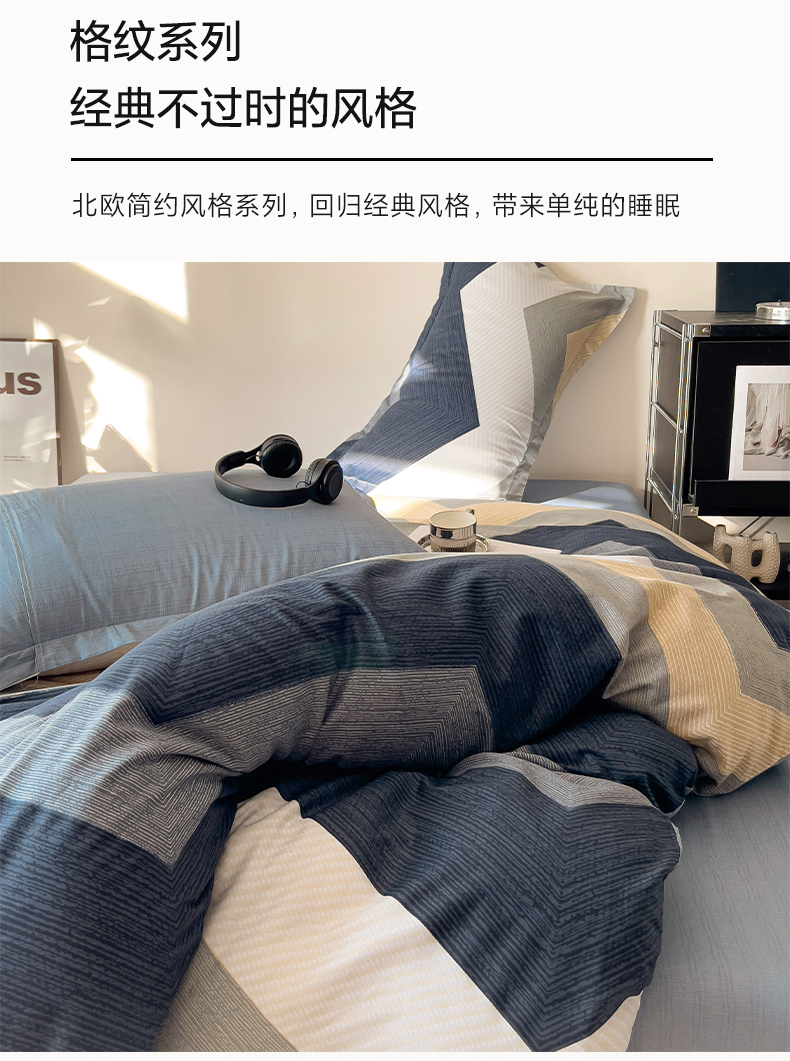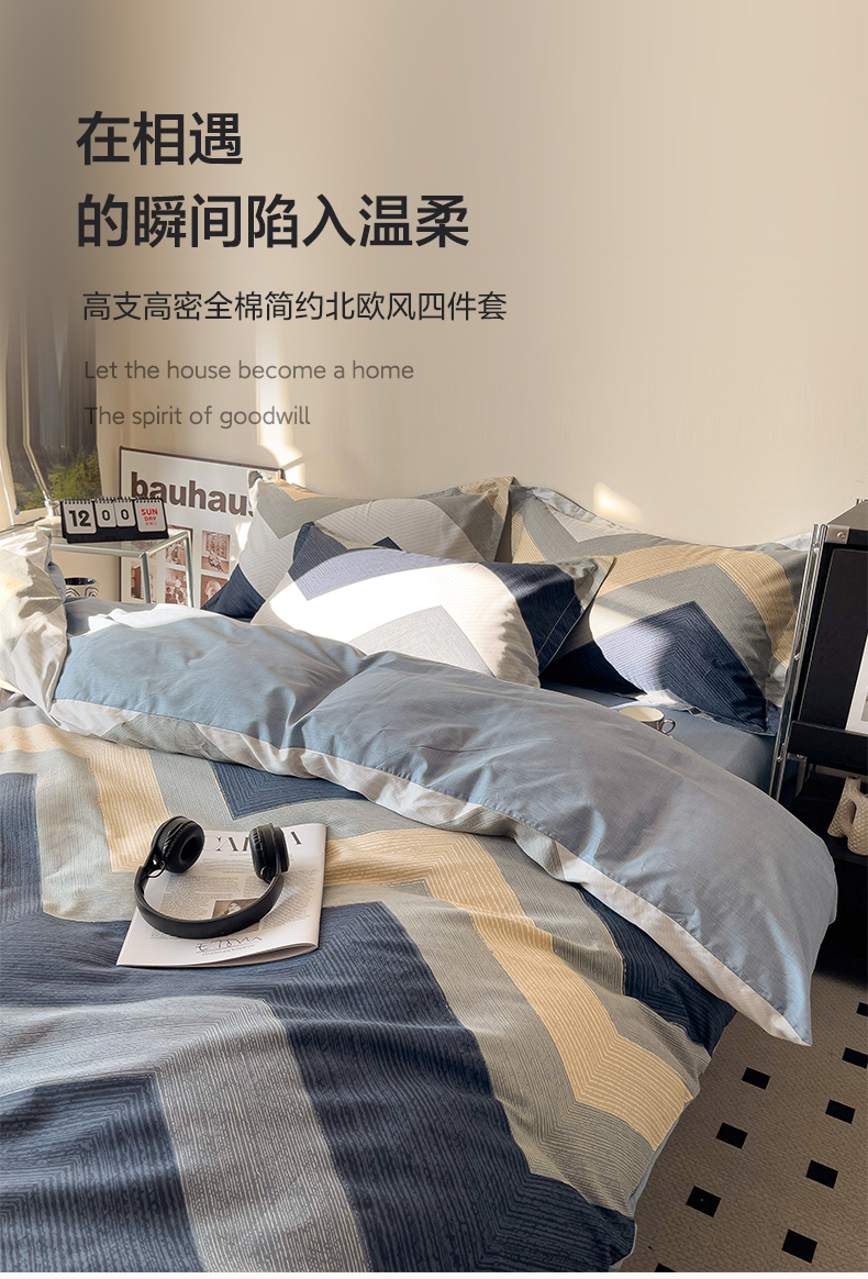 商品名称:盛馨家纺 2026新款全棉高支高密精梳棉北欧绅士风四件套纯棉床笠学生三件套 艾伦