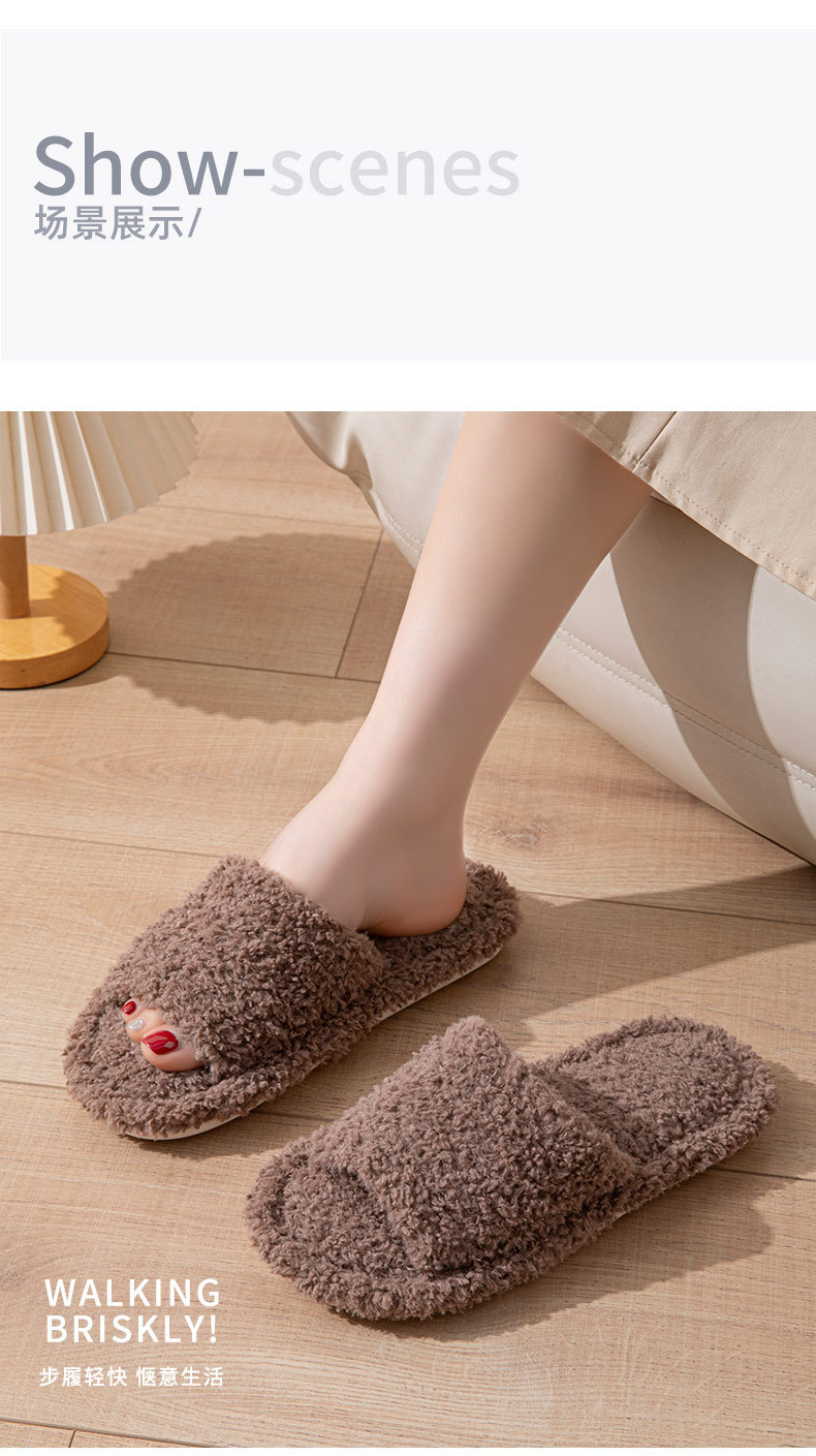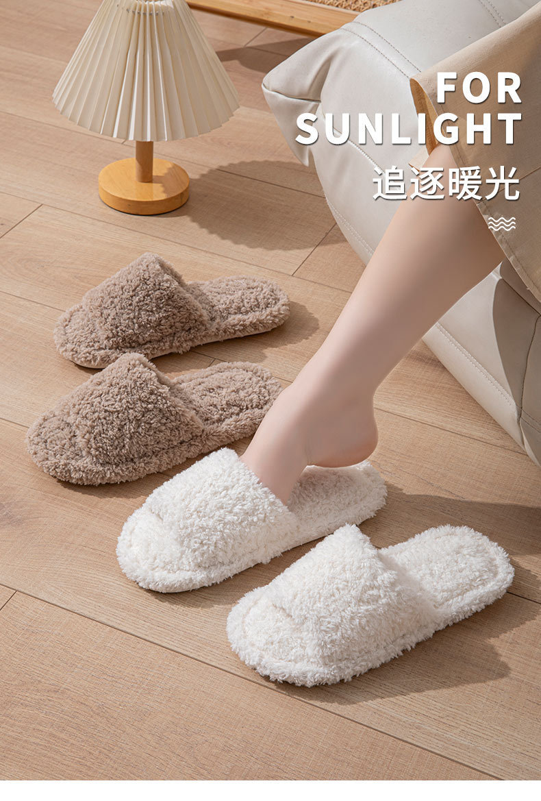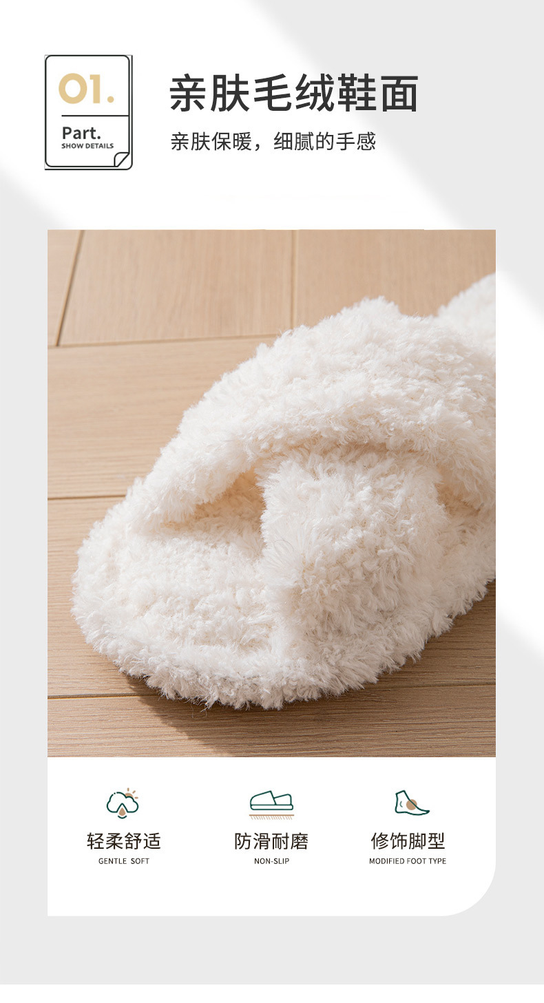 商品名称:良品汇馆 2026【泰迪绒拖鞋】毛绒家居地板拖鞋防水秋冬保暖静音泰迪绒拖鞋情侣 交叉款-深咖
