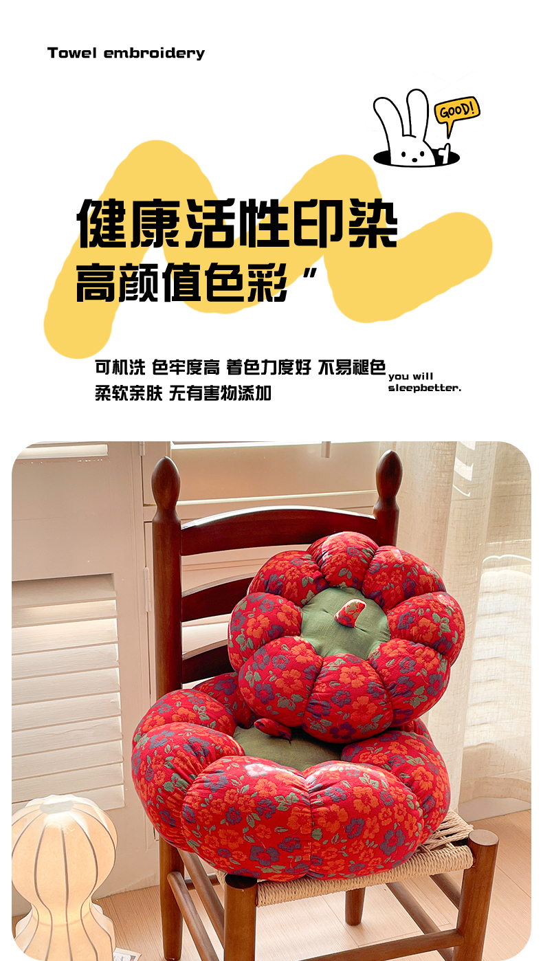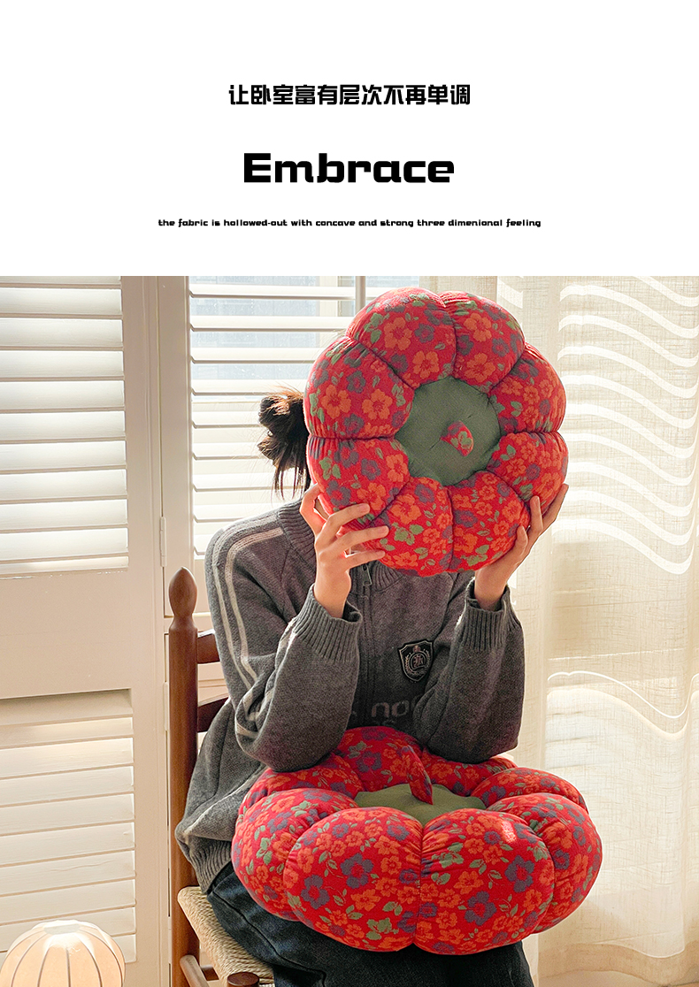 (总)亦帆枕芯 2026新款全棉多层纱南瓜坐垫抱枕榻榻米坐垫超柔软支撑,豆沙南瓜,红南瓜,紫南瓜