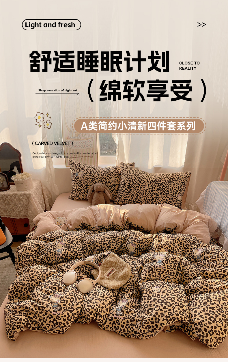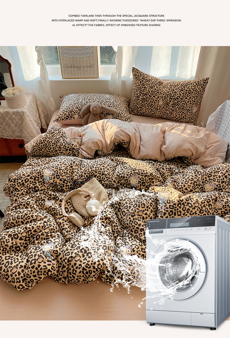 当前位置: 91家纺网 > 商品网购 > 床品套件 > 四件套 > 水洗棉四件套 > 沐芷 2026 【提供买家秀】古法水洗仿棉A类四件套床上用品三件套被套被罩床笠款---第一波 豹纹音乐