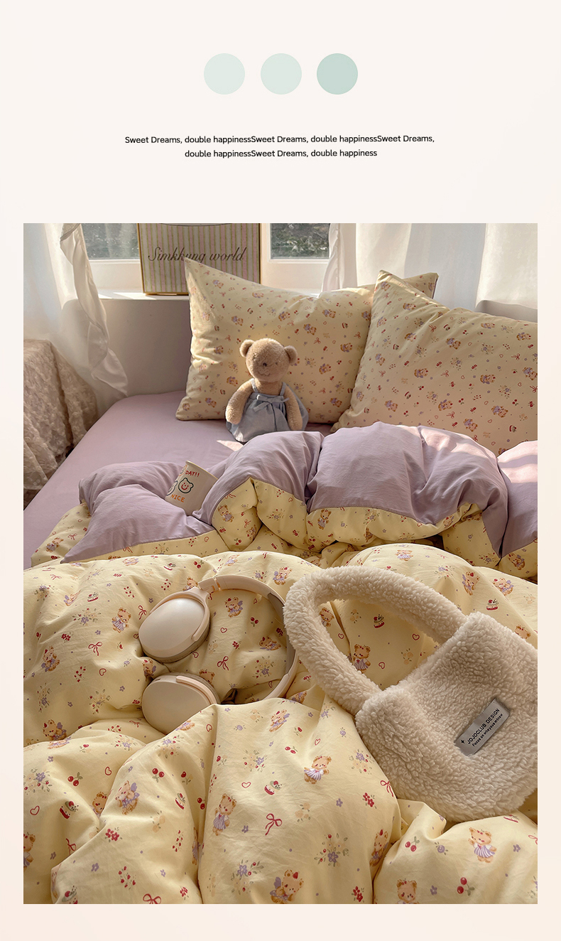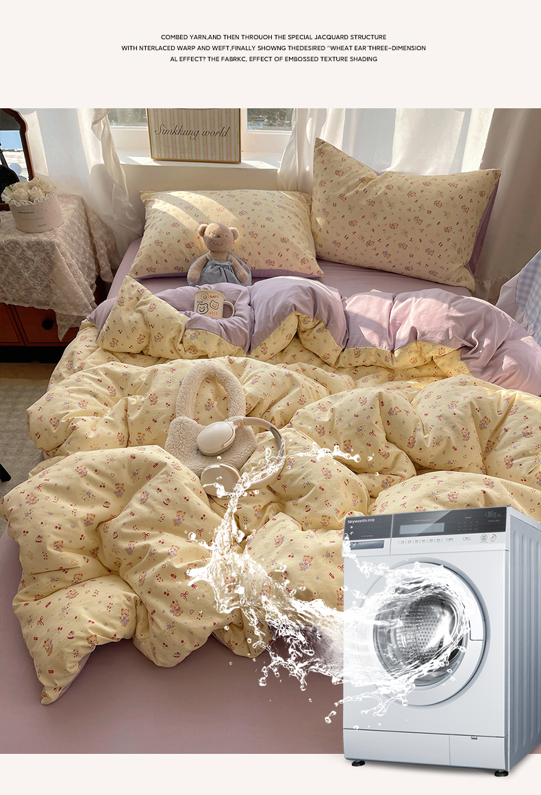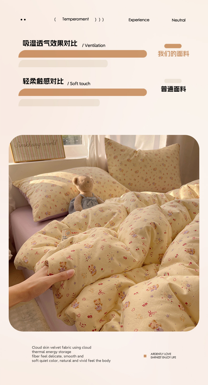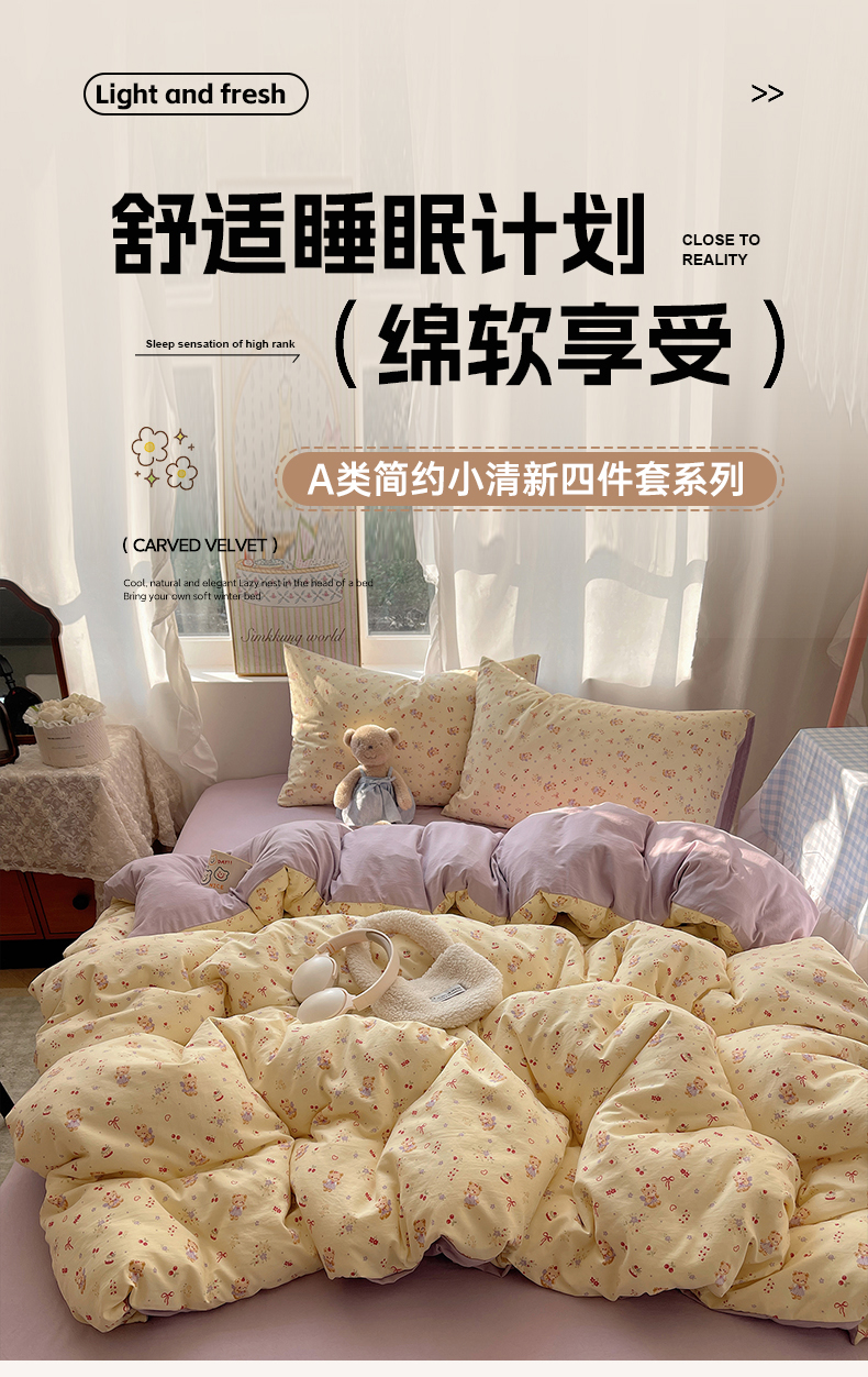 当前位置: 91家纺网 > 商品网购 > 床品套件 > 四件套 > 水洗棉四件套 > 沐芷 2026 【提供买家秀】古法水洗仿棉A类四件套床上用品三件套被套被罩床笠款---第一波 甜心紫熊