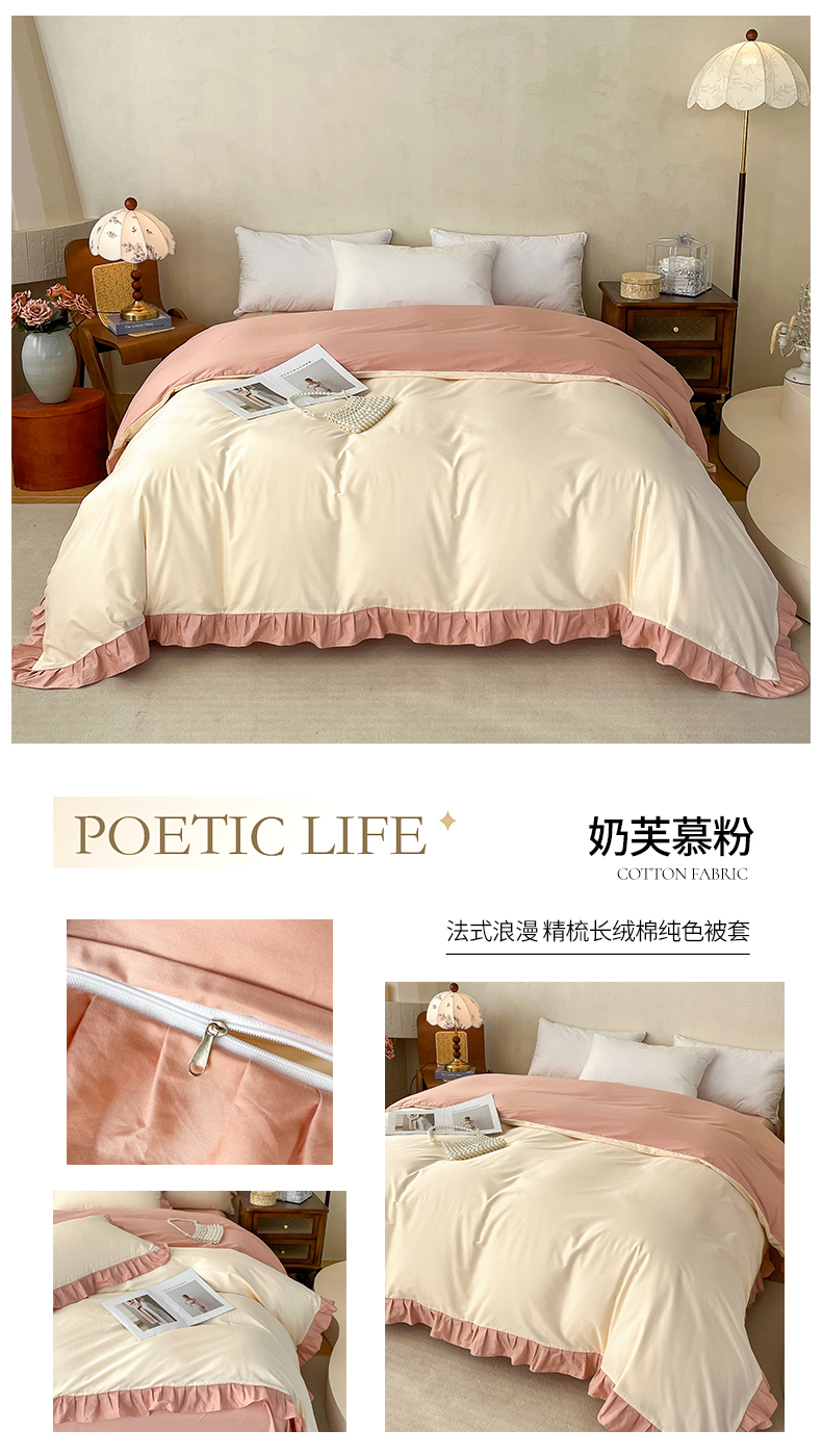 商品名称:(总)艾迪尚家纺 2026法式韩版荷叶边纯色长绒棉纯棉单被套