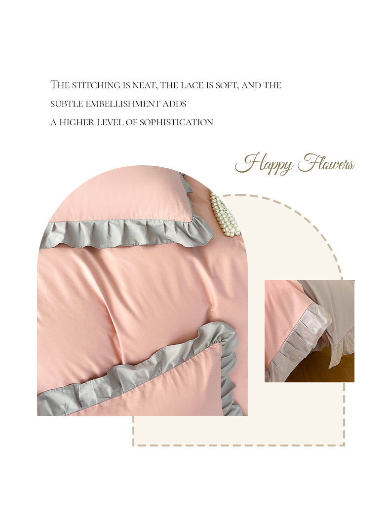 • 91家纺网 家纺一手货源 找家纺 艾迪尚家纺 2026法式韩版荷叶边纯色长绒棉纯棉单被套 云灰仙女粉
