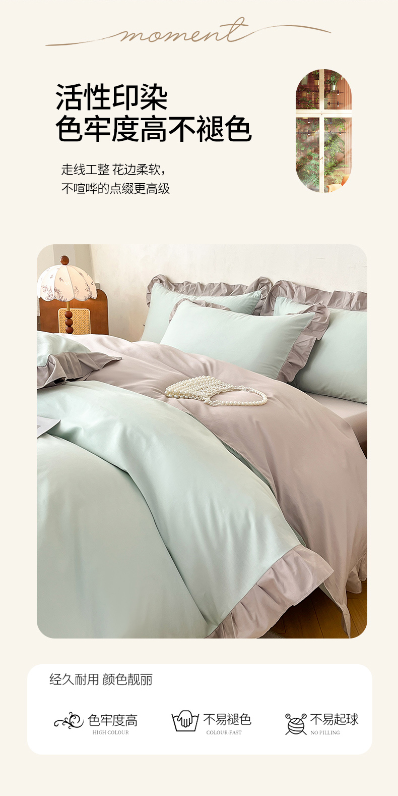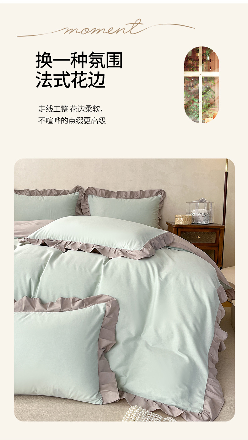(总)艾迪尚家纺 2026新款法式韩版荷叶边纯色长绒棉四件套,薄荷青灰,冰川蓝香草白,茉绿奶芙,奶芙慕粉,青提絮语,柔杏浅绿,瑞绿慕斯粉,雾蓝杏语,云白芽绿,云灰仙女粉