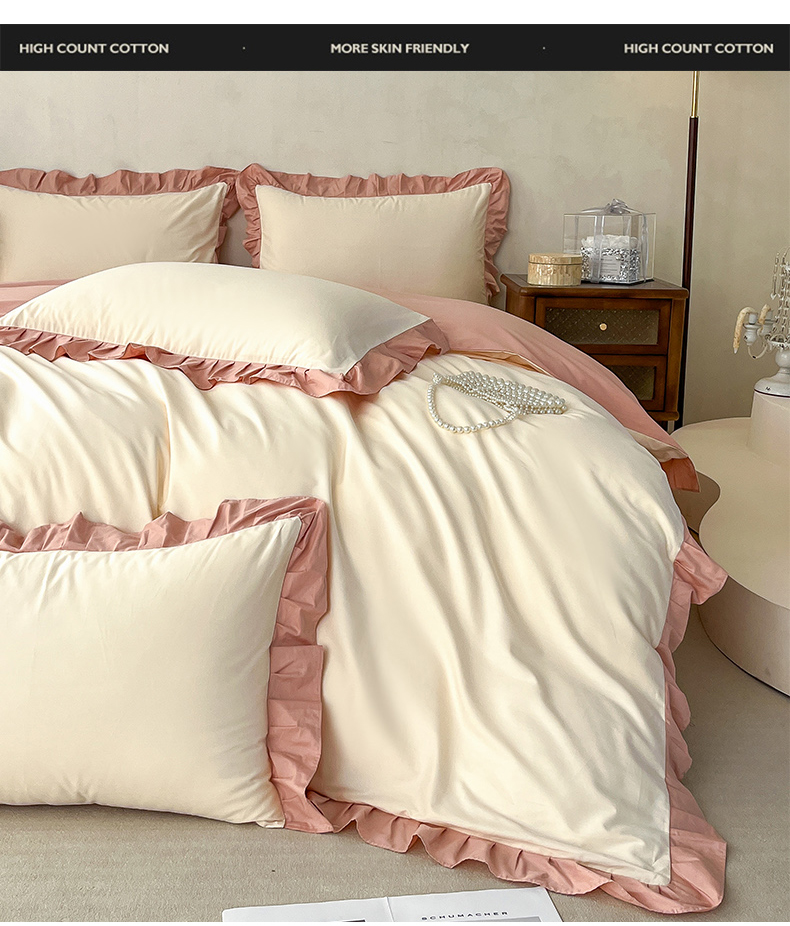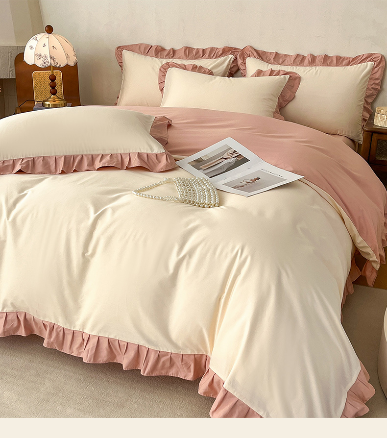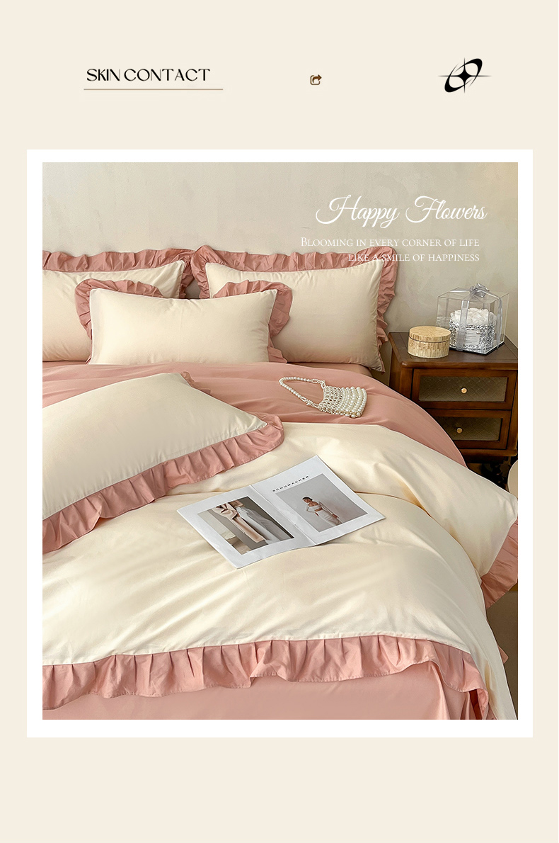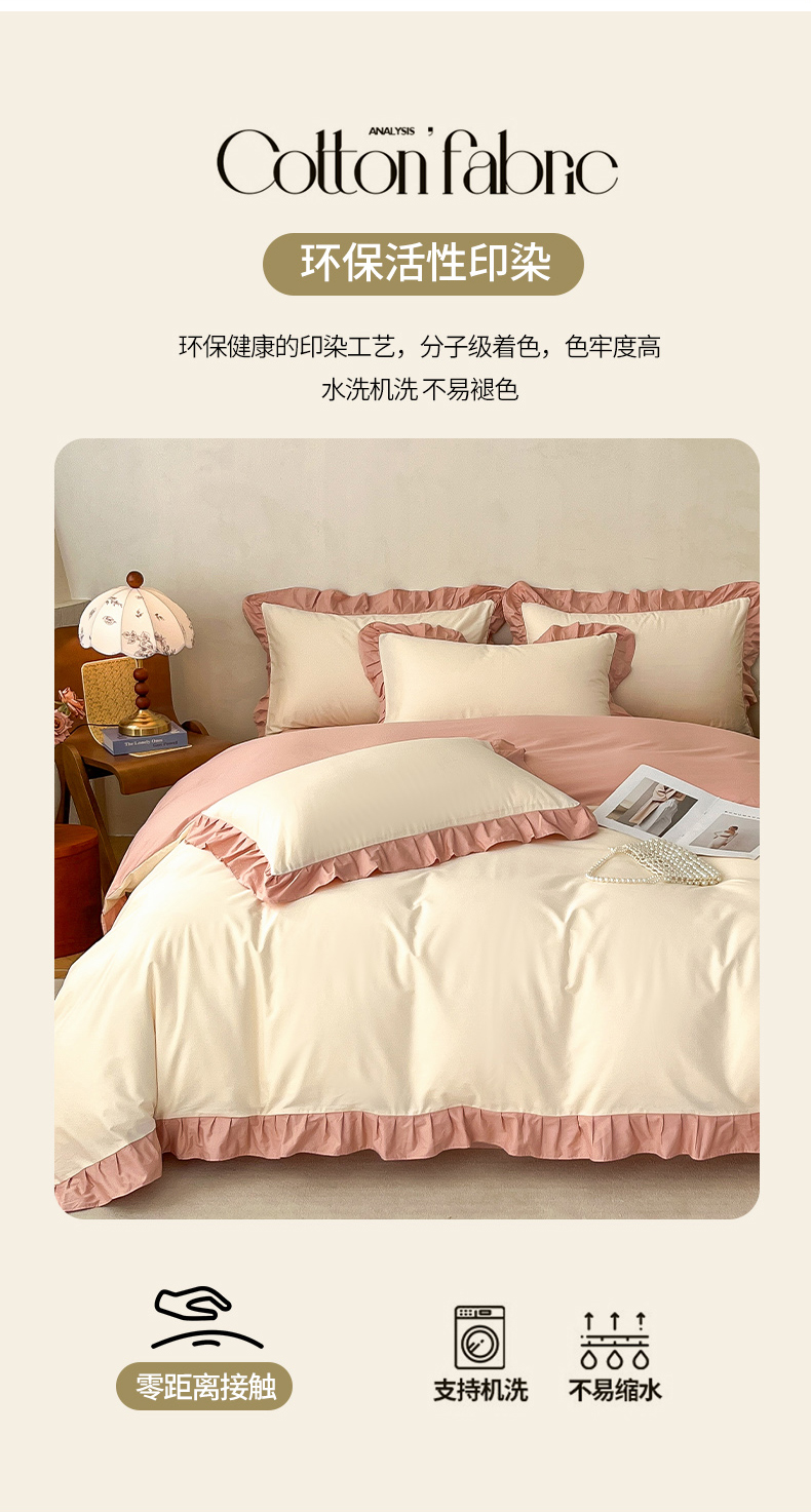 当前位置: 91家纺网 > 商品网购 > 床品套件 > 四件套 > 全棉普通四件套 > 艾迪尚家纺 2026新款法式韩版荷叶边纯色长绒棉四件套 奶芙慕粉